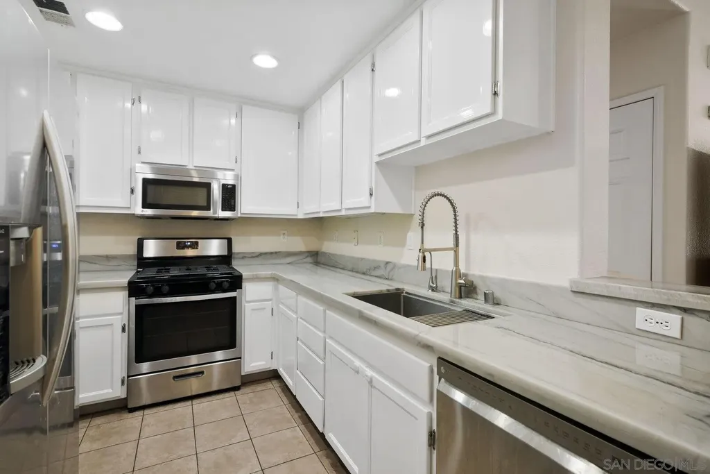 2-story townhome in Belleme @ Otay Ranch. Primary bed offers dual closets, en suite bath & dual sinks. Tiled flooring on entry level, laminate upstairs. Kitchen features new quartz counters, SS appliances & adjacent laundry. Attached garage w/ 2 additional parking spaces. Large private patio w/ eco-friendly pavers, recessed lighting, central AC & drop-down attic ladder for storage. Amenities include pool/spa, BBQ area & green space.