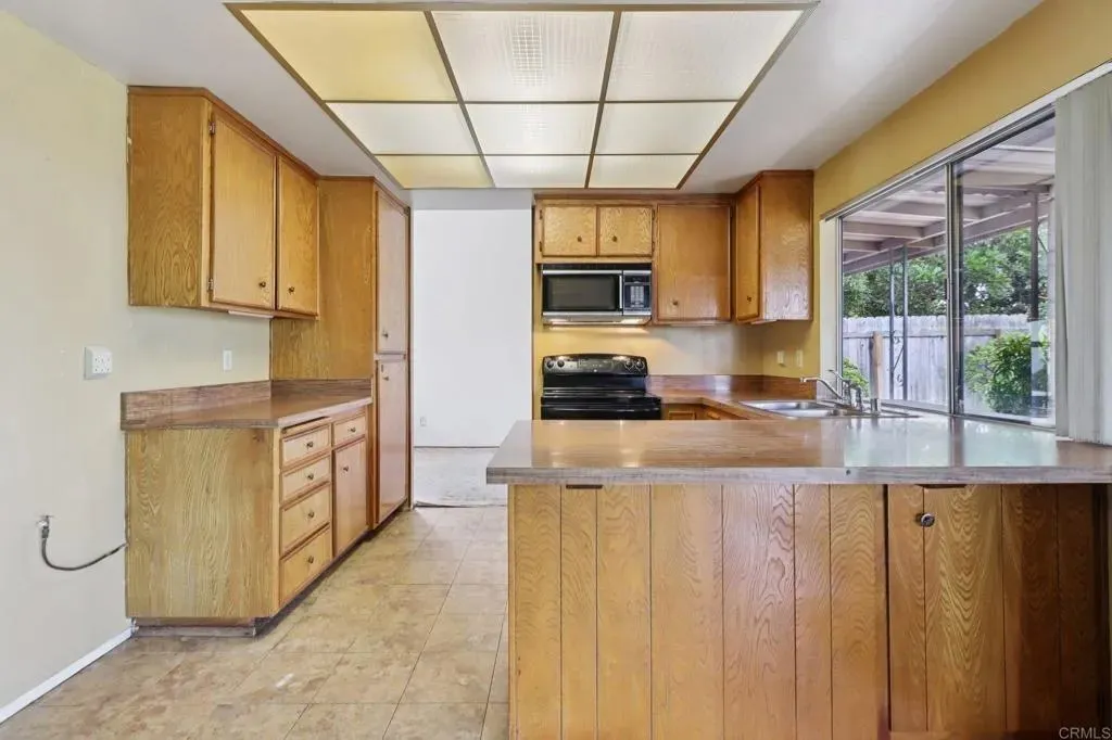 Bring your elbow grease to this ONE STORY, 4 bedroom, 2 bathroom, 2 car garage single-family home located on a cul-de-sac in a well-established Chula Vista neighborhood. No HOA or Mello Roos Taxes! Courtyard Entry. Sits on a large 7,100 sq ft lot with a spacious backyard. High Vaulted ceilings in the Living Room with fireplace & large windows, let the light shine in! Dining Area off the Living Room. Breakfast area open to the Kitchen could be a Family Room or redesigned for a larger Kitchen. The Primary Suite has 2 Closets including a walk-in. Private backyard with covered patio is ready for you to create your dream outdoor space. Yes, it backs to the freeway, but the elevated lot has peekaboo views of the Ocean; Western Horizon & sunsets & no neighbors! Near parks, schools, shopping, and freeways, this fixer home is perfect for someone looking to invest in a property with incredible potential in a desirable community.