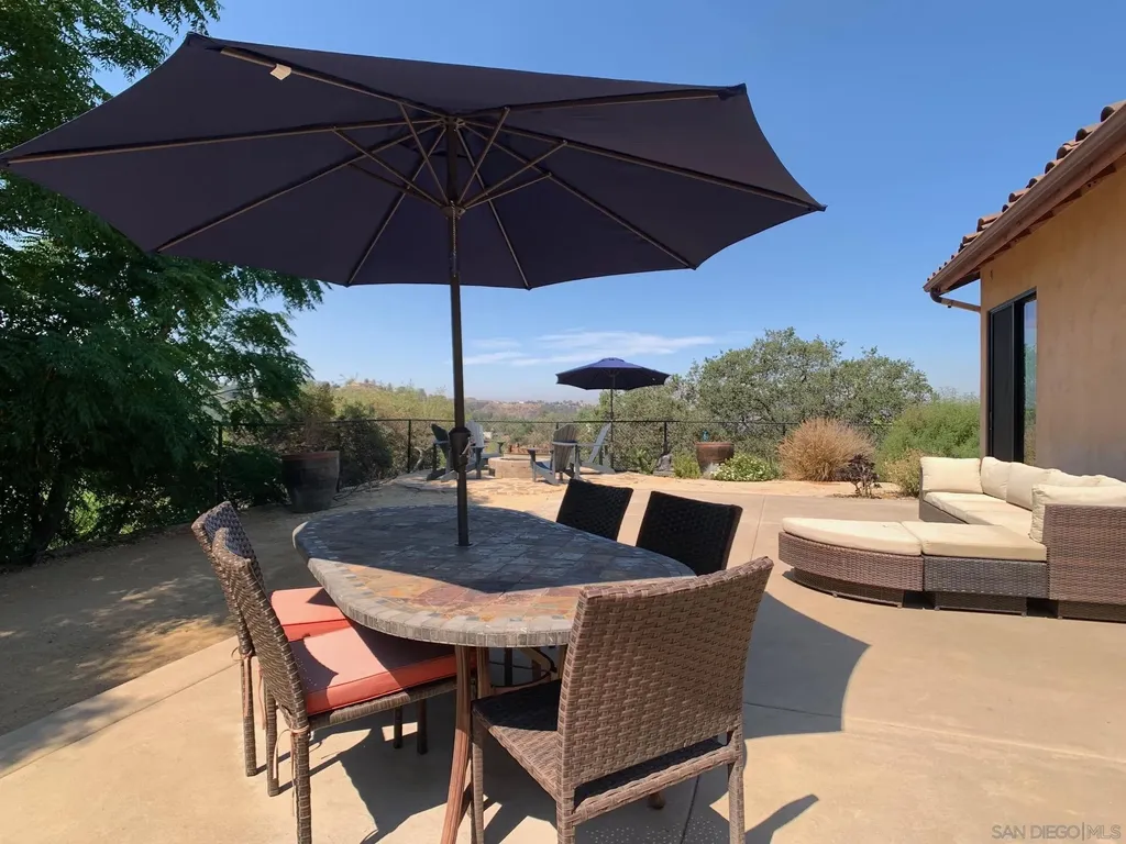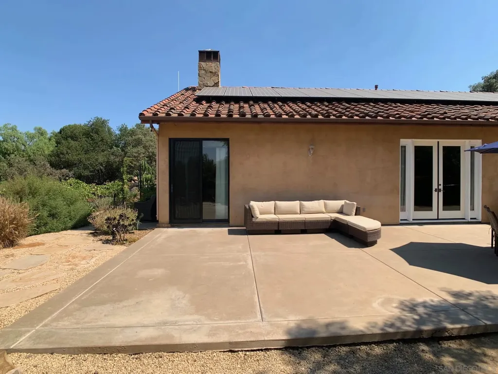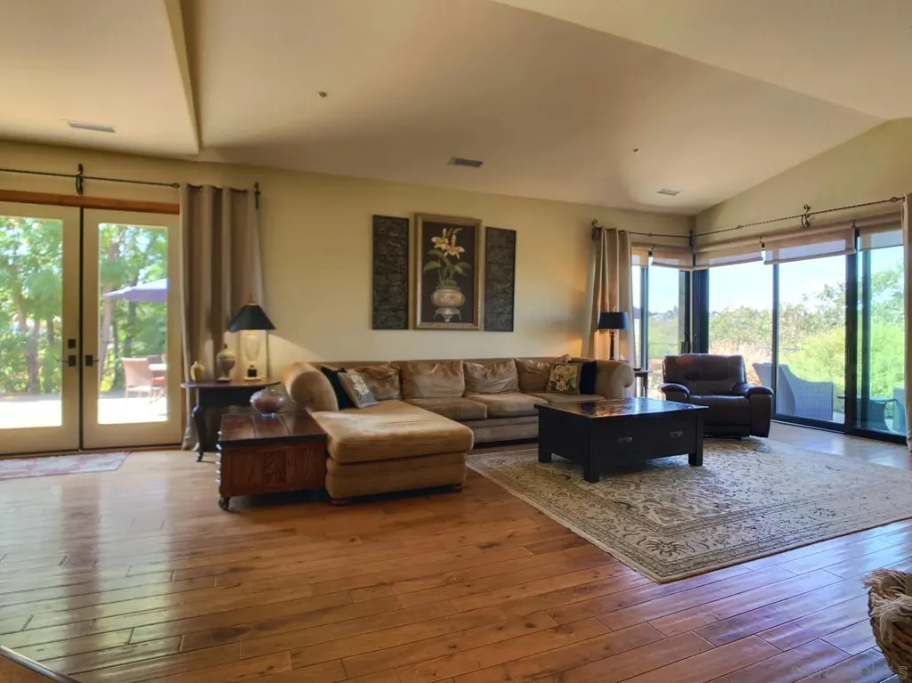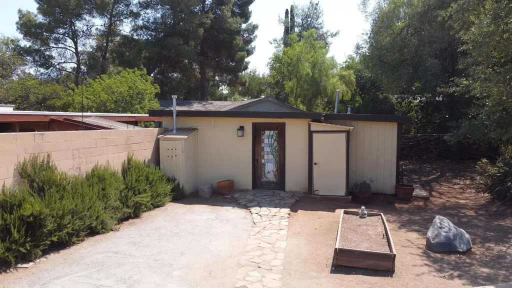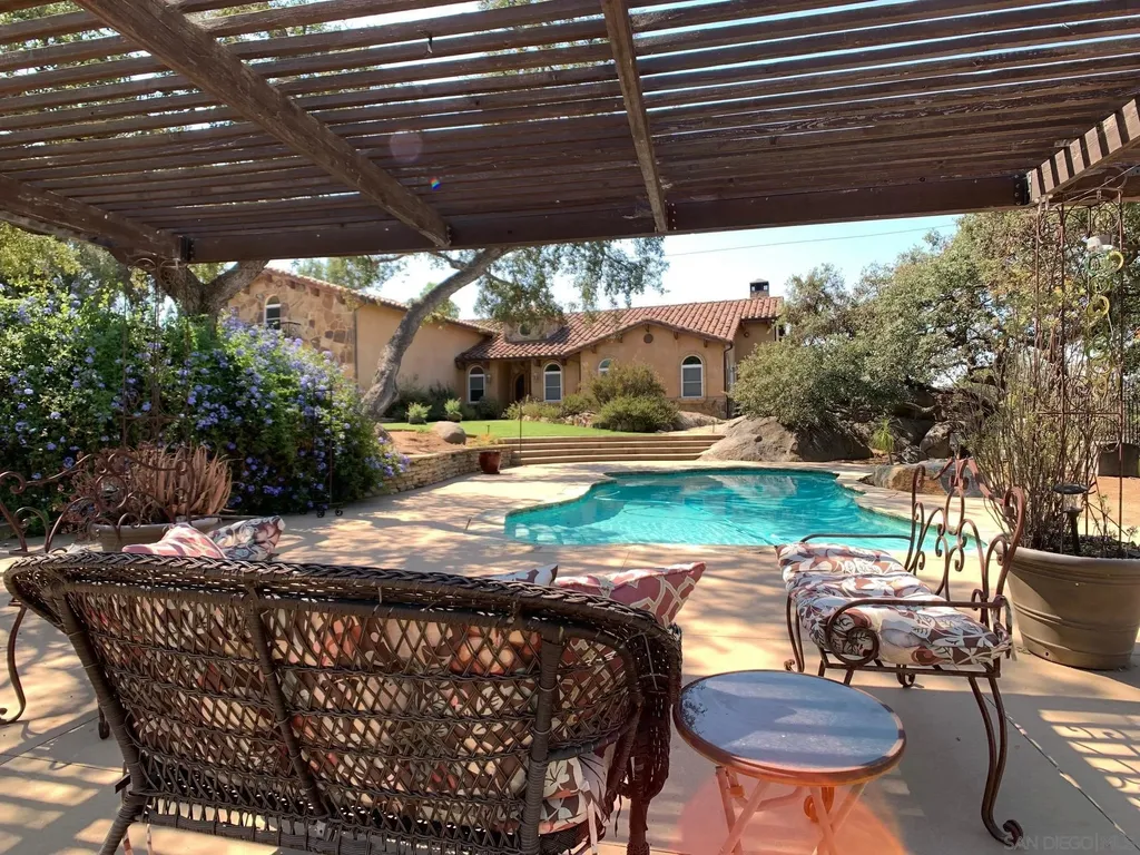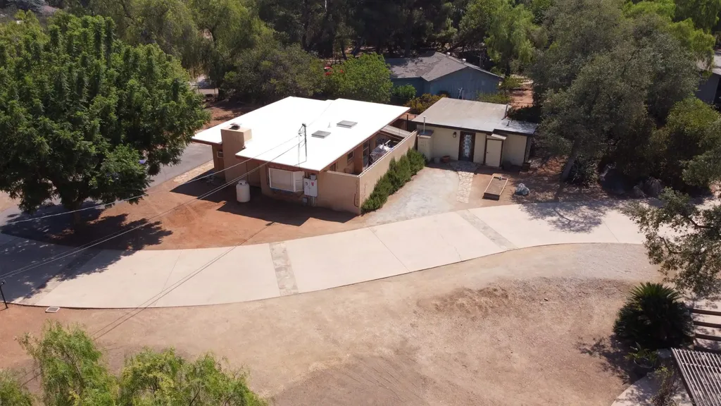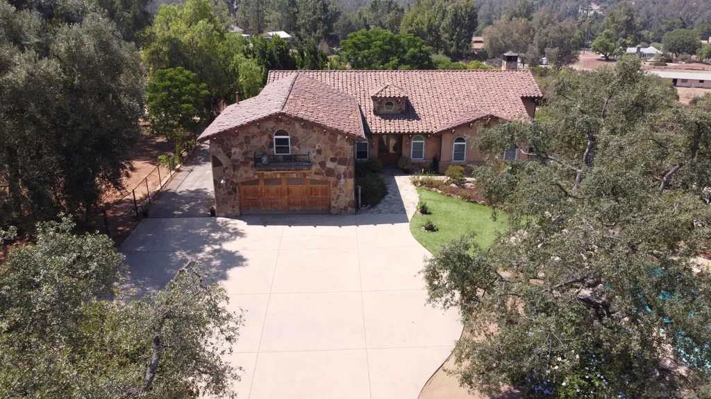 Beyond a private, gated entry lies a world meant for gathering, living, and dreaming. On a flat, useable acre framed by mature trees and golden westerly sunsets, three distinct structures create a rare multi-generational haven. The Tuscan-inspired main home, rich with high ceilings, 8-foot custom doors, earth-toned finishes, and sunlit spaces, invites you to linger - whether by the family-style kitchen with its granite island and black cabinetry, or fireside under the stars beside the newly built-in firepit. The permitted loft above the garage transforms into a chic studio rental, while the cottage-inspired front home offers two bedrooms, a warm fireplace, and a private walled patio. Between them, a pool house with bath and laundry stands ready for summer days beside the sparkling inground pool. With 7 bedrooms, 5.5 baths, and over 5,400 sq. ft. of living space, this compound offers 5 laundry facilities, 2 septic systems, paid-off 38-panel solar, paved RV parking with hookups, and an oversized driveway for endless guests. Wander the small orchard - avocado, grapefruit, lemon, lime, apricot - and imagine more. Here, life is secure, serene, and full of possibilities, where privacy meets connection in perfect harmony.