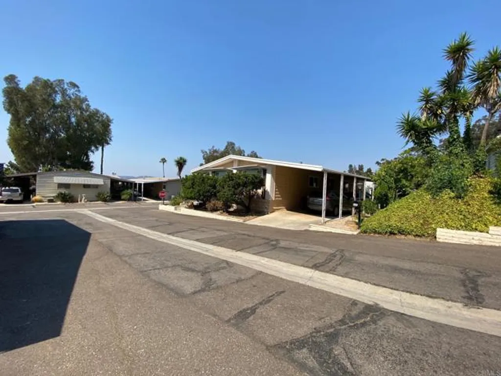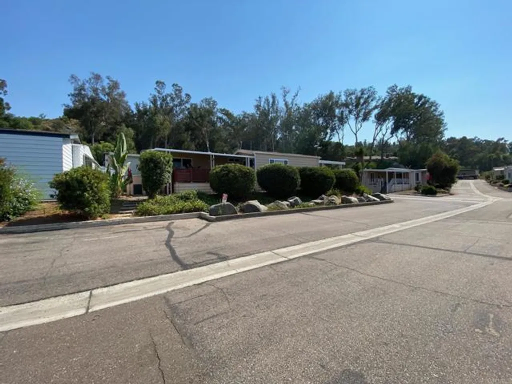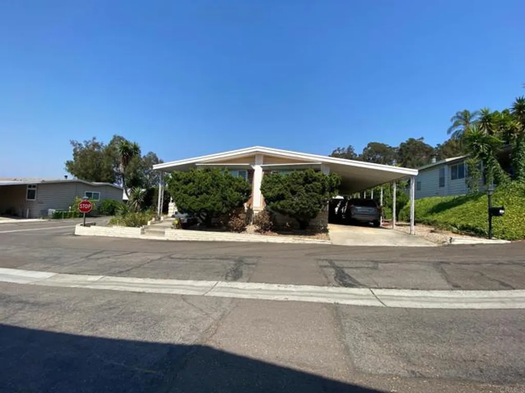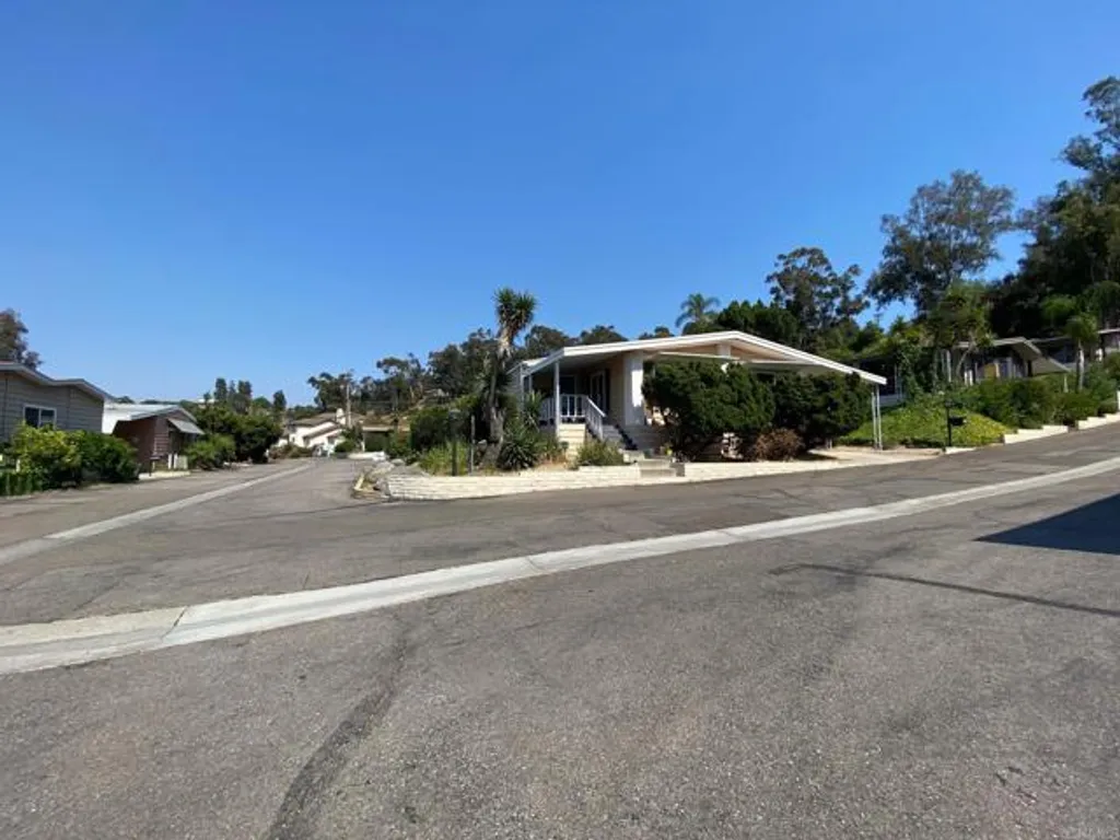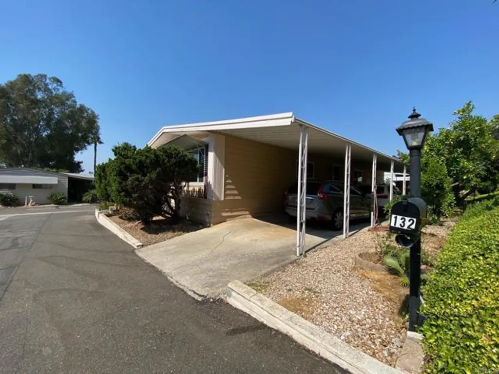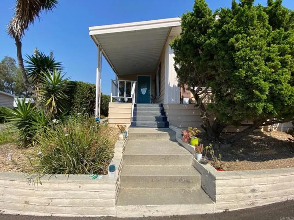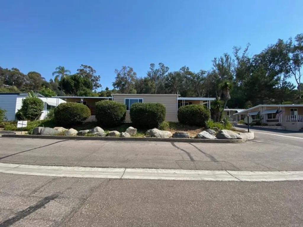 55/18 Community. Lot rent will be added soon. Luxurious Home - you don't find many homes like this one in mobile home communities. No expense was spared when remodeling this home. Inviting front covered porch leads you into this one of a kind triple wide home. The gourmet kitchen is totally magnificent; top of the line cabinetry, quartz countertops, stunning appliances and can lighting. There is also a large breakfast bar and 2 pantries. Dining area has a wall to ceiling China cabinet with ample storage space. The dining and formal living room feature stunning custom made cornices/drapes over the dual pane windows for a lavish look. Enjoy the view from most every window in this home. The oversized bonus/family room is the perfect room to watch tv and entertain friends and family. There are built-in hutches between the living room and the bonus room. The beautiful blue front door brings a feel of happiness! The bonus room features a sliding glass door which will lead you to the view deck. In the yard, you will find a black & white tall bird of paradise plant, mature avocado, tangerine, lemon and orange trees. Main suite offers mirrored closet doors and an ensuite bathroom; large garden tub, shower stall with glass doors, dual sinks and a very large linen closet. Guest bedroom and bathroom. Spacious indoor laundry room has a utility sink and includes the washer/dryer. Other great features are the dual pane windows & sliding glass doors, luxurious laminate flooring, drywalled walls throughout, vaulted ceilings and ceiling fans. Best of all, enjoy delicious purified water from
