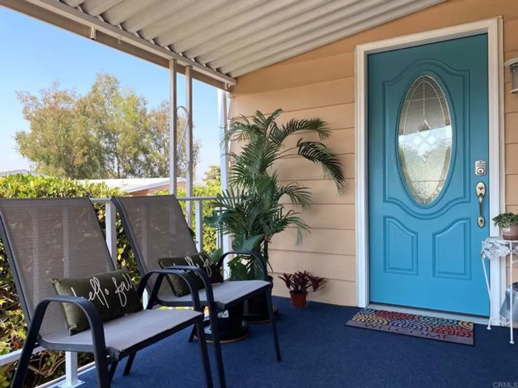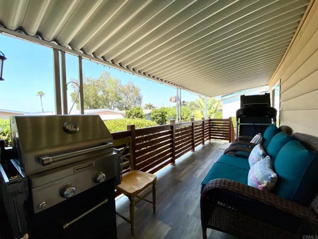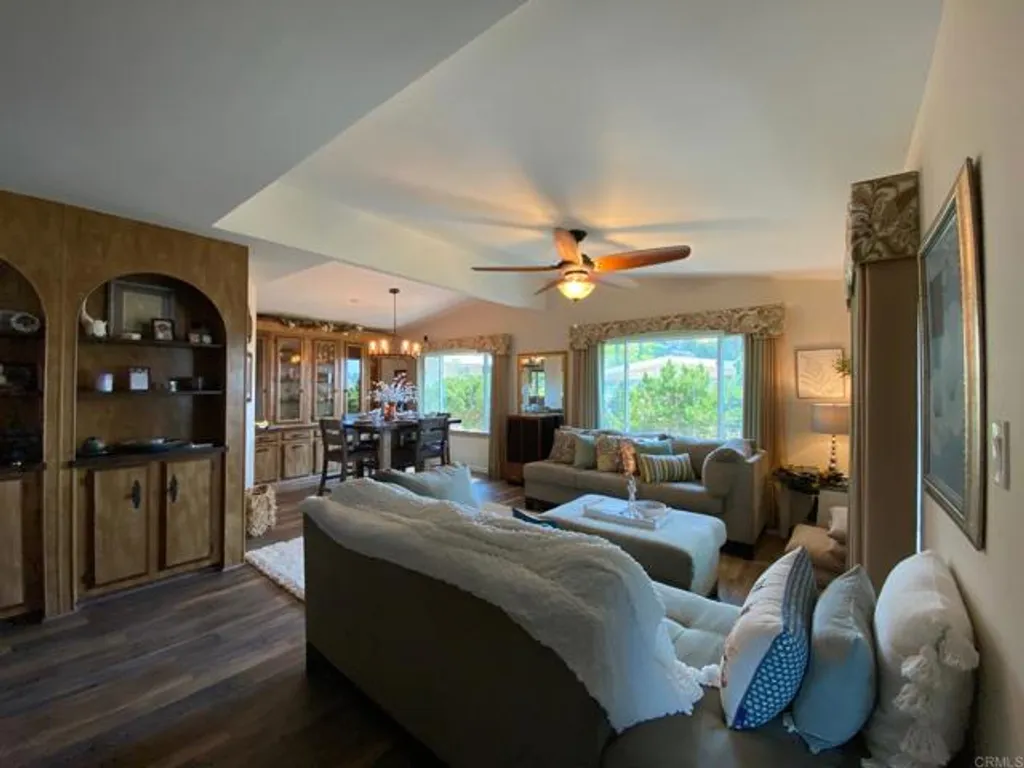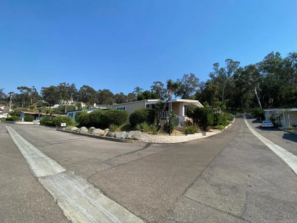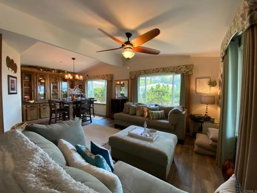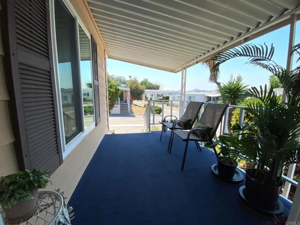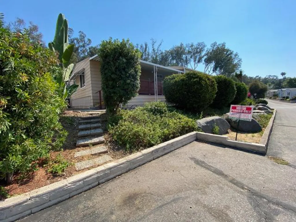 55/18 Community. Lot rent will be added soon. Luxurious Home - you don't find many homes like this one in mobile home communities. No expense was spared when remodeling this home. Inviting front covered porch leads you into this one of a kind triple wide home. The gourmet kitchen is totally magnificent; top of the line cabinetry, quartz countertops, stunning appliances and can lighting. There is also a large breakfast bar and 2 pantries. Dining area has a wall to ceiling China cabinet with ample storage space. The dining and formal living room feature stunning custom made cornices/drapes over the dual pane windows for a lavish look. Enjoy the view from most every window in this home. The oversized bonus/family room is the perfect room to watch tv and entertain friends and family. There are built-in hutches between the living room and the bonus room. The beautiful blue front door brings a feel of happiness! The bonus room features a sliding glass door which will lead you to the view deck. In the yard, you will find a black & white tall bird of paradise plant, mature avocado, tangerine, lemon and orange trees. Main suite offers mirrored closet doors and an ensuite bathroom; large garden tub, shower stall with glass doors, dual sinks and a very large linen closet. Guest bedroom and bathroom. Spacious indoor laundry room has a utility sink and includes the washer/dryer. Other great features are the dual pane windows & sliding glass doors, luxurious laminate flooring, drywalled walls throughout, vaulted ceilings and ceiling fans. Best of all, enjoy delicious purified water from