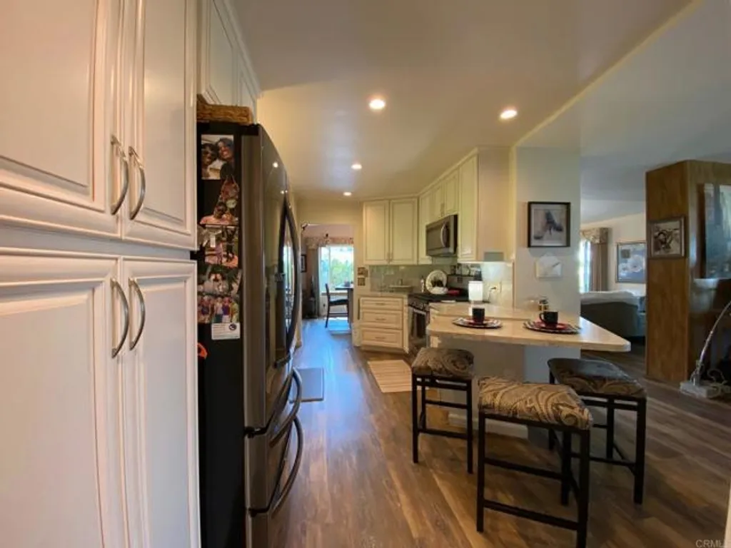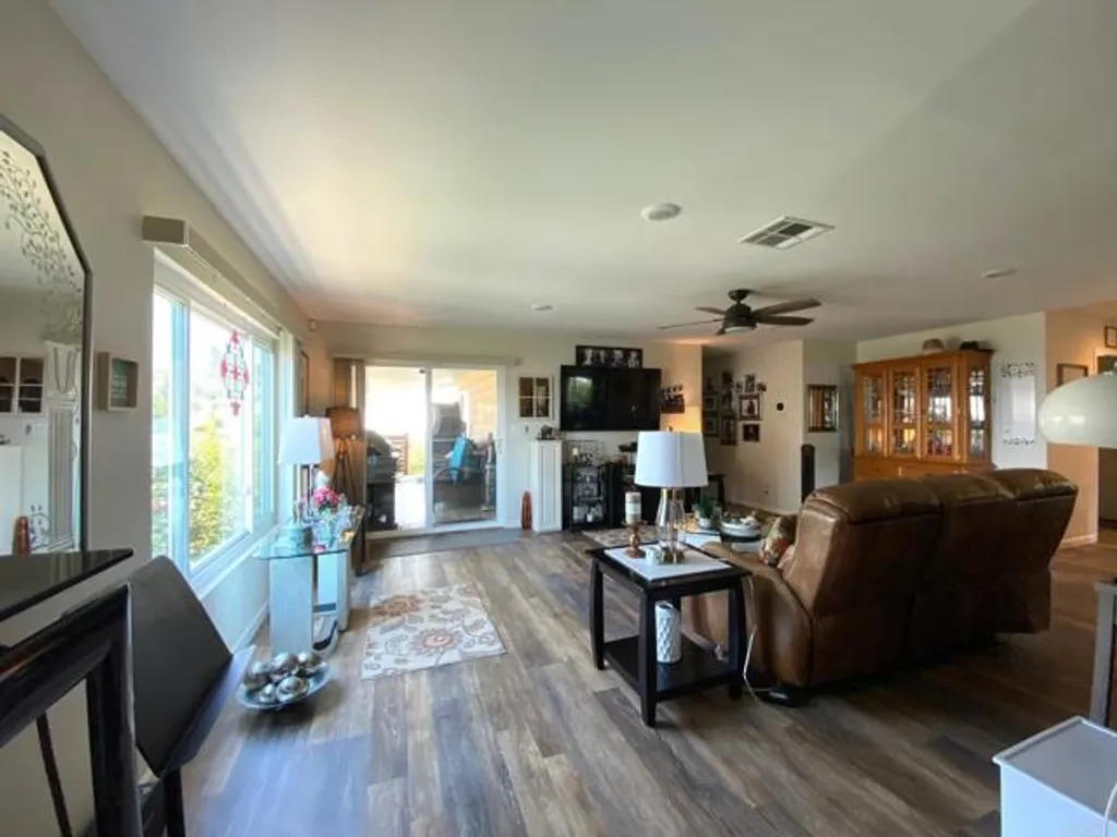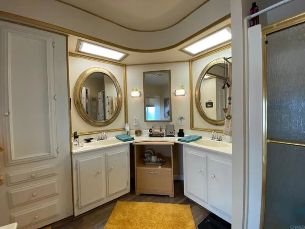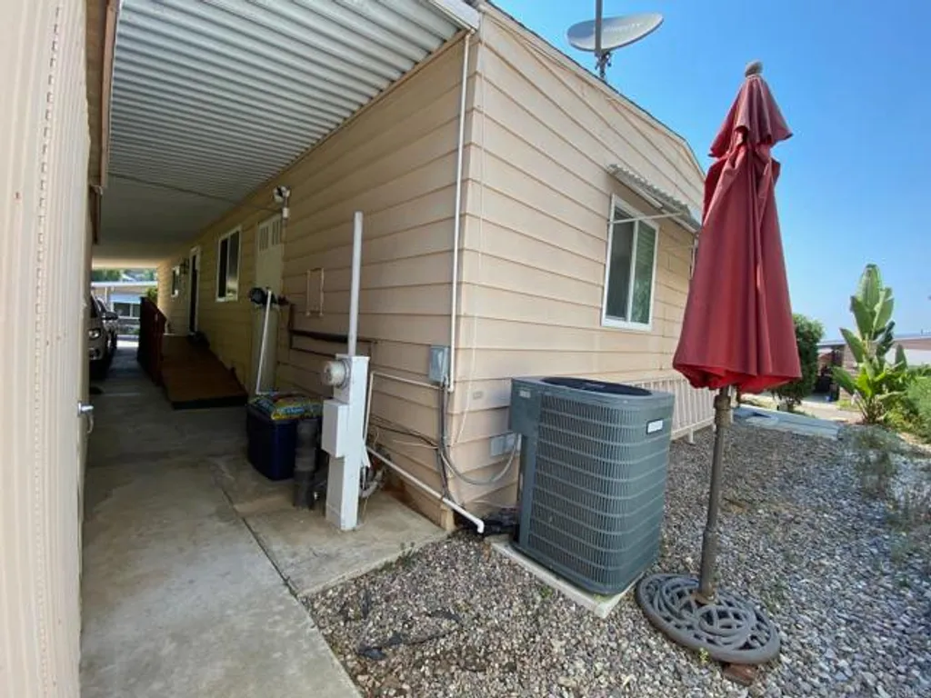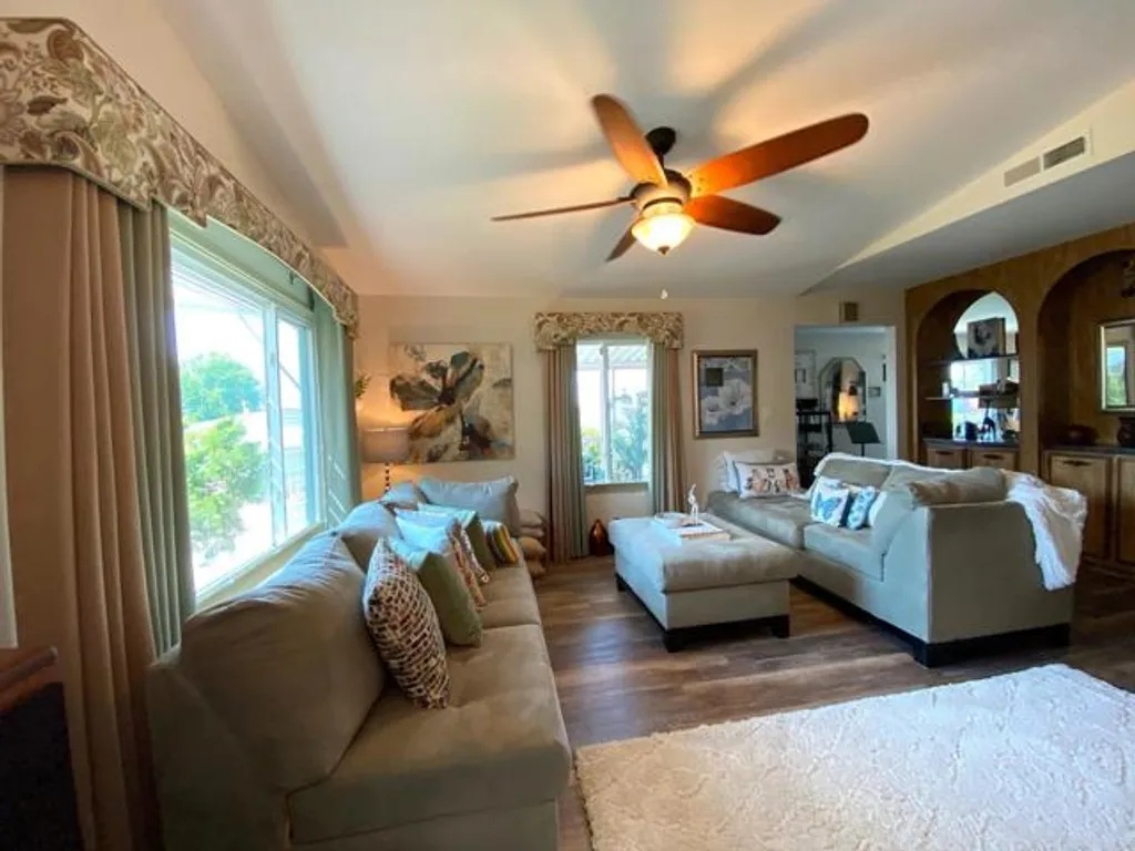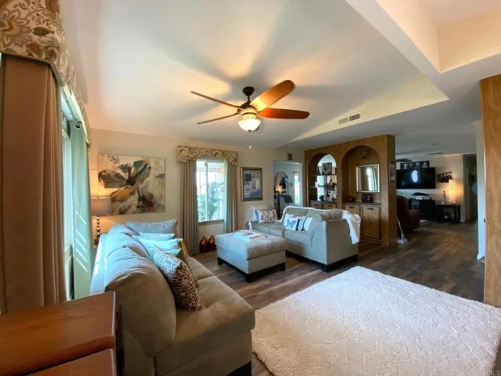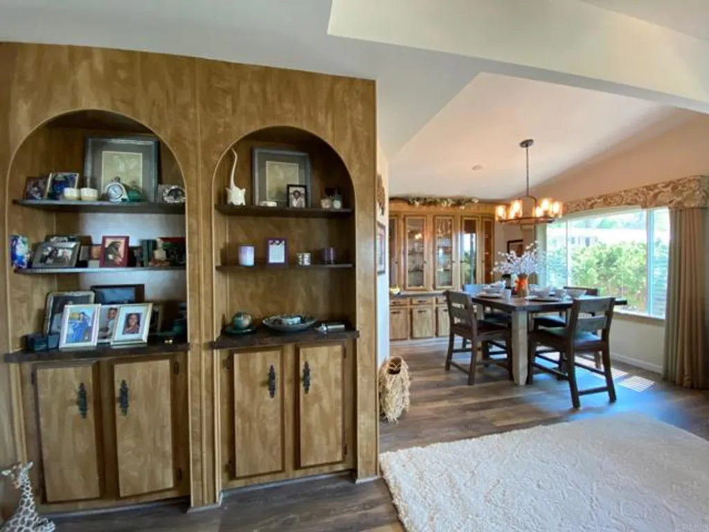 55/18 Community. Lot rent will be added soon. Luxurious Home - you don't find many homes like this one in mobile home communities. No expense was spared when remodeling this home. Inviting front covered porch leads you into this one of a kind triple wide home. The gourmet kitchen is totally magnificent; top of the line cabinetry, quartz countertops, stunning appliances and can lighting. There is also a large breakfast bar and 2 pantries. Dining area has a wall to ceiling China cabinet with ample storage space. The dining and formal living room feature stunning custom made cornices/drapes over the dual pane windows for a lavish look. Enjoy the view from most every window in this home. The oversized bonus/family room is the perfect room to watch tv and entertain friends and family. There are built-in hutches between the living room and the bonus room. The beautiful blue front door brings a feel of happiness! The bonus room features a sliding glass door which will lead you to the view deck. In the yard, you will find a black & white tall bird of paradise plant, mature avocado, tangerine, lemon and orange trees. Main suite offers mirrored closet doors and an ensuite bathroom; large garden tub, shower stall with glass doors, dual sinks and a very large linen closet. Guest bedroom and bathroom. Spacious indoor laundry room has a utility sink and includes the washer/dryer. Other great features are the dual pane windows & sliding glass doors, luxurious laminate flooring, drywalled walls throughout, vaulted ceilings and ceiling fans. Best of all, enjoy delicious purified water from