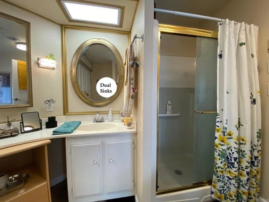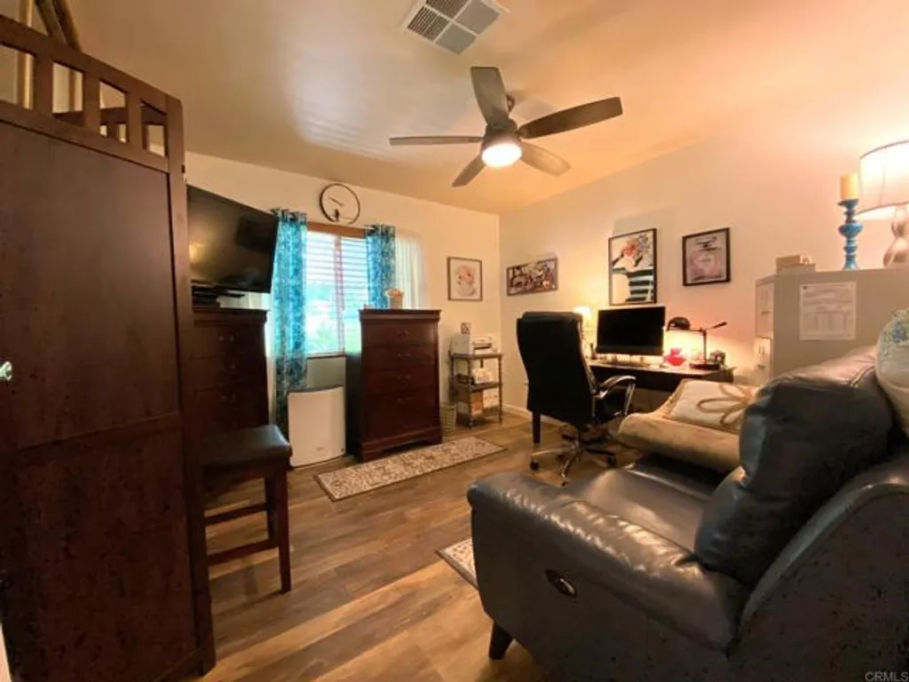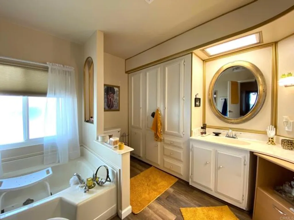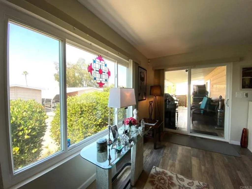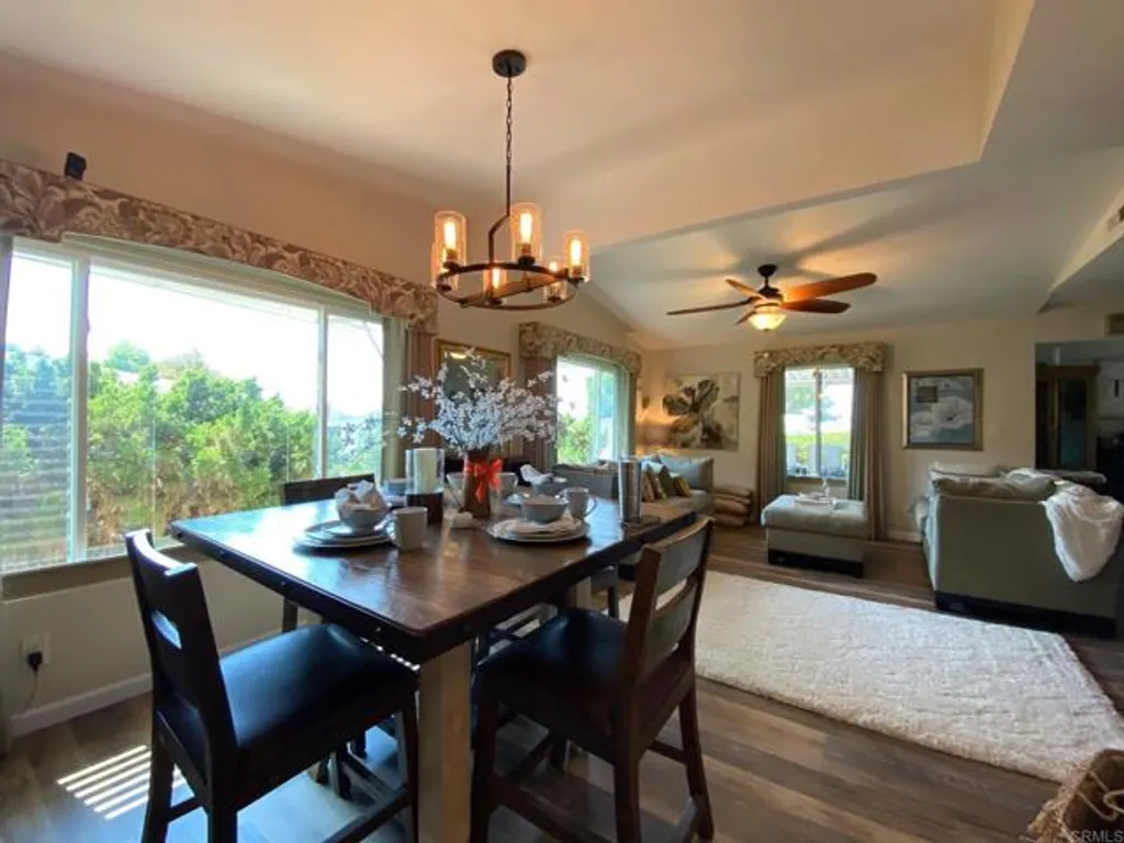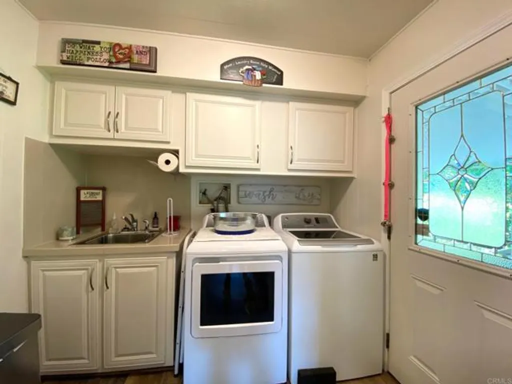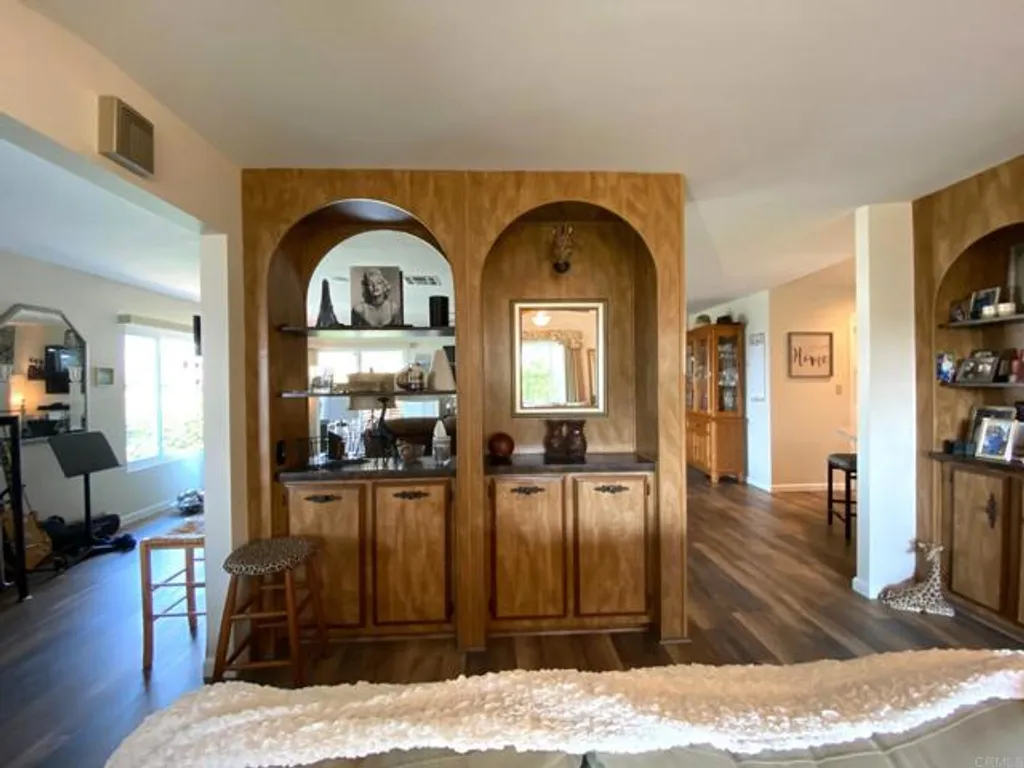 55/18 Community. Lot rent will be added soon. Luxurious Home - you don't find many homes like this one in mobile home communities. No expense was spared when remodeling this home. Inviting front covered porch leads you into this one of a kind triple wide home. The gourmet kitchen is totally magnificent; top of the line cabinetry, quartz countertops, stunning appliances and can lighting. There is also a large breakfast bar and 2 pantries. Dining area has a wall to ceiling China cabinet with ample storage space. The dining and formal living room feature stunning custom made cornices/drapes over the dual pane windows for a lavish look. Enjoy the view from most every window in this home. The oversized bonus/family room is the perfect room to watch tv and entertain friends and family. There are built-in hutches between the living room and the bonus room. The beautiful blue front door brings a feel of happiness! The bonus room features a sliding glass door which will lead you to the view deck. In the yard, you will find a black & white tall bird of paradise plant, mature avocado, tangerine, lemon and orange trees. Main suite offers mirrored closet doors and an ensuite bathroom; large garden tub, shower stall with glass doors, dual sinks and a very large linen closet. Guest bedroom and bathroom. Spacious indoor laundry room has a utility sink and includes the washer/dryer. Other great features are the dual pane windows & sliding glass doors, luxurious laminate flooring, drywalled walls throughout, vaulted ceilings and ceiling fans. Best of all, enjoy delicious purified water from