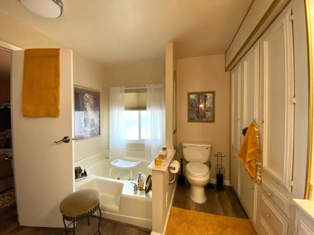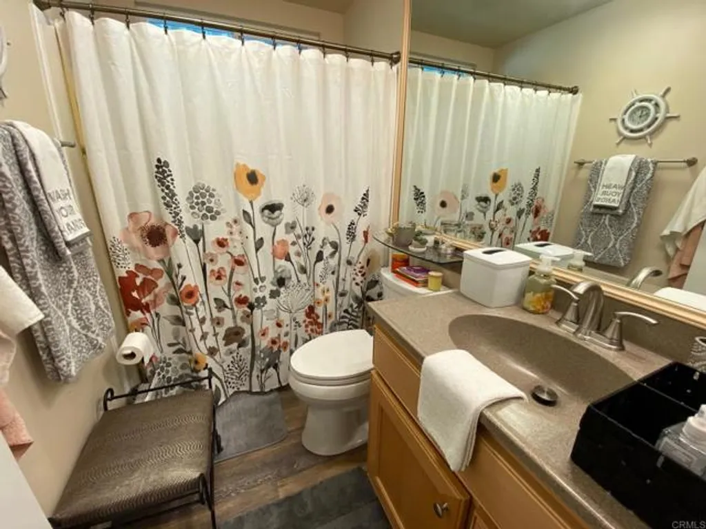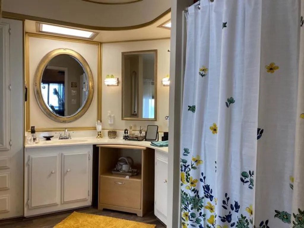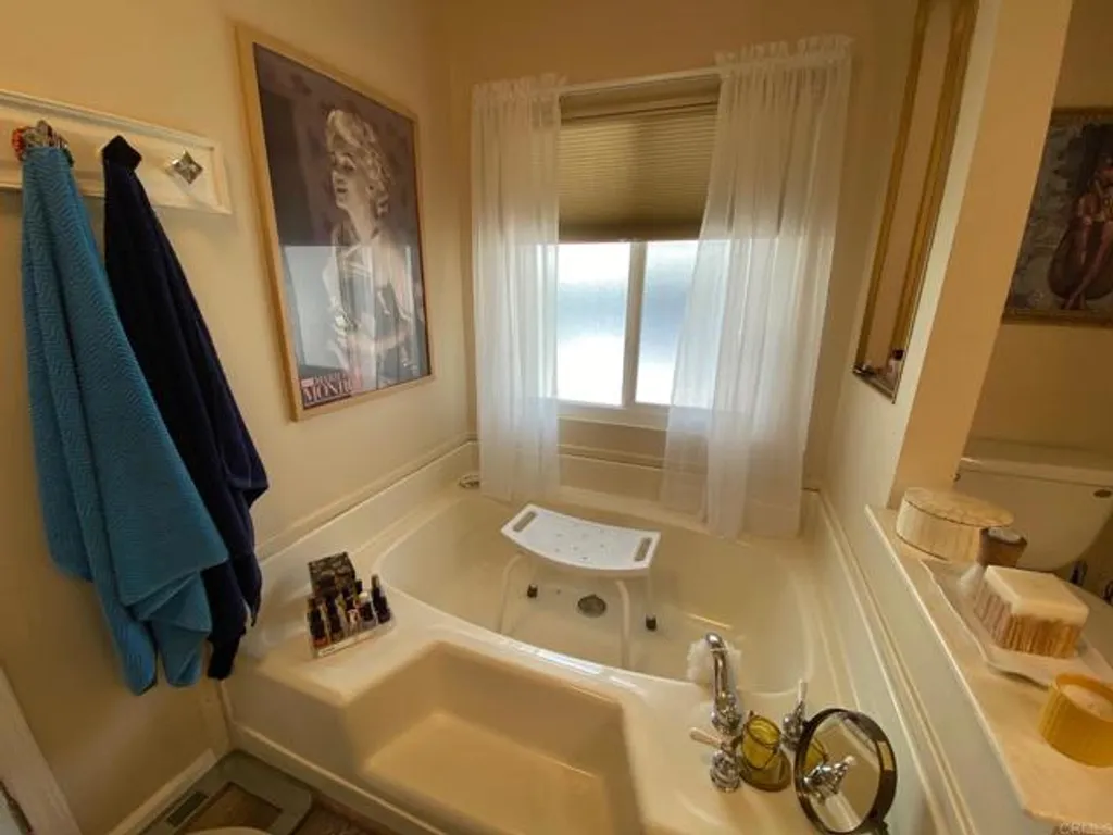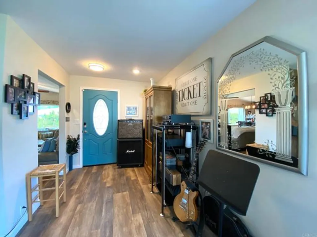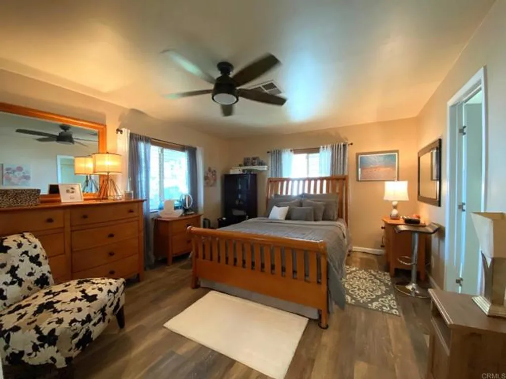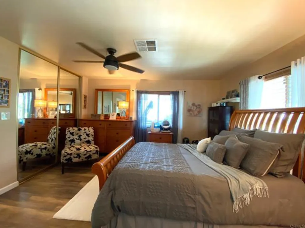55/18 Community. Lot rent will be added soon. Luxurious Home - you don't find many homes like this one in mobile home communities. No expense was spared when remodeling this home. Inviting front covered porch leads you into this one of a kind triple wide home. The gourmet kitchen is totally magnificent; top of the line cabinetry, quartz countertops, stunning appliances and can lighting. There is also a large breakfast bar and 2 pantries. Dining area has a wall to ceiling China cabinet with ample storage space. The dining and formal living room feature stunning custom made cornices/drapes over the dual pane windows for a lavish look. Enjoy the view from most every window in this home. The oversized bonus/family room is the perfect room to watch tv and entertain friends and family. There are built-in hutches between the living room and the bonus room. The beautiful blue front door brings a feel of happiness! The bonus room features a sliding glass door which will lead you to the view deck. In the yard, you will find a black & white tall bird of paradise plant, mature avocado, tangerine, lemon and orange trees. Main suite offers mirrored closet doors and an ensuite bathroom; large garden tub, shower stall with glass doors, dual sinks and a very large linen closet. Guest bedroom and bathroom. Spacious indoor laundry room has a utility sink and includes the washer/dryer. Other great features are the dual pane windows & sliding glass doors, luxurious laminate flooring, drywalled walls throughout, vaulted ceilings and ceiling fans. Best of all, enjoy delicious purified water from