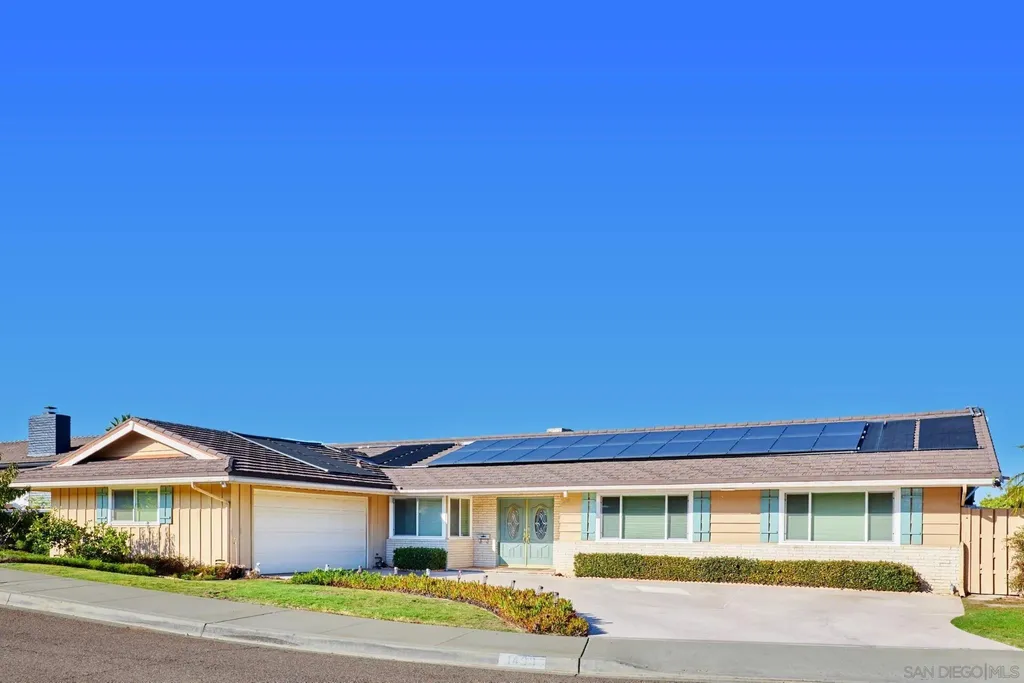 Perched on top of a bluff and offering $2M views of evening lights, mountains, hills & treetops, this beautiful, single-level home on one of Fletcher Hills' most coveted cul-de-sac enclaves is move-in ready! At nearly 2,600 s.f., all interior rooms, including kitchen, family room, living room and four bedrooms are generous in size. Recent remodel includes glamorous new kitchen & gorgeous floors. Outdoors, enjoy private get togethers or festive parties, poolside, on the 3,000 s.f. patio, 300 s.f. covered! >>> PAID SOLAR for whole house and inground swimming pool. 2016: Entirely new open floor plan, totally new kitchen, new hardwood floors, vaulted entry way & dual pane windows. Solar installed 2017. Concrete around pool replaced in 2020. <<<