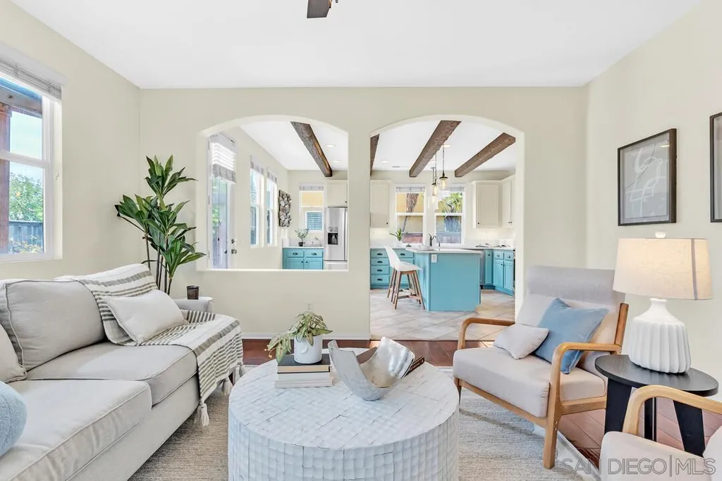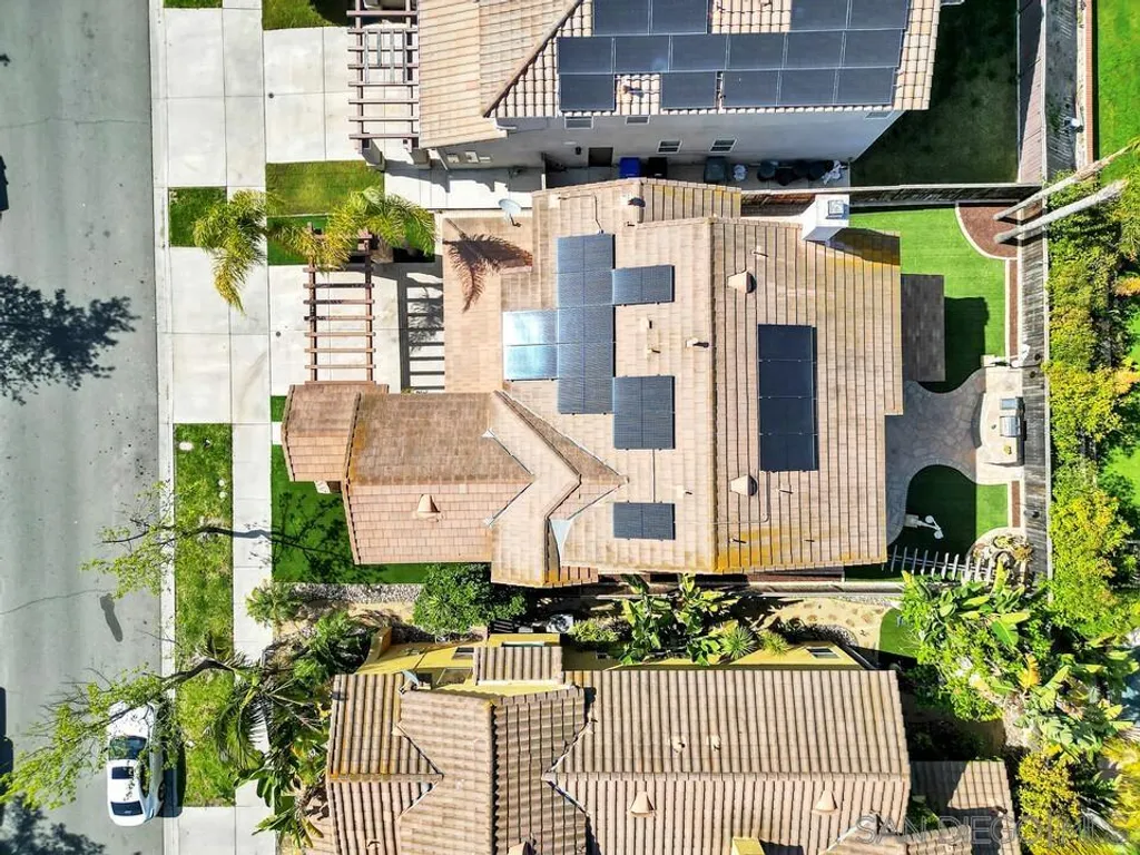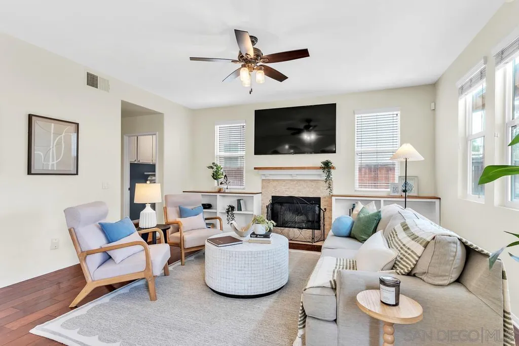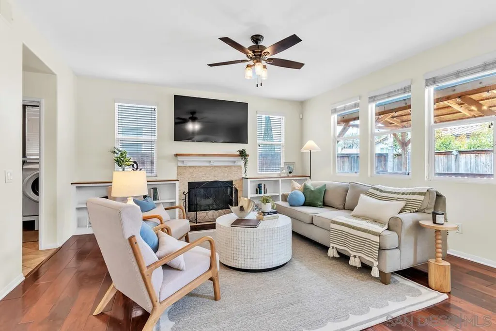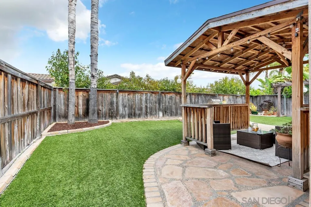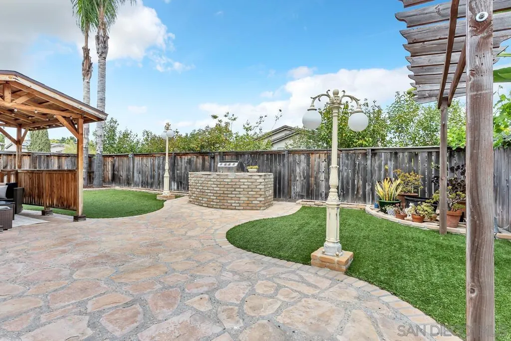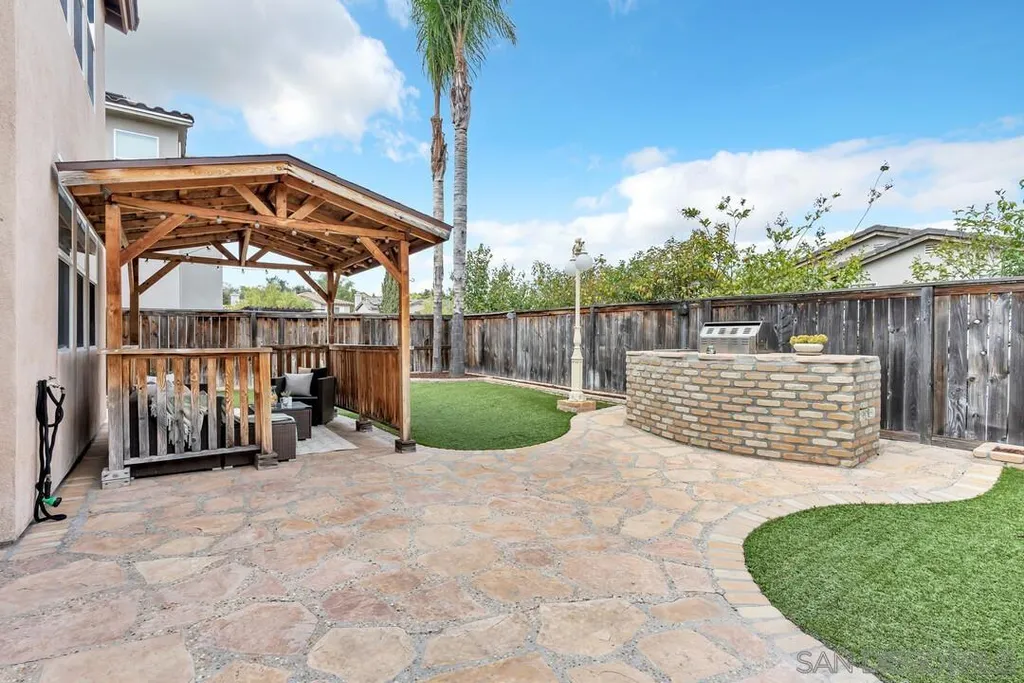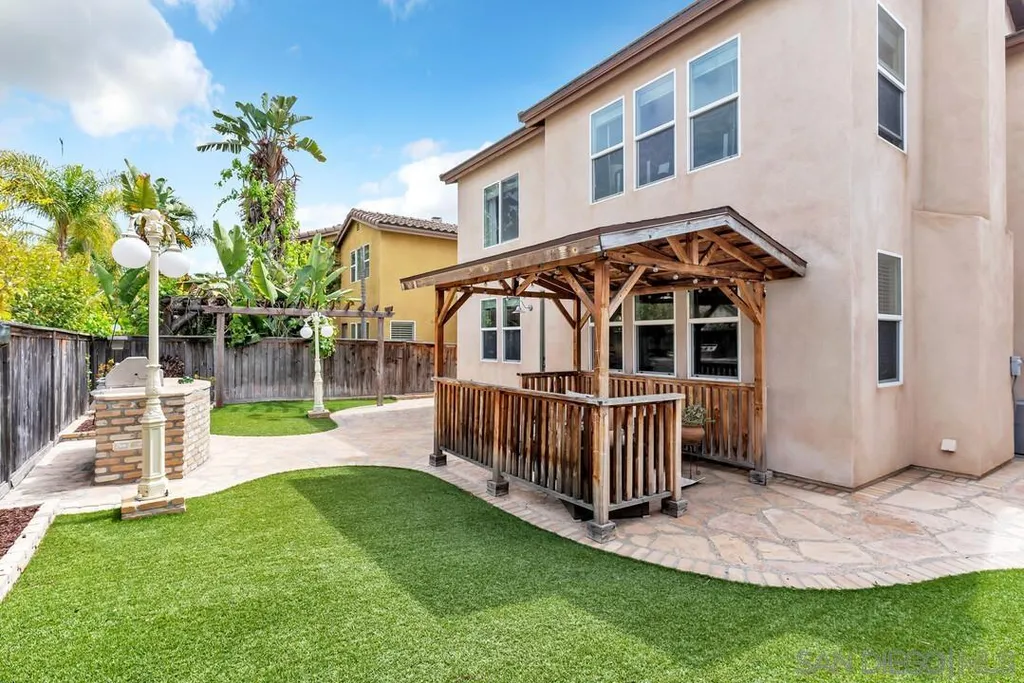 Nestled in the sought-after Winding Walk community in Otay Ranch, this beautifully maintained home offers the perfect blend of comfort, style, and convenience. The bright and airy interior welcomes you with an expansive living room featuring a custom iron stair railing, soaring ceilings and large windows that flood the space with natural light. Elegant wood floors flow throughout, enhancing the home's warmth and charm. The open-concept kitchen has a spacious center island and decorative wood beams that add character and sophistication. Upstairs, the generous primary suite boasts a walk-in closet and a spa-like bath, while a separate laundry room adds everyday convenience. Step outside to your private backyard oasis, perfect for entertaining, with a built-in BBQ, gazebo, private patio, and pretty palm trees. The easy-maintenance landscaping with artificial turf ensures year-round beauty. Additional highlights include paid solar panels and a 220V outlet for EV charging. Residents enjoy resort-style amenities, including two clubhouses, pools, spas, a gym, playgrounds, BBQ areas, and scenic running, biking, and hiking trails. With shopping, dining, and entertainment nearby, plus easy freeway access, this home is a must-see. Low HOA and low Mello-Roos make it an incredible opportunity. Don't miss out!