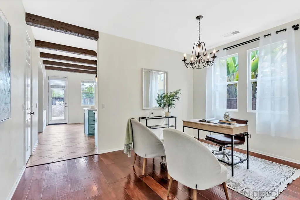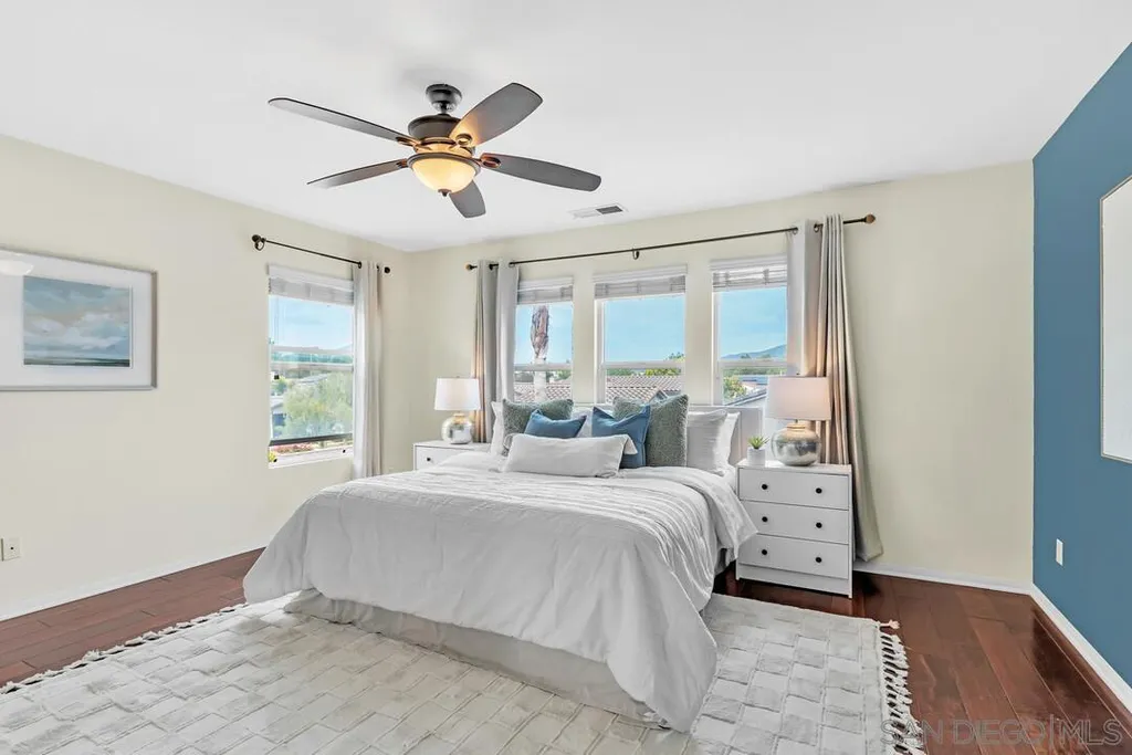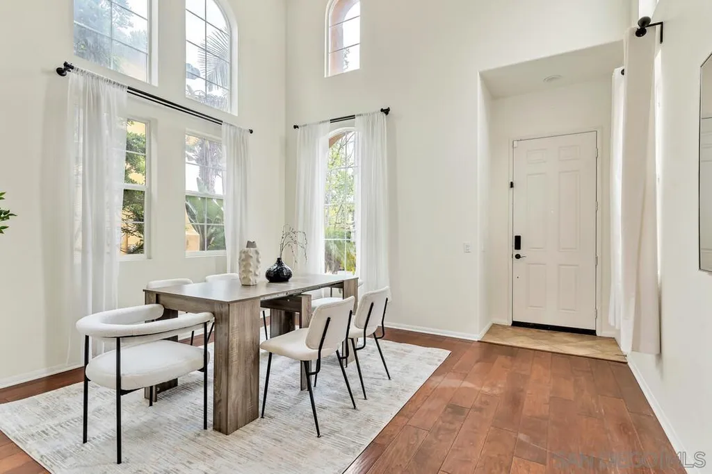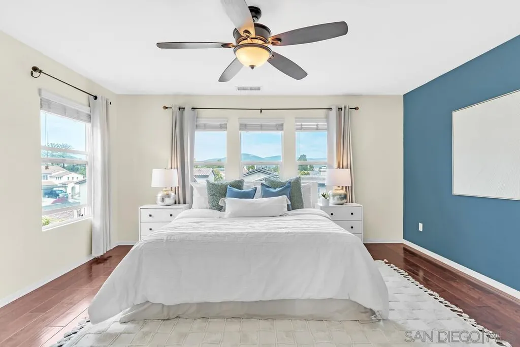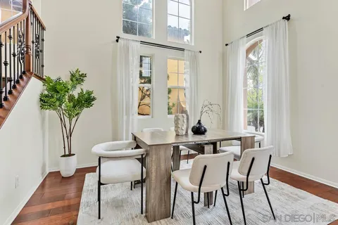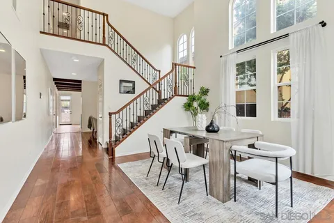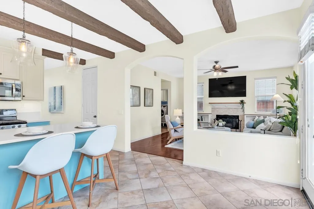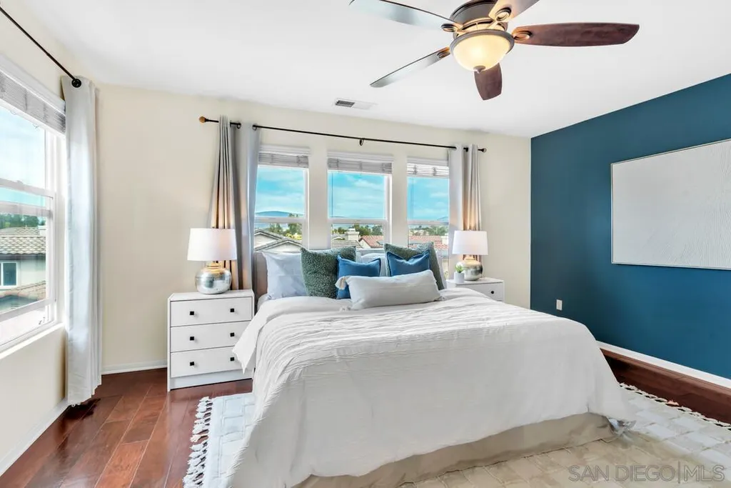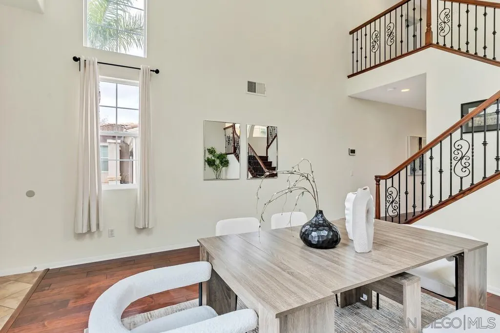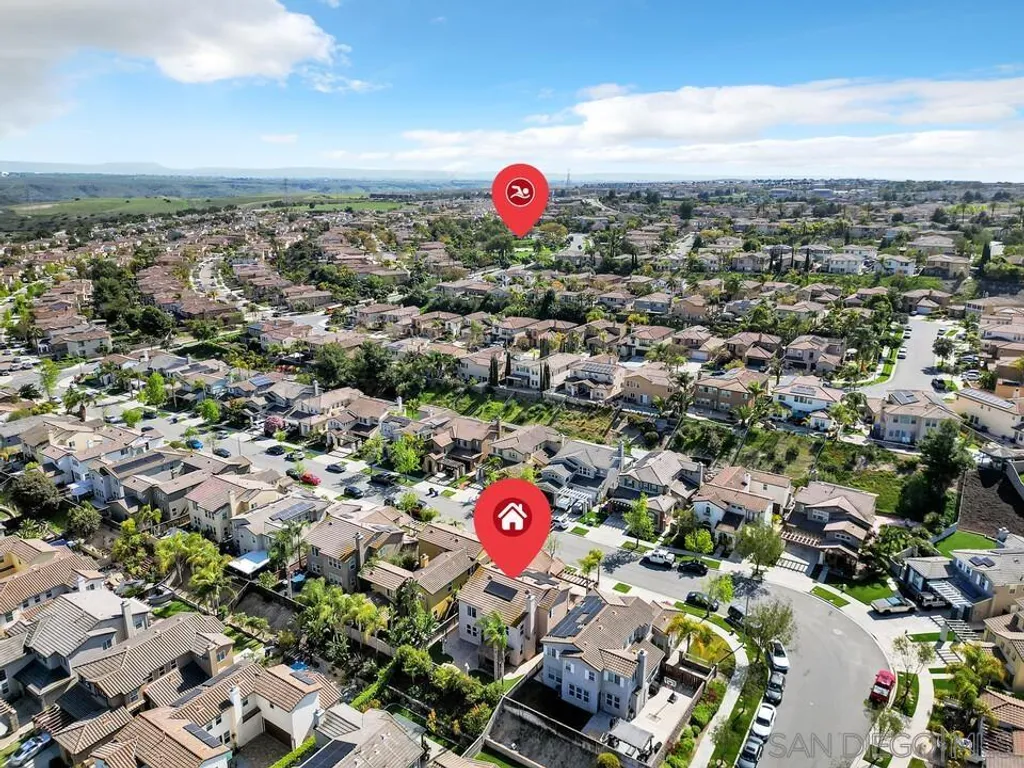 Nestled in the sought-after Winding Walk community in Otay Ranch, this beautifully maintained home offers the perfect blend of comfort, style, and convenience. The bright and airy interior welcomes you with an expansive living room featuring a custom iron stair railing, soaring ceilings and large windows that flood the space with natural light. Elegant wood floors flow throughout, enhancing the home's warmth and charm. The open-concept kitchen has a spacious center island and decorative wood beams that add character and sophistication. Upstairs, the generous primary suite boasts a walk-in closet and a spa-like bath, while a separate laundry room adds everyday convenience. Step outside to your private backyard oasis, perfect for entertaining, with a built-in BBQ, gazebo, private patio, and pretty palm trees. The easy-maintenance landscaping with artificial turf ensures year-round beauty. Additional highlights include paid solar panels and a 220V outlet for EV charging. Residents enjoy resort-style amenities, including two clubhouses, pools, spas, a gym, playgrounds, BBQ areas, and scenic running, biking, and hiking trails. With shopping, dining, and entertainment nearby, plus easy freeway access, this home is a must-see. Low HOA and low Mello-Roos make it an incredible opportunity. Don't miss out!