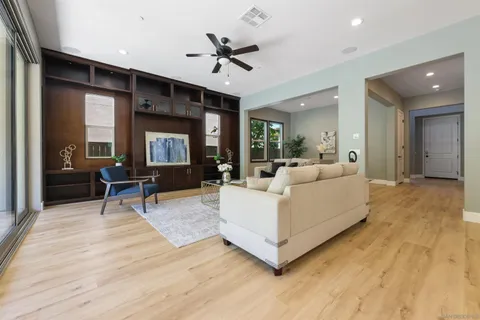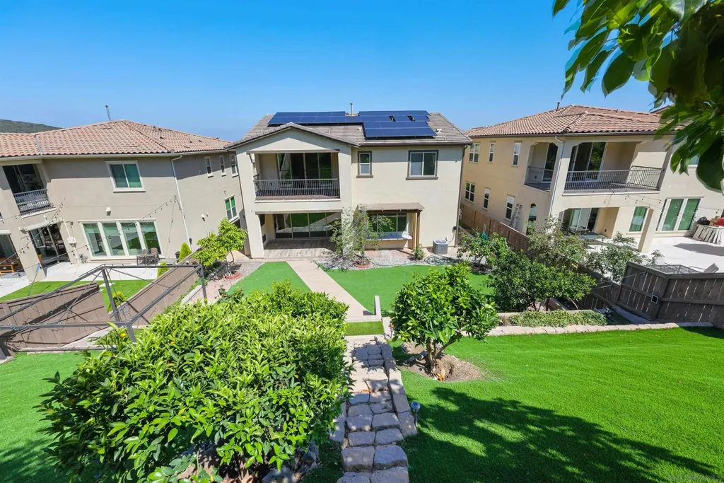 Fully Owned Solar!!! This immaculate ready-to-move property in the highly desirable Heritage Bluffs community comprises of 3 bedrooms, 2 bathrooms, and a loft upstairs with 1 bedroom, 1 bathroom downstairs. The elegant gourmet kitchen features an island, granite countertops, stainless steel appliances that opens up to a covered patio with a built-in television and fireplace, perfect for a family gathering. It also boasts a custom-built entertainment center with newly installed floors and paint. Outside, the home features a beautifully landscaped, low maintenance front yard and backyard complete with exotic fruit trees and an herbal garden.