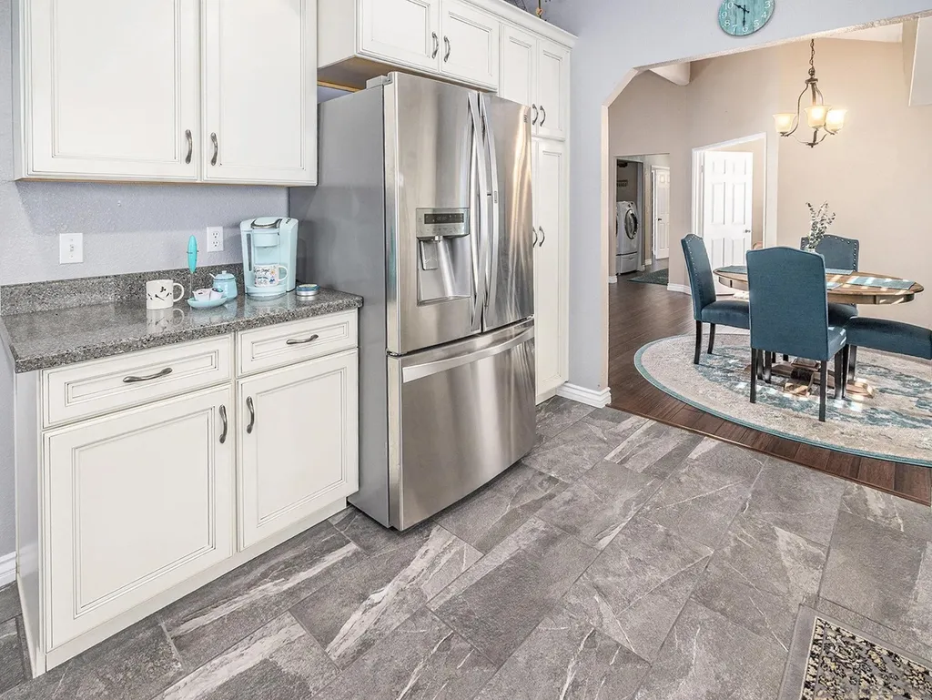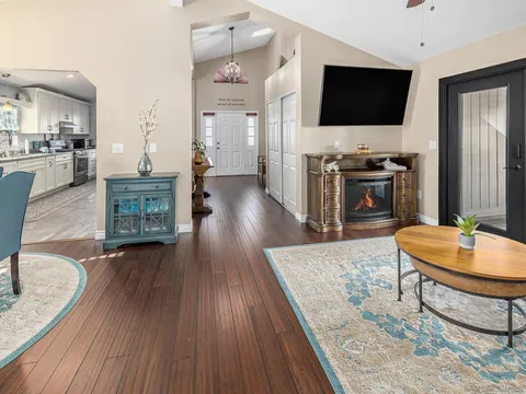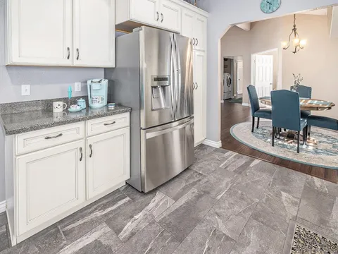 Come and see this beautifully fully remodeled home offering over 1400 sq. ft. of living space! This charming manufactured home features a two-car garage and a fully fenced backyard, and it truly shows like a model. From the moment you enter the wide hallway with cathedral ceilings and elegant lighting, you'll feel right at home. The fully upgraded kitchen is both charming and functional, featuring soft-close cabinetry, custom slide-outs, stainless steel appliances, and a delightful breakfast nook. (refrigerator included)., and beautiful countertops. This home combines beauty with comfort - featuring engineered hardwood floors, remodeled bathrooms, ceiling fans in every room, and heating and air conditioning. Custom double doors from the living room and primary suite open onto a spacious patio where you can relax and enjoy your morning coffee. The backyard is fully fenced and perfect for gardening or outdoor fun activities. The spacious master bedroom includes a walk-in close! The community offers everything you could wish for: a clubhouse with a movie area and pool tables, a remodeled event kitchen, a refreshing pool with a kiddie pool and jacuzzi, a gym, playground, and available RV storage (subject to availability). This is a Family Park! Truly a home that checks every box! Come and see this beautifully fully remodeled home offering over 1,500 sq. ft. of living space! This charming manufactured home features a two-car garage and a fully fenced backyard, and it truly shows like a model. As you enter through the front door, you're greeted by a wide, open hallway with cathedral ceilings and a stunning hanging light fixture. To your right is the completely remodeled kitchen, featuring soft-close cabinets, a custom spice rack, pantry slide-outs, and an abundance of storage for all your appliances. The kitchen includes all stainless steel appliances, including the refrigerator, and offers a cozy nook for a small table, while the adjacent dining area easily accommodates a larger dining set. The home has been tastefully decorated and features beautiful engineered hardwood flooring throughout. There are three bedrooms and two fully remodeled bathrooms with updated countertops. All bedrooms - and the living room - are equipped with ceiling fans for added comfort. The living room and master bedroom both feature custom double doors leading to the outdoor patio. The living room and master bedroom both feature custom double doors leading to the outdoor patio. The spacious master bedroom includes a walk-in closet, and the large patio is the perfect place to enjoy your morning coffee. The backyard offers plenty of space for gardening or outdoor activities. The property also features heating and air conditioning. The Community clubhouse offers fantastic amenities, including a movie-watching area, a pool table for fun with family and friends, and a large remodeled kitchen available to rent for parties and events (with deposits returned the same week). In the summer, enjoy the refreshing pool area, complete with a kiddie pool, jacuzzi, and ping-pong table. Additional amenities include a gym, a children's playground, and RV storage (subject to availability)