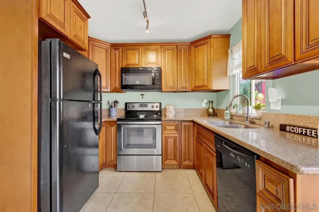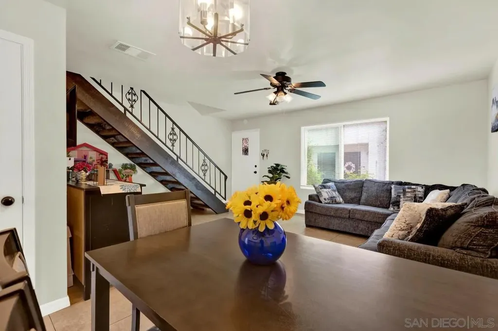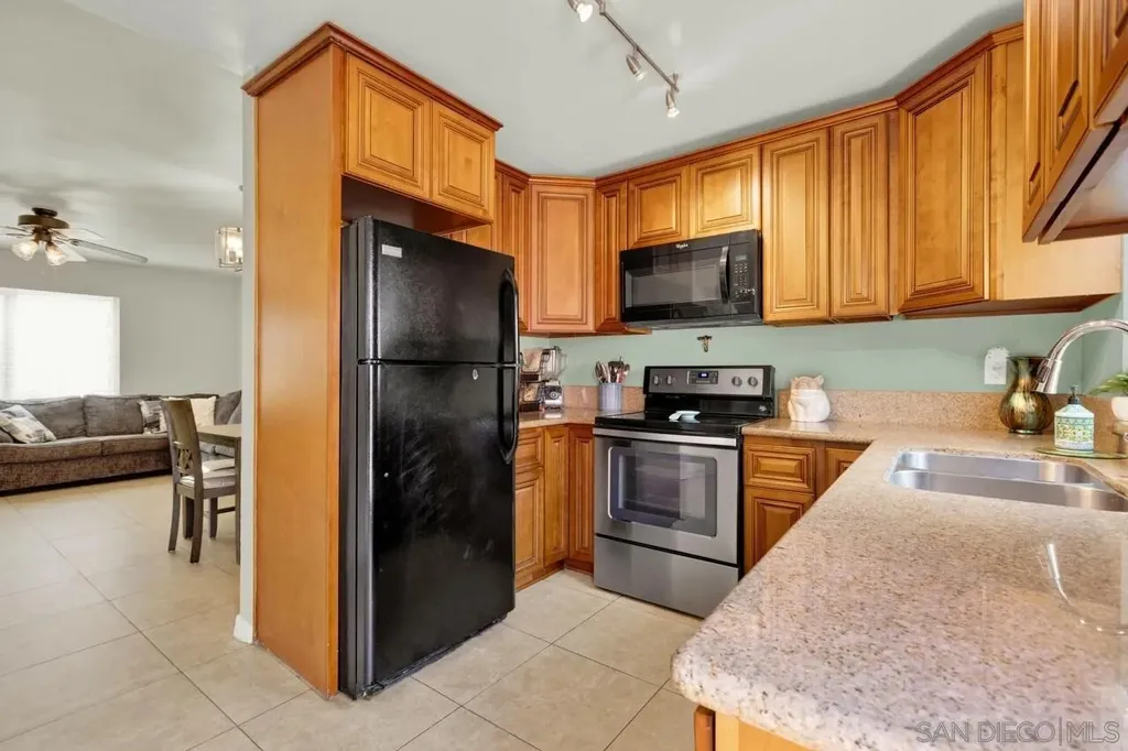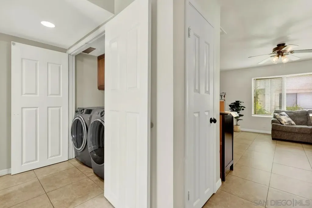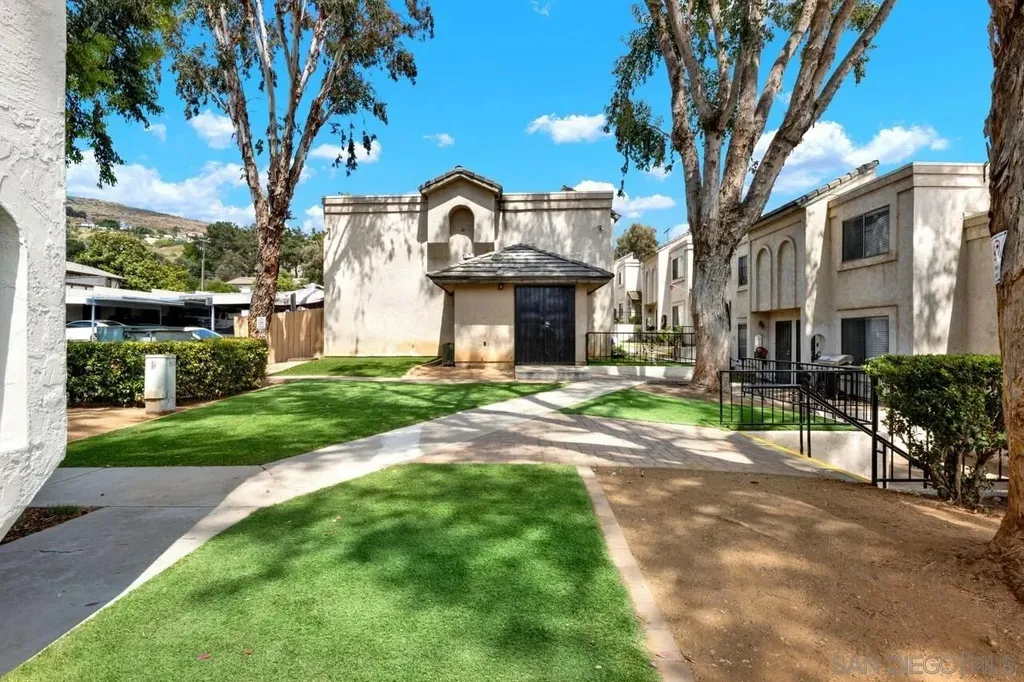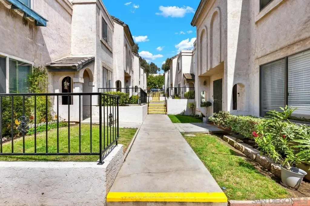 LOW HOA * VA Approved! Light and bright 2BR/1.5BA townhome featuring a full remodel in 2021 - updated kitchen, bathrooms, modern lighting, four-panel doors, dual-pane windows, and ceiling fans in living room and both bedrooms. Laundry room conveniently located off the kitchen. Fresh interior paint and new carpet on stairs. New flat roof in 2024 and retaining wall near parking area. Covered, gated parking space #23 with private storage. Well-maintained community just minutes to shopping, restaurants, and easy freeway access (125 & 94). Common area to west of entrance Assigned parking space #23 w/storage space. HOA pays water. Don't miss the opportunity to call this updated townhome yours.