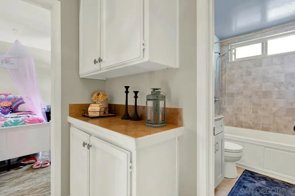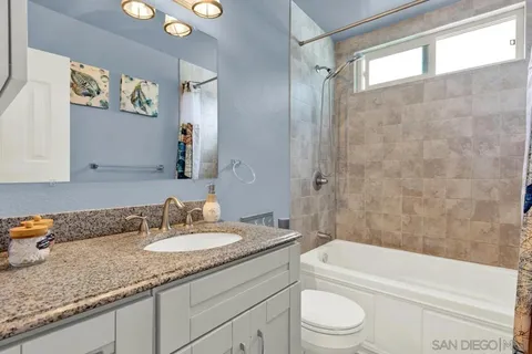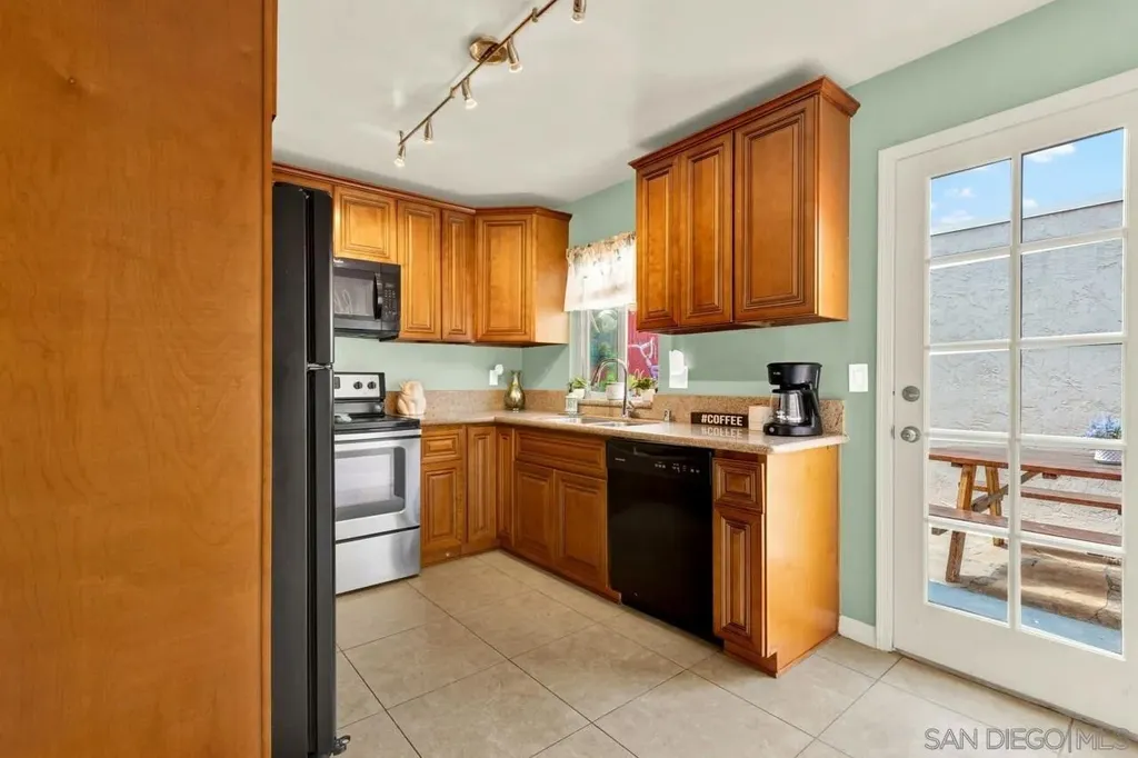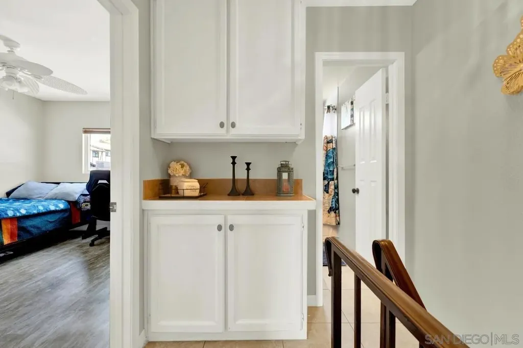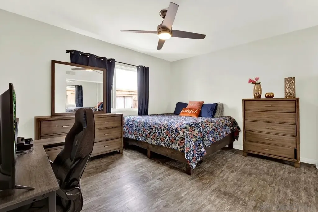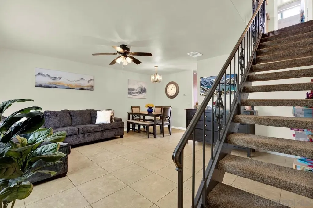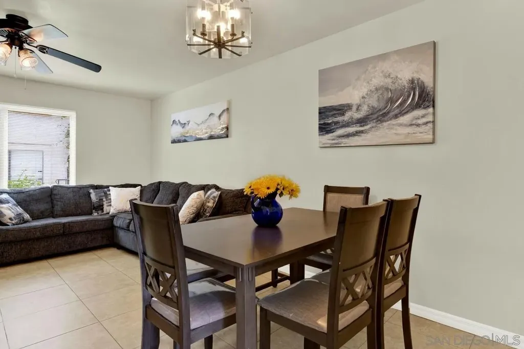 LOW HOA * VA Approved! Light and bright 2BR/1.5BA townhome featuring a full remodel in 2021 - updated kitchen, bathrooms, modern lighting, four-panel doors, dual-pane windows, and ceiling fans in living room and both bedrooms. Laundry room conveniently located off the kitchen. Fresh interior paint and new carpet on stairs. New flat roof in 2024 and retaining wall near parking area. Covered, gated parking space #23 with private storage. Well-maintained community just minutes to shopping, restaurants, and easy freeway access (125 & 94). Common area to west of entrance Assigned parking space #23 w/storage space. HOA pays water. Don't miss the opportunity to call this updated townhome yours.