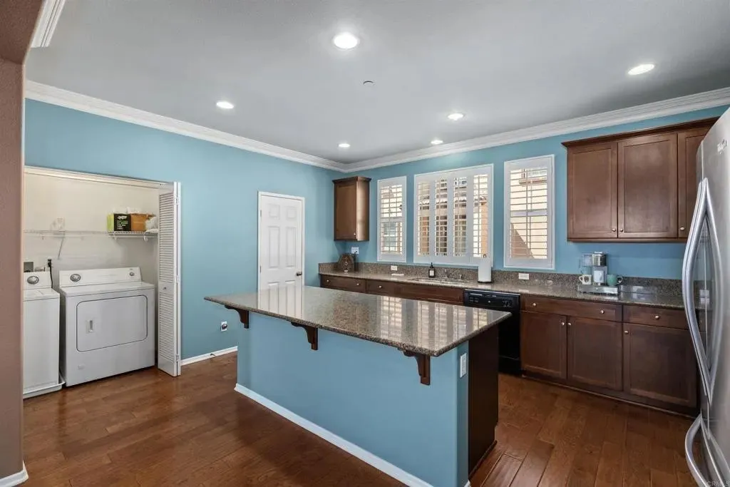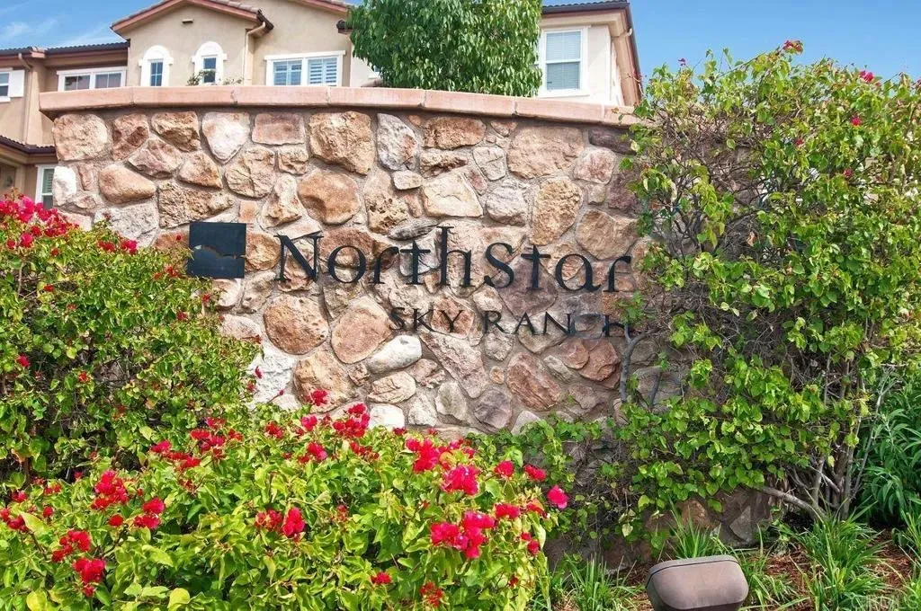 Welcome to Northstar at Sky Ranch! Perched on a hill, this townhome offers views to Mt. Laguna and a private location within the community! Offering 3 bedrooms, 3.5-baths with panoramic views from all three levels. As you enter on the first level, there is a bedroom with a full ensuite bath, walk in closetideal for guests or a home office. The main level features an open concept layout with a gourmet kitchen with granite countertops, an island bar & a walk in pantry. Adjacent to the kitchen is a spacious dining & living room. Enjoy the views from the balcony located right off the living room. A full-size washer & dryer and a powder room are conveniently located on this level. On the third level you'll find a spacious primary suite and an additional bedroom, both with private ensuite baths. The primary bedroom features a walk in closet and window seat, ideal for enjoying the views! Other notable upgrades include hardwood floors on the main level, crown moulding and plantation shutters throughout the home and epoxy flooring in the 2 car garage. The community amenities, include a pool, spa, clubhouse, dog park, and morejust steps from your front door. Convenient location with easy access to the 67, 52, and 125 freeways!