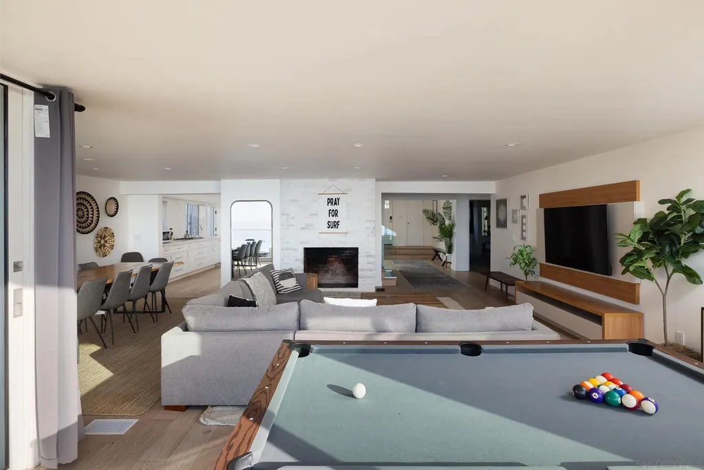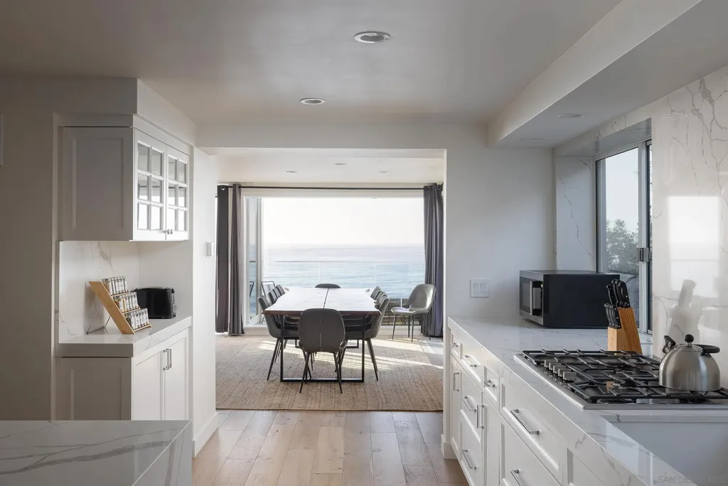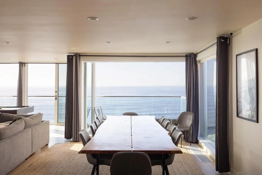 Experience stunning panoramic sunsets over the Pacific Ocean from this luxurious oceanfront retreat in La Jolla. With approved short-term rental status and a pro forma income of over $200,000 per year, it offers exceptional investment potential. Fully remodeled in 2021, the home features multiple ocean-view decks perfect for lounging and dining, a spacious hot tub for ultimate relaxation, and a beautifully designed interior with high-end furnishings and sunlit spaces framed by expansive windows. The main residence offers 4 bedrooms and 4.5 bathrooms, complemented by a private lower-level casita with its own entrance, full bath, and kitchenette - ideal for guests or rental income. Inside, the home is bright and welcoming, featuring hardwood floors, clean architectural lines, and abundant natural light. The gourmet kitchen boasts high-end appliances, ample counter space, and a walk-in pantry, perfect for culinary enthusiasts. Enjoy meals with family and friends at the spacious dining table set against a backdrop of large picture windows. Located just a short walk from both La Jolla Shores and the Village, you'll have easy access to premier dining, shopping, and entertainment.