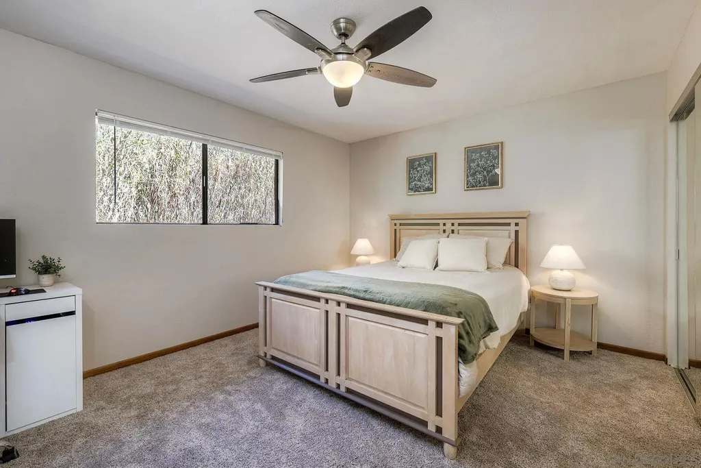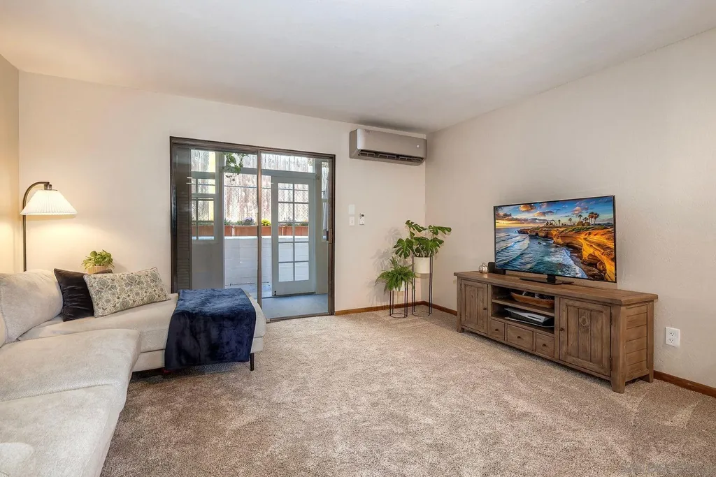 Welcome to this thoughtfully updated two-bedroom, one and half bath condominium tucked in a cul-de-sac community. Enter into an open main level where the living room flows into the dining area and kitchen, creating a seamless entertaining space. The kitchen offers updated cabinets and tile floor, installed by previous owners. The enclosed space adjacent to the living room functions as extra storage and designated laundry space. Upstairs, you'll discover two comfortable bedrooms and a fully renovated bathroom. Plush new carpet climbs the stairs, fills the bedroom floors and the main floor for a cozy feel underfoot. With the fresh paint and neutral finishes, this condo feels bright, clean, and move-in ready. Community amenities include a pool & spa. One assigned covered parking + additional permit parking is available on a first come, first served basis. HOA fees cover water, trash, and common grounds maintenance. New roof installed on the building in May 2025. Conveniently located near shopping, dining, and freeway access.