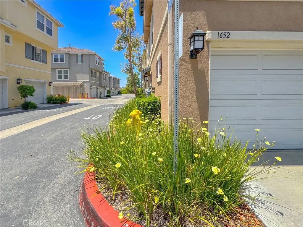 Welcome to this beautifully maintained tri-level corner unit condo offering 1,494 square feet of comfortable and functional living space. This home features 3 bedrooms and 2.5 bathrooms, along with an attached two-car garage located on the first level for easy access and added convenience. On the second floor, you'll find an open-concept living area with an updated kitchen complete with brand-new countertops. The living room features a cozy fireplace and opens to a private balcony, perfect for relaxing or entertaining. A powder bathroom and a separate laundry room are also located on this level, offering both practicality and style. The top floor includes all three bedrooms, including a spacious primary suite with its own en-suite bathroom. The additional two bedrooms are well-sized and share a full bathroom, making this layout ideal for families or guests. Located in a well-maintained community with low Mello-Roos and special assessments, this home also offers access to excellent amenities including a community pool and park. Conveniently situated near shopping centers and everyday essentials, this condo blends comfort, value, and lifestyle in one great package.
