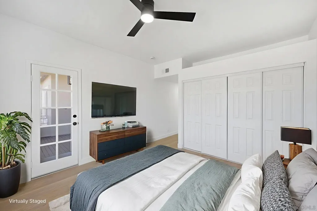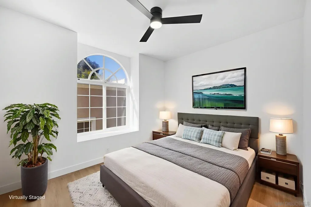 This stunning 2 bedroom + den condo has a 180-degree unobstructed and panoramic view of all of Lake San Marcos and the rolling mountains with snowcapped mountains during the winters in the distance. The home has been fully remodeled featuring new wood vinyl flooring throughout, newly remodeled kitchen and bathrooms, living spaces with 9 ft ceilings. The large kitchen features plenty of storage, with new stainless-steel appliances, stove also has an air fryer inside the oven and a cozy breakfast nook with stunning natural light. Dining room with has a beautiful slat wood panel accented wall. Unit includes a 2-car detached garage space. The HOA includes a ton of amenities including access to all Lake San Marcos amenities - including multiple pools, pickleball/tennis courts, Lake San Marcos activities (boating, kayaking, paddleboarding, fishing, etc.). Also includes 24-hour security patrol. Enjoy a cup of joe watching the sunrise on the balcony over looking the lake. It is a must see. Interior pictures are virtually staged