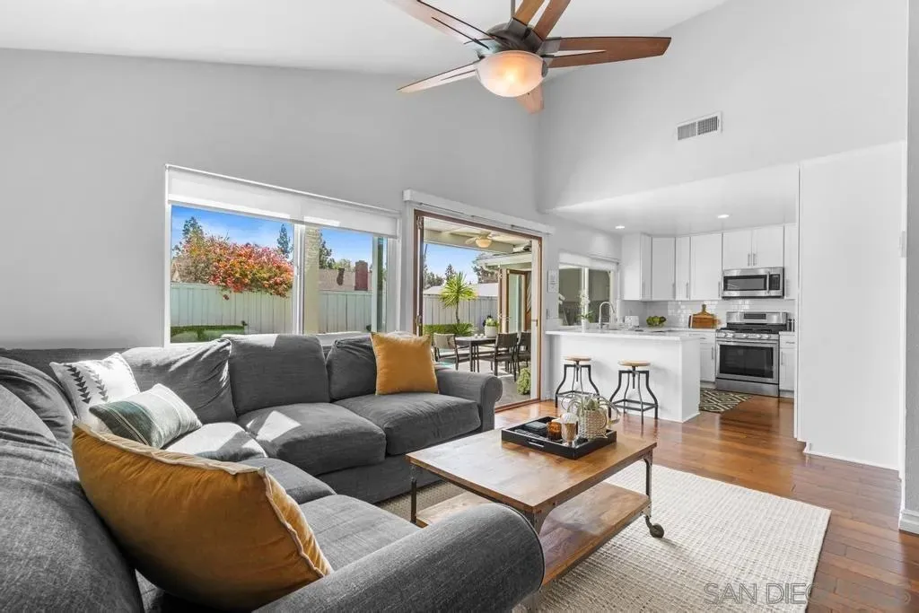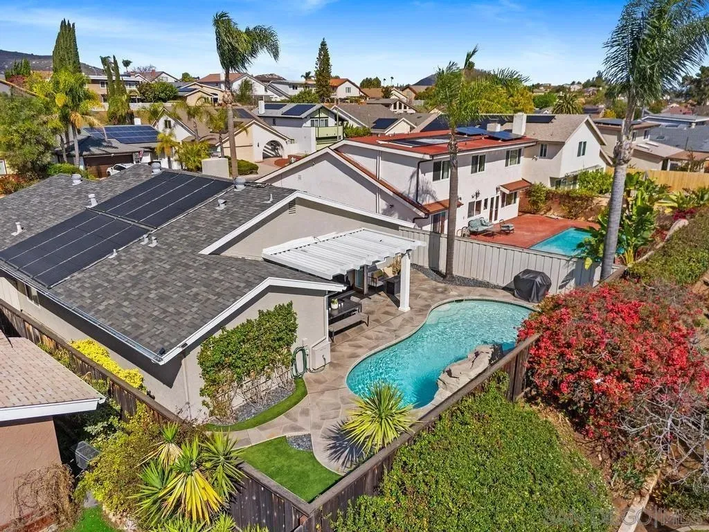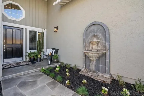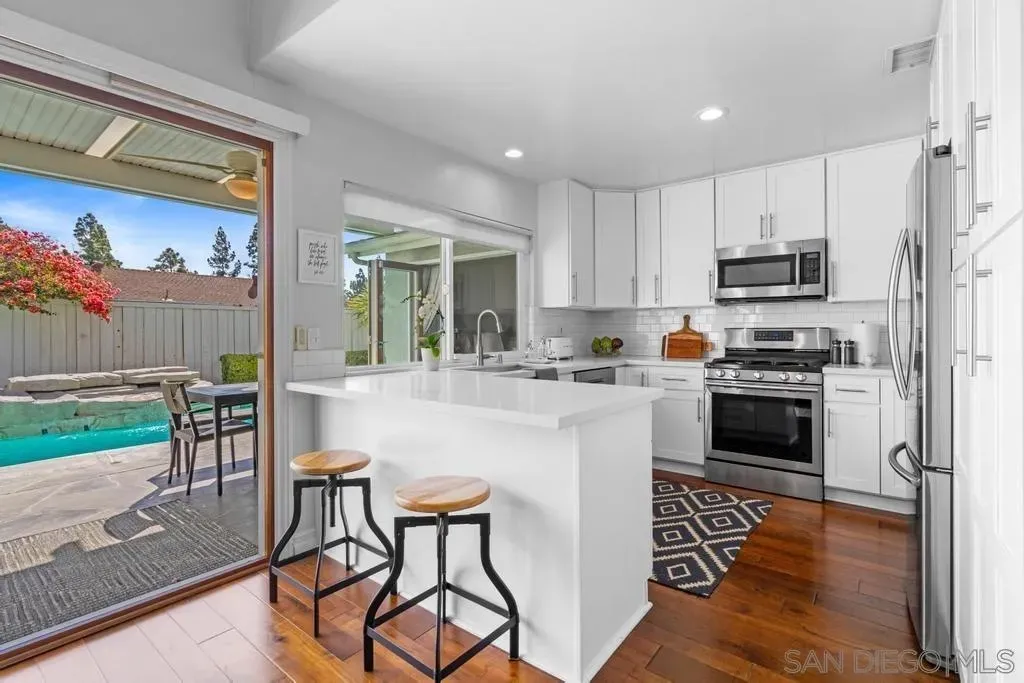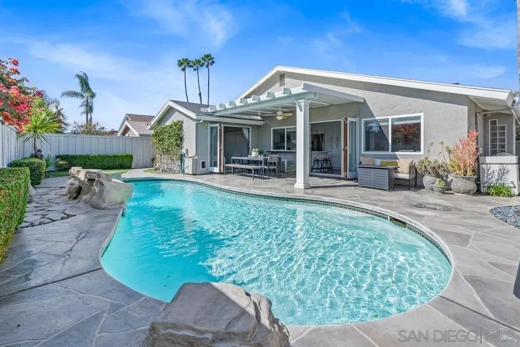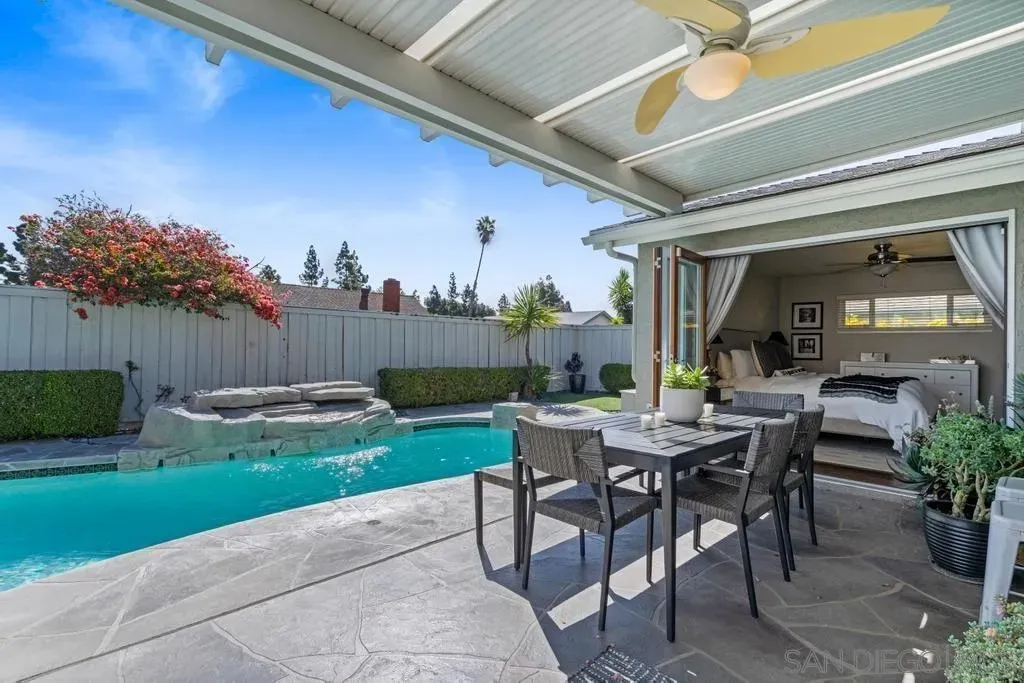 Step into sophisticated style and expansive indoor-outdoor living in this exquisitely remodeled Westwood residence with exceptional designer finishes. This single-level home features engineered hardwood floors, a flowing layout, and a perfect balance of elegance and comfort The gourmet kitchen is a true showstopper - fully remodeled with premium finishes and opening to a spacious covered patio through stunning LaCantina doors, creates the ultimate San Diego alfresco experience. Outside, enjoy your private saltwater pool complete with solar, tranquil waterfall, and recent refinishing - your personal oasis for relaxation and entertaining Retreat to spa-inspired bathrooms featuring custom vanities, elegant soaking tub, and artisan tilework. This wonderful Westwood home is close to the Westwood Club with pool, courts and activities, Poway Schools, dining, hiking and shopping