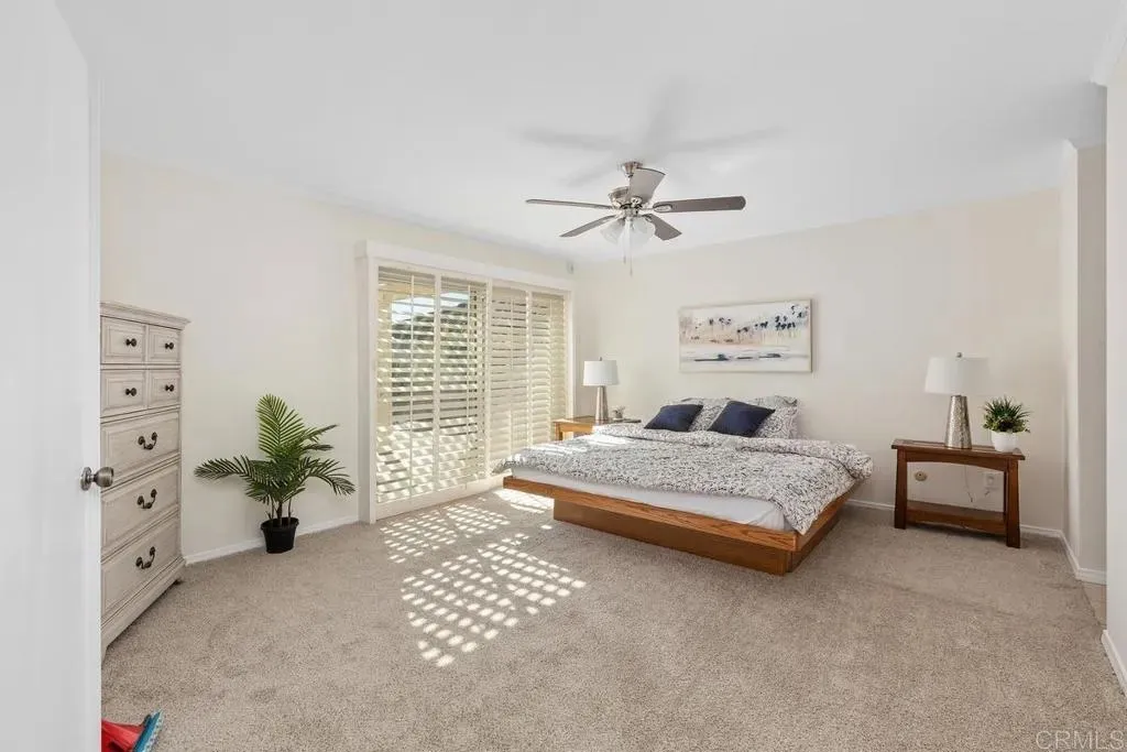 Welcome to this beautifully maintained single-story home! This inviting residence features 3 bedrooms (one is currently being used as an office, complete with built-in storage). The interior has been freshly painted and updated with brand-new carpet throughout, and plantation shutters adorn the windows. The spacious living room showcases vaulted ceilings, a gas fireplace, and abundant natural light, creating an inviting and open atmosphere. The kitchen is equipped with stainless steel appliances and ample cabinetry. The primary bedroom features a large walk-in closet and a sliding glass door that provides easy access to your expansive backyard, where you can relax and enjoy peaceful views of the community and surrounding nature. Experience the serene and active lifestyle that Oaks North, one of San Diegos most desirable 55+ communities, is known for with beautifully maintained grounds, friendly neighbors, and resort-style amenities.