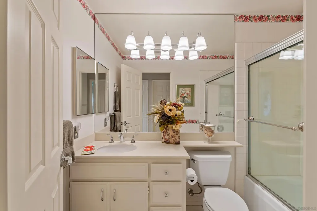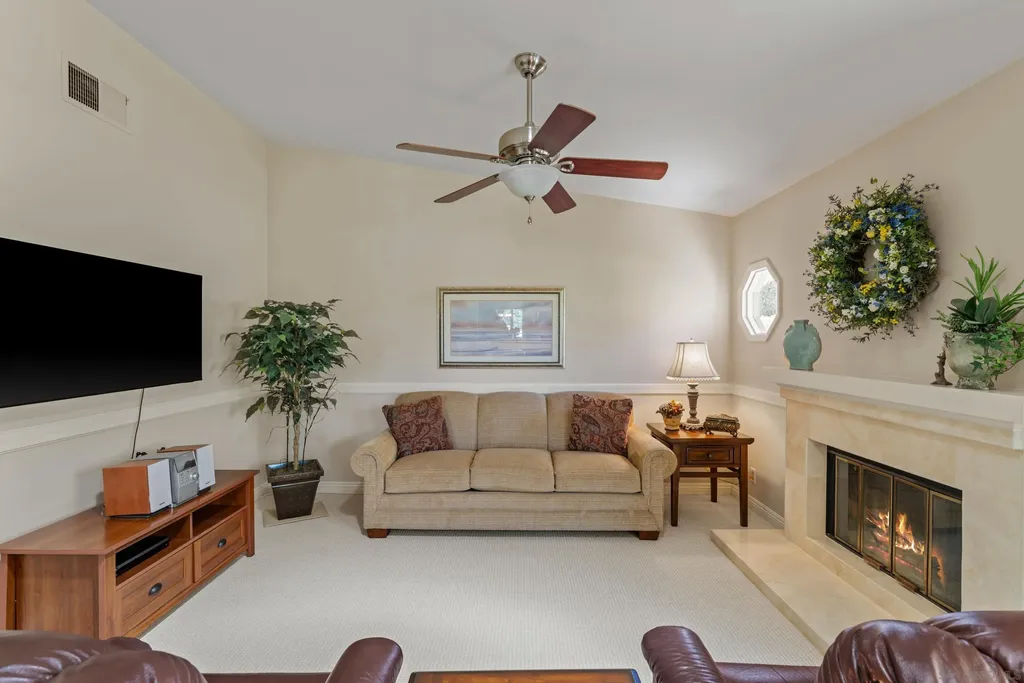 Welcome to this meticulously maintained home in the sought-after 55+ community of Oaks North Marbella. Located on a quiet street with minimal traffic and directly across from a peaceful greenbelt, this home offers great curb appeal with artificial turf and a charming pathway leading to a beautiful leaded glass front door. The bright interior features vaulted ceilings, newer dual-pane windows and sliders, shutters, and a decorative stained glass window. The kitchen includes refaced cabinets and solid surface countertops. Recent updates include new carpeting, newer roof underlayment, and a newer garage door and opener. Relax on the private patio with beautiful mountain views, or take advantage of the nearby historic Bernardo Winery, with it's weekly Farmer's market, shops and restaurants, or partake in the many activities offered with the included membership of the Oaks North Community Center. The public Oaks North Golf Course is also easily accessible for golf enthusiasts. Don't miss out on this truly turnkey home in an exceptional location.