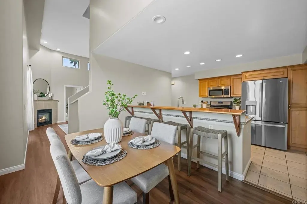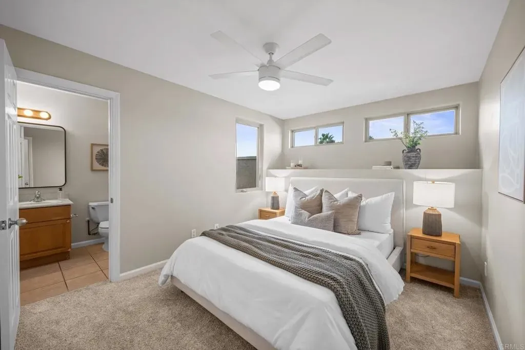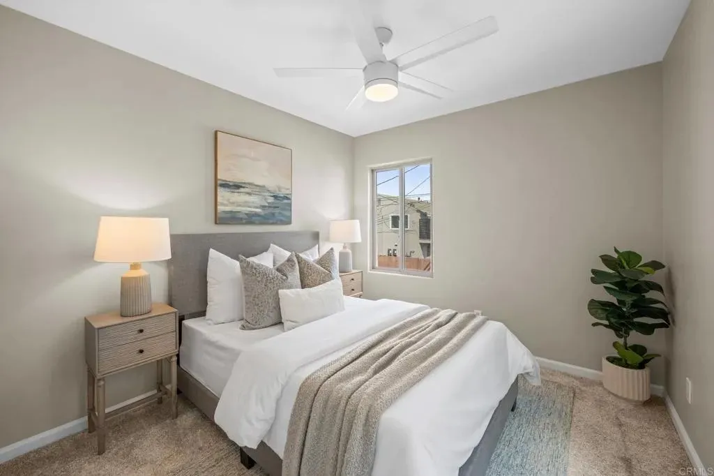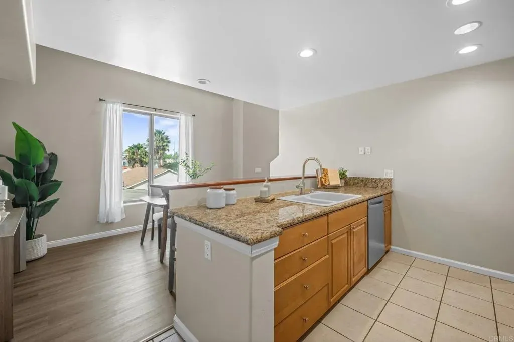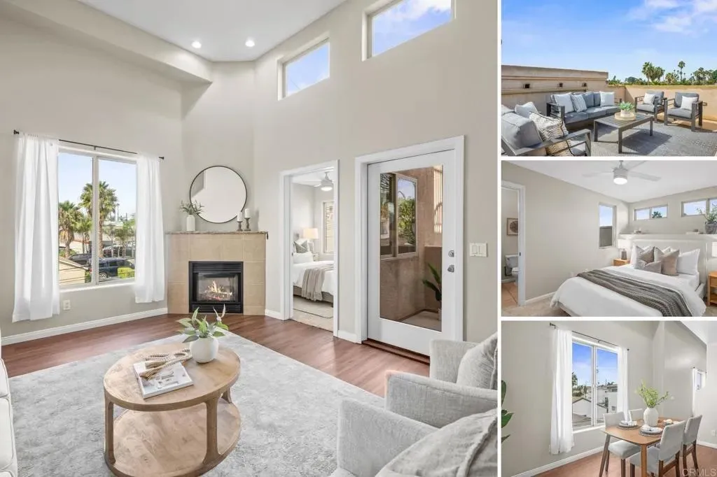 Just blocks from all the vibrant amenities Pacific Beach has to offer, this 3-bedroom, 2.5-bath condo is the ultimate beachside retreat. Perfectly positioned as a corner unit, youre only steps from Garnet Ave, a few blocks to Mission Bay, and about a mile from the beach, shops, and restaurants. Enter through your private entryway to find a convenient downstairs bedroom with a full bath, plus a stacked washer and dryer in the hallway. The main level offers an open layout with a kitchen, dining area, powder bath, living room, and an additional bedroom that can also serve as a home office. The main living area offers an open layout with lots of windows and the patio door which is perfect to take in those coastal breezes. Going upstairs, the private primary suite features a full bathroom. Heading back downstairs off the living room, the private patio leads to a spacious rooftop deckideal for sunsets, fireworks, or entertaining guests. Adding to its appeal, this home comes with an attached one-car garage plus a dedicated parking space right next to the entrance. With only four units in the well-maintained HOA, this property combines comfort, convenience, and the best of beach living.