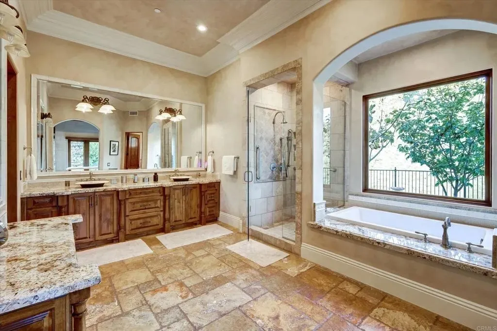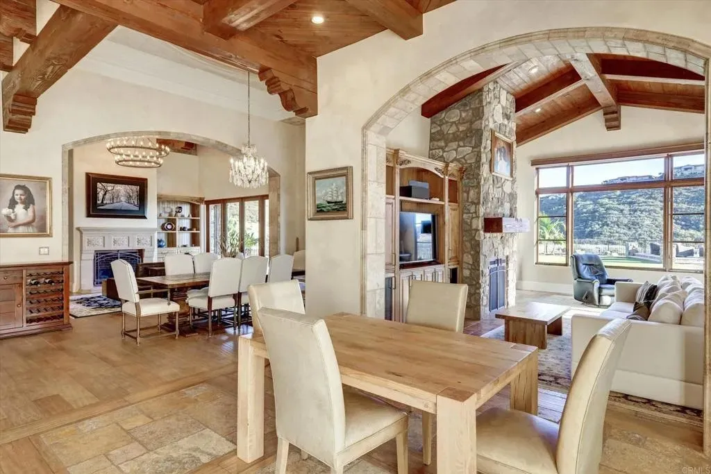 Set high above the coast in Cielos exclusive guard-gated community, this custom luxury estate showcases sweeping ocean, coastline, and city-light views from Del Mar to downtown San Diego. Designed for elevated living, the home blends refined craftsmanship with a seamless indoor/outdoor flow. Impressive 10-foot hand-carved mahogany doors open to travertine and Versailles-pattern stone floors, solid Alger wood doors, masonry fireplaces, and elegant architectural details. Expansive windows frame panoramic vistas throughout. The great room features 16-foot sliding pocket doors that extend the living space to spacious view patios ideal for entertaining. The main-level primary suite offers dual walk-in closets and a spa-inspired bath, while every additional bedroom includes its own walk-in closet. With unmatched privacy, timeless design, and breathtaking views, this residence delivers the pinnacle of luxury living in one of San Diegos most sought-after communities.
