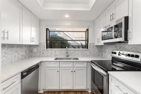 Beautifully remodeled, 1828 Diamond St, Unit 3, in San Diego is a move-in-ready 3-bedroom, 2-bath Pacific Beach townhome in a prime location that perfectly blends modern updates with the laid-back SoCal lifestyle. This home has passed SB326 balcony inspection and comes with a designated parking spot, giving you added peace of mind and convenience. The open-concept kitchen, dining and living room features a cozy fireplace and direct access to a spacious, private backyard deck patio, ideal for outdoor dining and relaxing with family and friends. The updated kitchen is equipped with stainless steel appliances, quartz countertops, a decorative tile backsplash, and ample cabinet space. A full bathroom with a large shower is conveniently located on the main level. Upstairs, vaulted ceilings enhance the sense of space in all three bedrooms. The primary suite includes charming French doors, a private balcony, and direct access to the upstairs full bathroom. A secondary bedroom also offers its own private balcony with access to a storage room. The stylish upstairs bathroom features dual sinks, quartz countertops, generous storage, and dual access from both the hallway and the primary suite. Additional highlights include in-unit laundry, smart interior storage solutions, and two outdoor storage areas one upstairs and one in the backyard adding to the home's overall functionality. All appliances are included. Live the ultimate Pacific Beach lifestyle with local restaurants and grocery stores at Pacific Plaza just a short walk around the corner. Bike to Kate Sessions Park, Mission Bay, Crystal Pier and the beach. With nearby schools, parks, low HOA dues, and quick freeway access, this townhome truly has it all. Dont miss the opportunity to own a stylish, updated home in one of San Diegos most desirable beach communities!