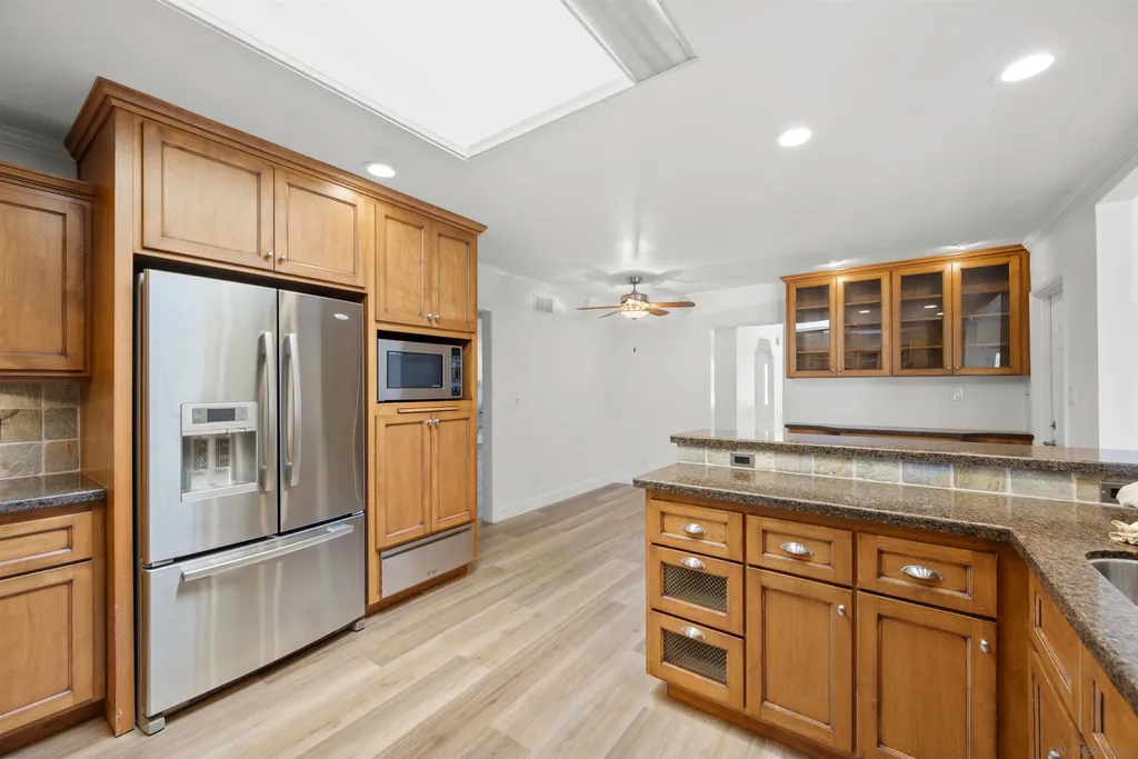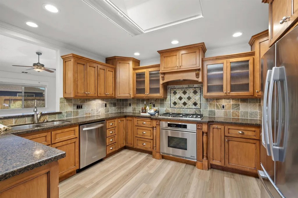 Ready for you to move in and unpack boxes! This lovely single level home offers 4 bedrooms and 2.5 baths, upgraded with new luxury vinyl plank flooring throughout the home and has a freshly painted interior. The floorplan offers an easy flow for entertaining family with a large living room w/fireplace plus a separate family room. All windows and sliders have been upgraded. The kitchen has warm cabinetry with loads of storage space and granite counters. There is an attached dbl garage PLUS a separate appx 40x30 ft workshop and RV parking behind gate.
