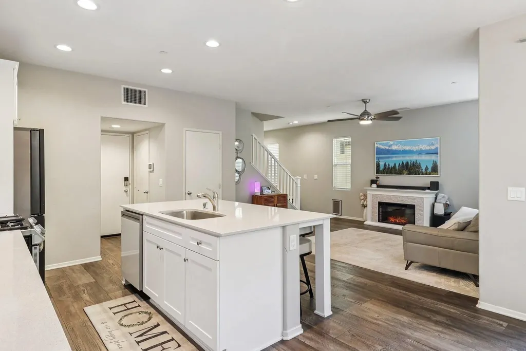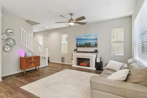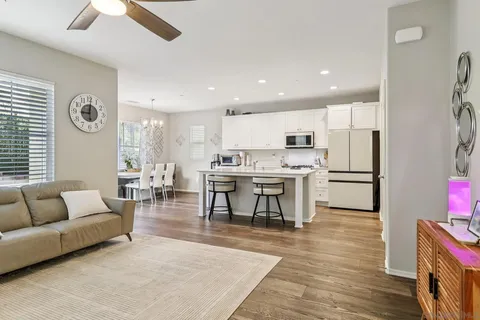 Opportunity awaits, seller has a VA assumable loan! Looking for a fresh, move-in ready home? This upgraded 3-bedroom with a bonus loft house has it all! Sunlight fills every room, highlighting neutral tones and beautiful wood-like flooring throughout most of the home. It has an open flow layout that keeps everyone connected from the kitchen to the living room. The kitchen shines with bright elevated white cabinetry, upgraded quartz countertops, and coordinating appliances. Upstairs, you'll find three comfortable bedrooms along with a versatile loft space which adds extra flexibility to the layout - perfect for work, hobbies, or relaxation. The primary bedroom has a custom cabinetry in the walk in closet and an upgraded en-suite bathroom. This home features a beautiful low maintenance yard, with a cozy garden, perfect for entertaining guests, storage space in the garage, new carpet in the bedrooms, new wood like flooring on the stairs and upgraded energy efficient touches through including a whole house fan, tankless water heater, and solar panels that are paid off. Located in a newer community with a cute park built in 2020, this home offers modern construction and design. View it today!