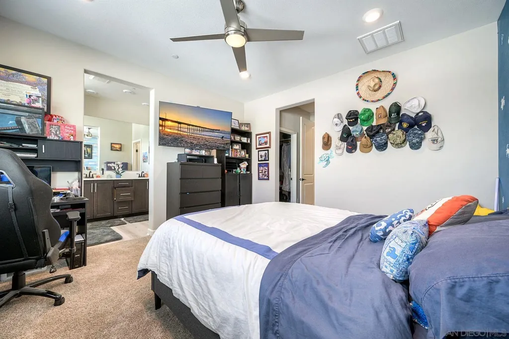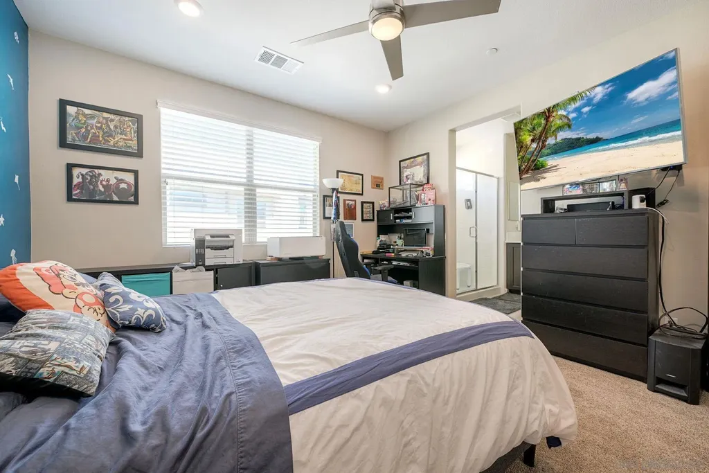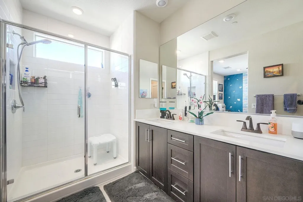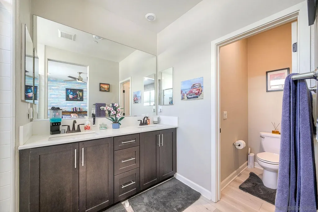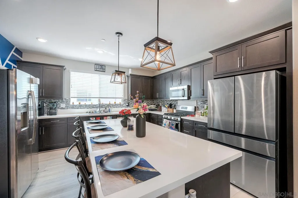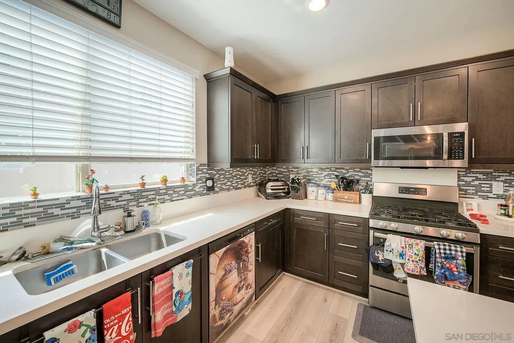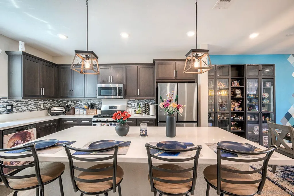 Assumable VA Loan 4.125% available to qualified VA buyers for a refined residence where comfort meets sophistication. The private primary suite feels like a retreat, complete with his-and-hers walk-in closets and a spa-inspired bath. Every detail has been curated for modern living - solar panels for efficiency, split-zone climate control, built-in speaker wiring, fire sprinklers, upgraded flooring, and a large pantry. The home comes turnkey with Samsung appliances, washer/dryer, a smart lock, smart switches, Eufy security, and a MyQ garage system. Life here is elevated by resort-style amenities. Six thoughtfully designed parks - featuring a children's splash pad, tennis and basketball courts, BBQ pavilions, and a community garden - invite leisure at every age. The pool with outdoor kitchens creates the perfect backdrop for sun-soaked weekends and evening gatherings. Everyday indulgence is close at hand. Stroll to nearby sushi bars, wine bars, and artisanal caf s, or enjoy elevated dining at neighborhood favorites such as Farmer's Table or Acqua E Farina. Retail therapy is effortless with Costco, HomeGoods, and boutique shopping just minutes away. For families, acclaimed schools - Wolf Canyon Elementary, Eastlake Middle, and Olympian High - ensure excellence in education, while Sharp Chula Vista Medical Center and Scripps Coastal Eastlake offer world-class care moments from your door. This is more than a home. It is a lifestyle designed for those who value sophistication, community, and the ease of having it all.