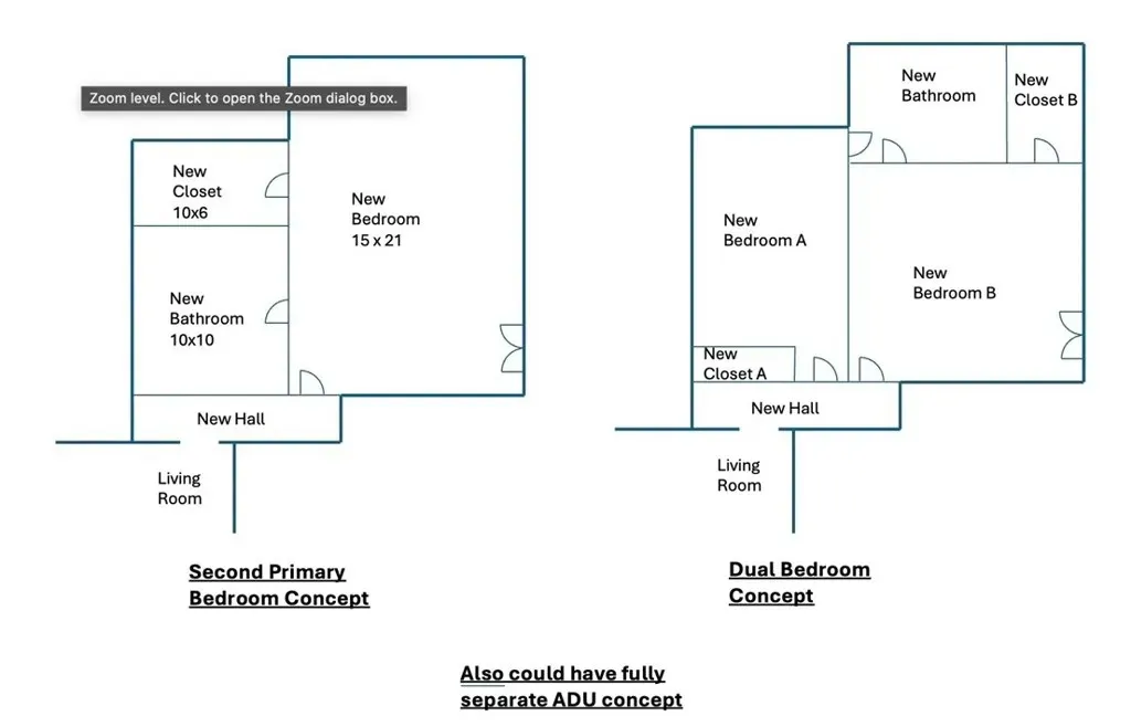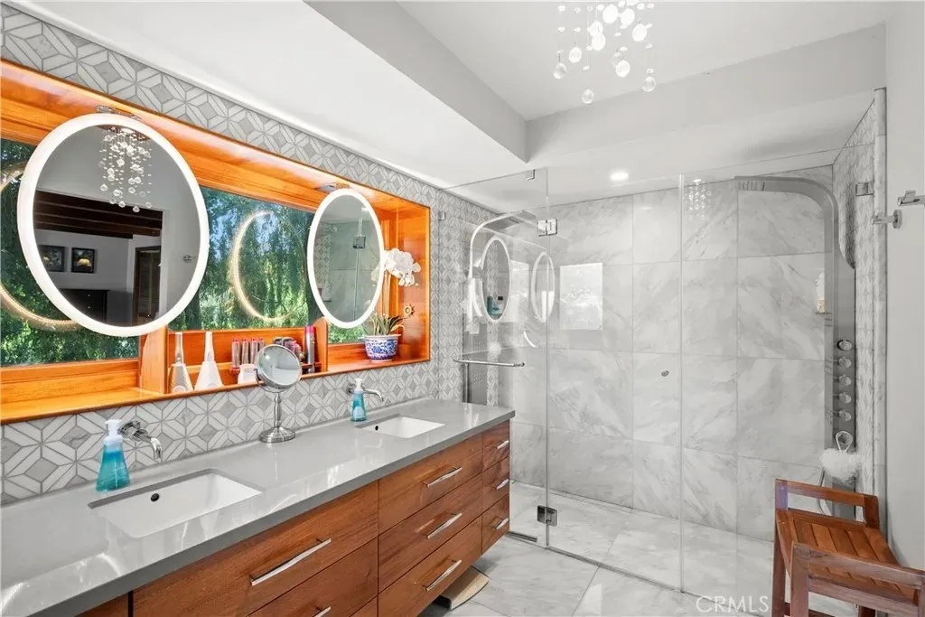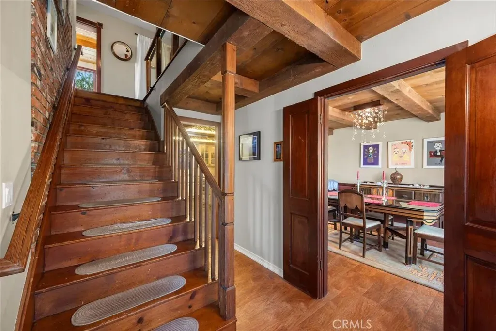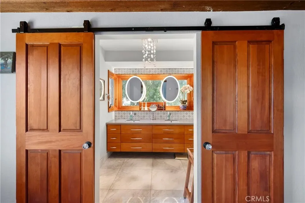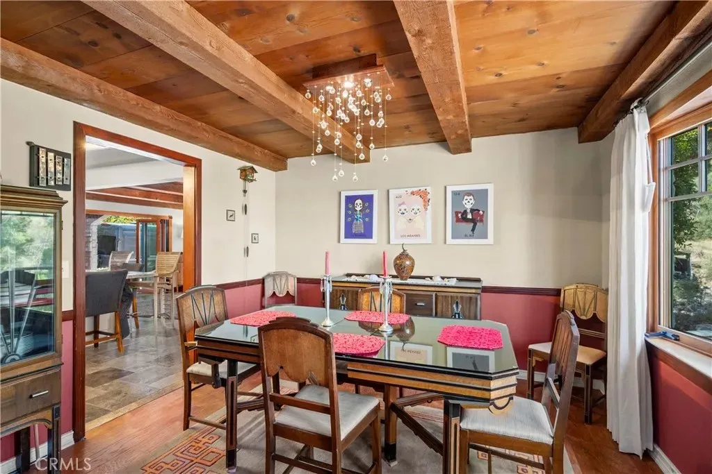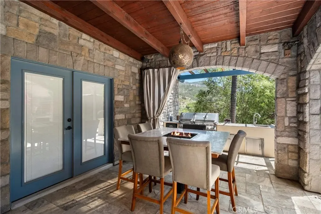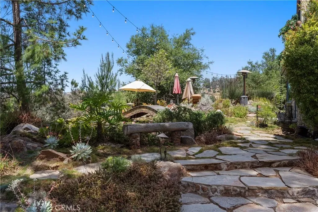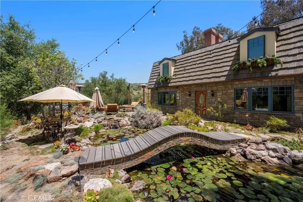 Welcome to this beautifully updated 4 bedroom, 3.5 bathroom home that blends timeless charm with modern upgrades on over 2.4 acres of private land. This large 2,504 square foot home boasts two spacious living spaces, a formal dining room, library, primary suite and an attached ADU above its 3 car garage. Solar for whole house PAID OFF for off grid living and chargers for your EVs. The gourmet kitchen has been tastefully renovated with high end finishes, stainless steel appliances, and ample countertop space, seamlessly flowing into the living room and outdoor areas - ideal for entertaining. All bathrooms are fully upgraded with dual sinks and walk in showers and heated floors. Off the living room, a private wine cellar is perfect for collectors or entertainers alike. Builder was meticulous in crafting the mahogany window casings, inlays for decor, and wood beamed ceilings. Truly must see to appreciate. Above the attached garage, is a quaint Granny Suite / ADU with its own kitchen, bedroom, and bathroom providing the perfect setup for guests or rental income. In addition to the main house, there is a spacious 2 car garage outbuilding for toys and recreation with 220 power (also on solar) connected. It also has a Gym and office which provides the shortest commute to your remote job site :) Just for fun, the owner also has a fully functioning wood shop complete with vacuum system and machinery. If you don't want all that extra space for the wood shop, check out the plans for a separate main floor master and/or second ADU. The grounds are truly magical. From your front door, you enjoy birds bathing in the pond and stream. Walking down from this picturesque setting, you come to the above ground pool and deck area ready to be reimagined. From the kitchen, you walk out a set of 10' folding doors to enjoy the outdoor kitchen and dining area where you can enjoy hosting in a more private setting. Surrounding the home is low maintenance turf perfect for pets. The home also has central HVAC to ensure year round comfort and energy efficiency.