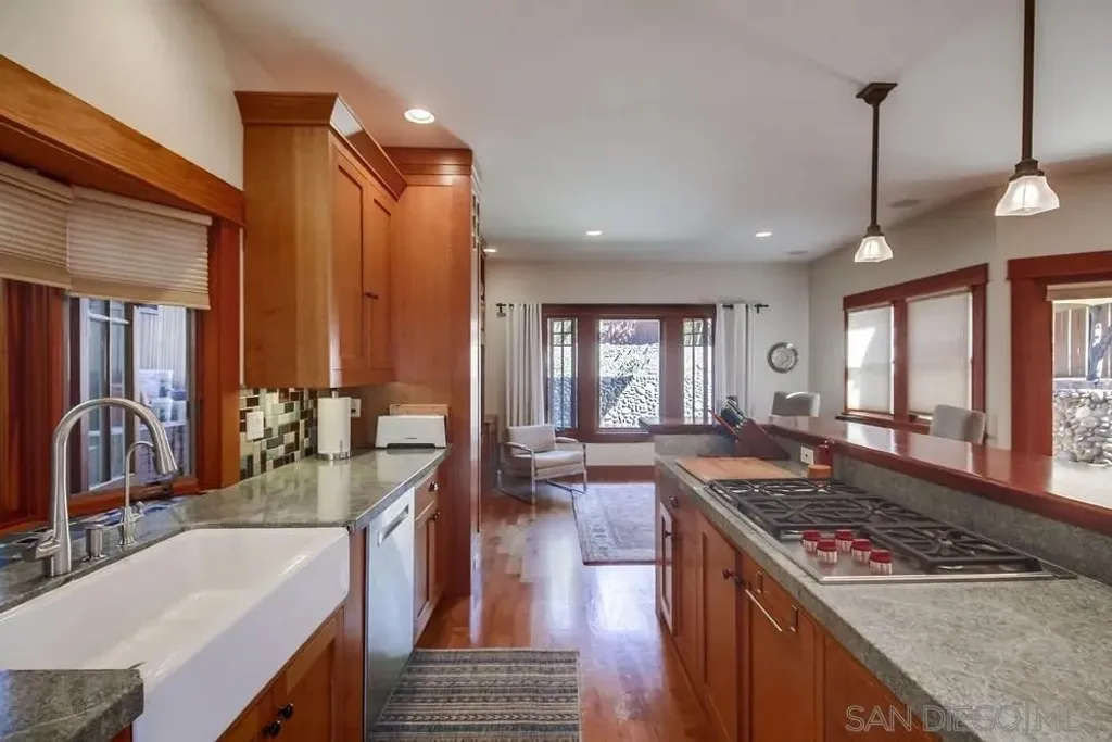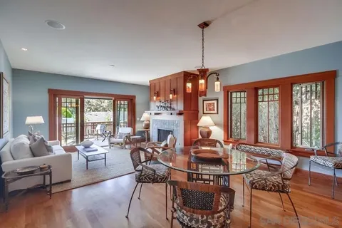 A rare South Park masterpiece, this residence blends the timeless elegance of a classic Craftsman with the ease and sophistication of modern living. Built just 20 years ago, it captures the character of an original while offering the comfort, flow, and functionality that today's buyers demand. The oversized primary suite opens to a private deck with sweeping skyline views of downtown San Diego. Multiple decks and a newly landscaped backyard extend the living space outdoors, creating an entertainer's dream and a serene retreat all in one! Within the interior, rich details set this home apart: a custom mahogany fireplace and cabinetry, handcrafted Laird Plumleigh tiles, solid oak floors, quarter-sawn white oak kitchen and family room cabinetry, and custom wood windows throughout. Original architectural drawings are included for added authenticity. Freshly painted in 2025, the home feels crisp and move-in ready. Adding to its allure is the rare luxury of a two-car garage, an exceptional find in South Park. Just steps from South Park's vibrant mix of dining, boutiques, coffee shops, yoga studios, and Balboa Golf Course, this home offers the perfect blend of privacy, elegance, and walkability.