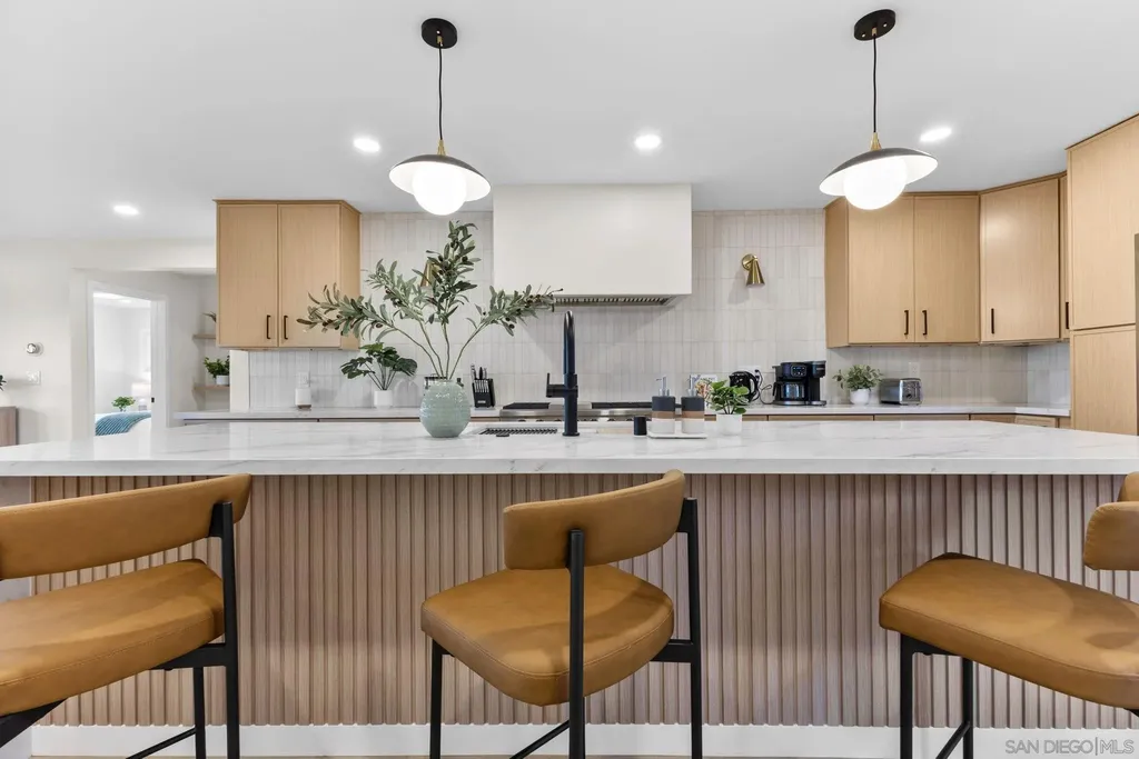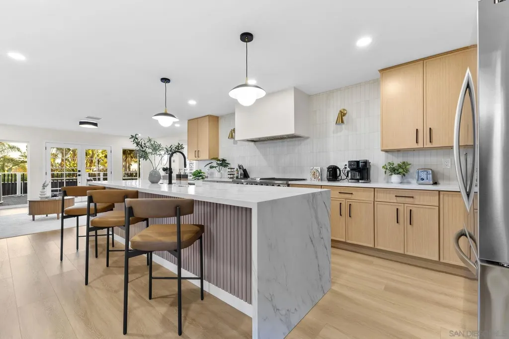 Sellers offering a rate BUY DOWN as low as 5.75%. Welcome to this stunning 4-bedroom, 2-bathroom single-family home located on a quiet, non-through street in one of Pacific Beach's most desirable neighborhoods. Offering approximately 2,660 sq ft of thoughtfully designed living space on a 6,300 sq ft lot, this property seamlessly blends modern upgrades with coastal charm. Step inside to soaring vaulted ceilings, two spacious living areas, and high-end finishes throughout. The gourmet kitchen features Calacatta countertops, upgraded appliances, and plenty of storage. The bathrooms are spa-inspired, including a deep soaking tub and contemporary design elements. Entertain effortlessly with three separate outdoor patio areas, a fully fenced yard with real grass, and a backyard kitchen complete with built-in BBQ and pizza oven. Enjoy peekaboo ocean views from the front deck and the comfort of all-new systems including a new roof, plumbing, electrical, and central AC. Additional features include an attached garage, ample parking, and easy access to local beaches, restaurants, shopping, and top-rated schools. This is one of the only fully upgraded homes in Pacific Beach priced under $1,000 per square foot - an exceptional value for coastal living.