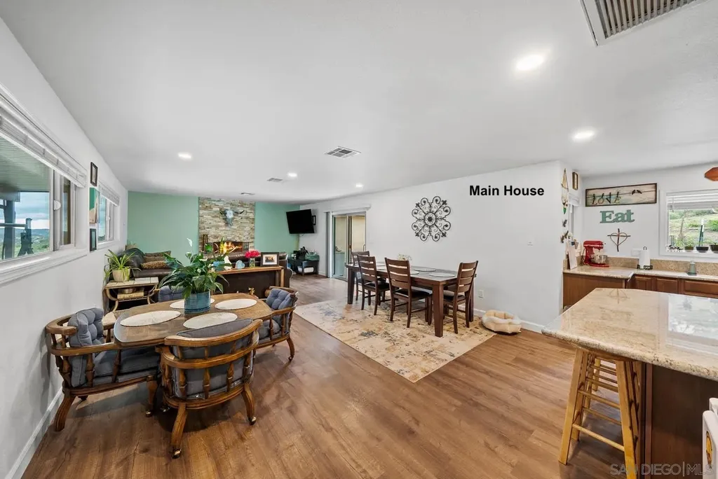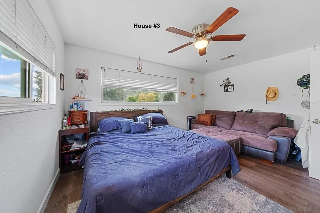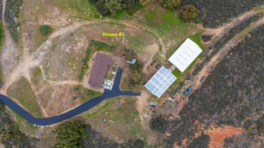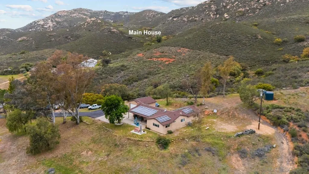 INFO Welcome to your own private 75-acre retreat nestled in the serene back country of San Diego. This extraordinary property features three separate homes, 3 separate address, each with its own private driveway, well, electrical meter, and septic system. Possibly ASSUMABLE $1.2M LOAN based on lender approval. Two of the homes boast 3 bedrooms and bathrooms, while the third one has 2 bedrooms and 1 bathroom. Main House 2,332sf, House #2 (2198sf) House #3 (1788sf). All homes underwent an extensive remodel in 2018, including new electrical, plumbing, roofing, stucco, flooring, doors, kitchens, insulation, bathrooms, wiring, appliances, and water tanks and a freshly repaved driveway. Main House and House #2 have paid off solar with 40 panels on each house. In addition to the homes, there are two barns (approximately 3,000 sq. ft. each; permits unknown). During the rainy season, a natural stream and seasonal lake create a breathtaking landscape and invite abundant wildlife sightings. Whether you're seeking a multigenerational estate, an income property, a private ranch, or simply a peaceful retreat, this property offers unparalleled privacy, natural beauty, and endless potential. Don't miss the opportunity to own this slice of