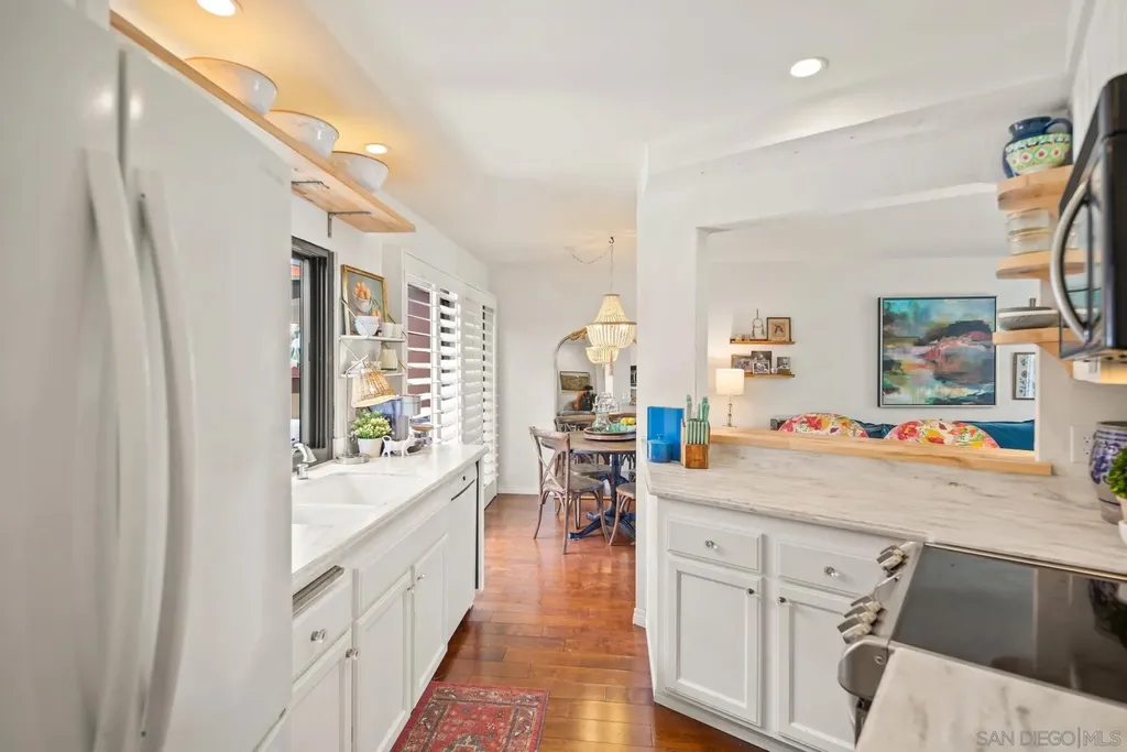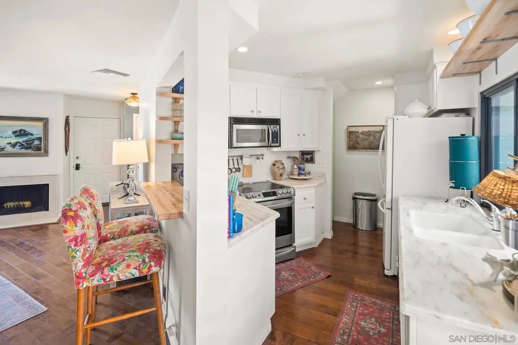 Beautifully upgraded Sea Colony townhome with plantation shutters, engineered hardwood flooring, fireplace, 2+ bedrooms & 2.5 updated baths, plus two patios. A loft bedroom/office has been added to the master bedroom, providing extra living space. The chef's kitchen has Corian counters and stainless appliances, is open to the dining area with bar style seating plus opens onto one of the two patios. The unit also has dual paned vinyl windows, a 2020 roof and extra parking out front. Located in close to the freeway, schools, the library, the beach, downtown & the airport, Sea Colony affords the ultimate lifestyle with a community pool, clubhouse, tennis courts, barbecue area & playground. This a must see unit!