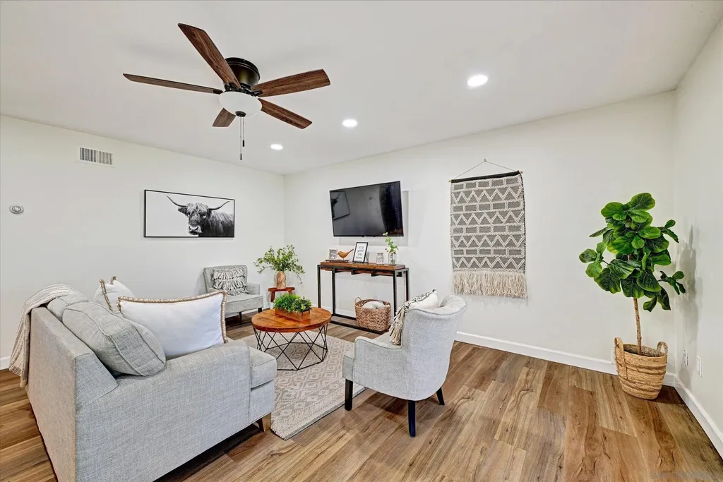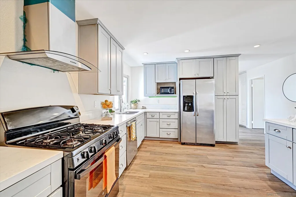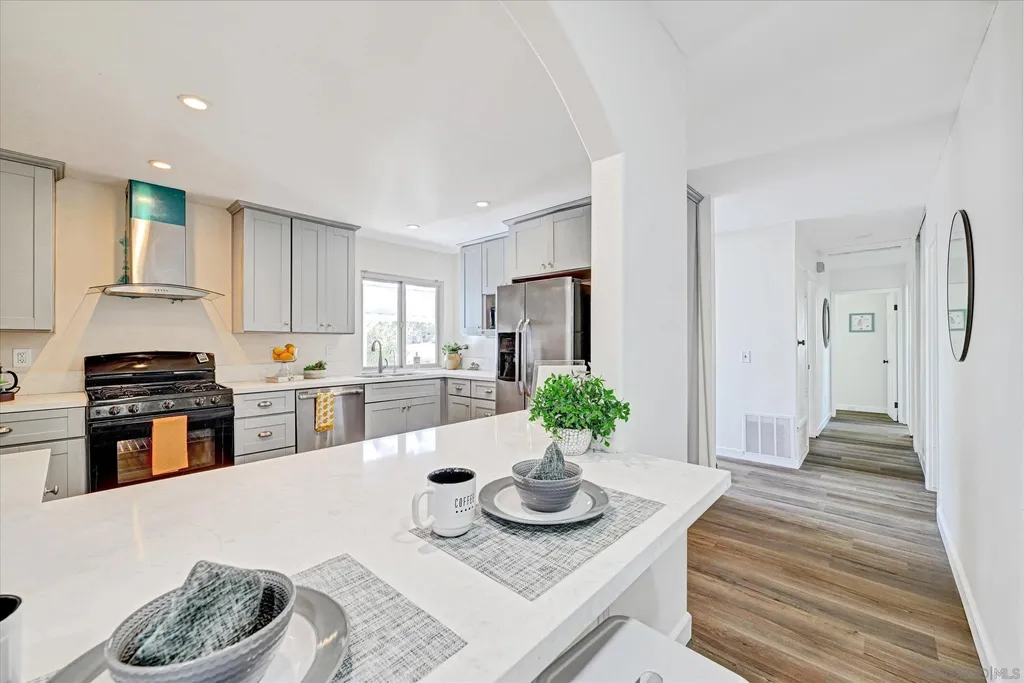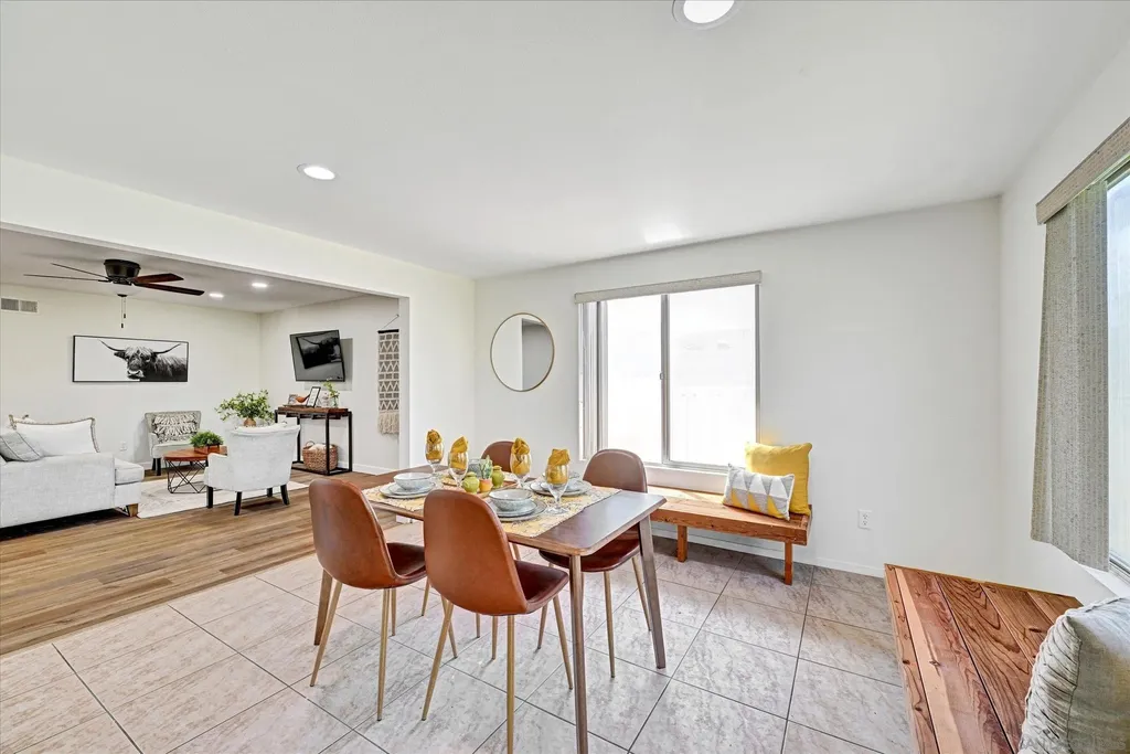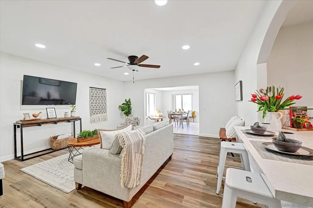 This beautifully updated home sits on a desirable corner lot and offers a versatile layout perfect for families or multigenerational living. Step inside to a modern kitchen featuring an expansive walk-in pantry, ideal for home chefs and extra storage. Enjoy fresh, contemporary flooring and updated bathrooms throughout the home. A standout feature is the massive 26' x 13' tiled bonus room - perfect for a family room, game room, or home office. The exterior has been freshly painted, and the property boasts a generous front yard, a low-maintenance backyard, and a side yard adorned with mature fruit trees. Two of the bedrooms have been thoughtfully converted into a private multigenerational suite, complete with a small kitchen - great for extended family, guests, or rental potential (permitted as a garage conversion in 1980). The home also features a shared laundry room, a convenient carport, and a sprinkler system to keep the yard lush and green. Don't miss this unique opportunity to own a flexible and well-maintained property in a great location!