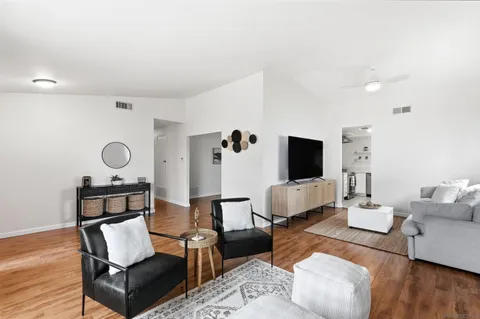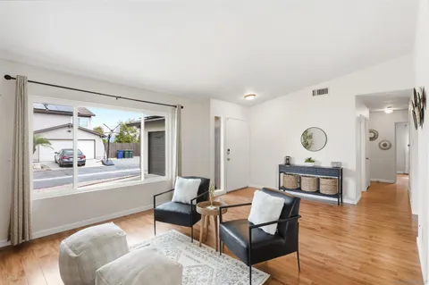 Discover this beautifully upgraded single-story home in the highly desirable Rancho San Diego community. Ideally positioned on an elevated lot with picturesque mountain views, this residence features an open floorplan with high vaulted ceilings, creating a bright and airy feel throughout. Enjoy both a spacious family room and living room, ideal for gatherings or quiet relaxation. The modern upgraded kitchen offers stainless steel appliances and stylish finishes, while dual pane windows enhance comfort and efficiency. Step outside to a large, covered patio overlooking the low-maintenance backyard with turf - south part of the lot conveys with the home, it allows for extra expansion of the backyard, perfect for outdoor living/gardening/extra storage space or more!! Situated on a corner lot with a large driveway and extra assigned parking, this home offers exceptional convenience. Additional highlights include leased solar for energy savings and access to two community pools, parks, tennis courts, and playgrounds. Close to hiking trails, schools, shopping, major highways and more! Experience resort-style living with stunning views in one of East County's most sought-after neighborhoods!