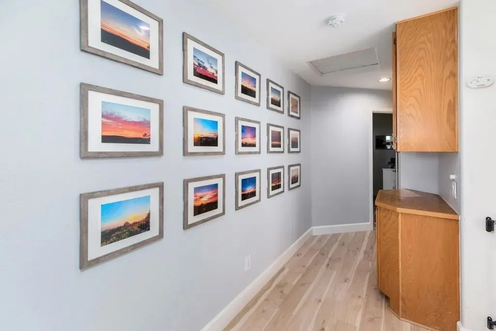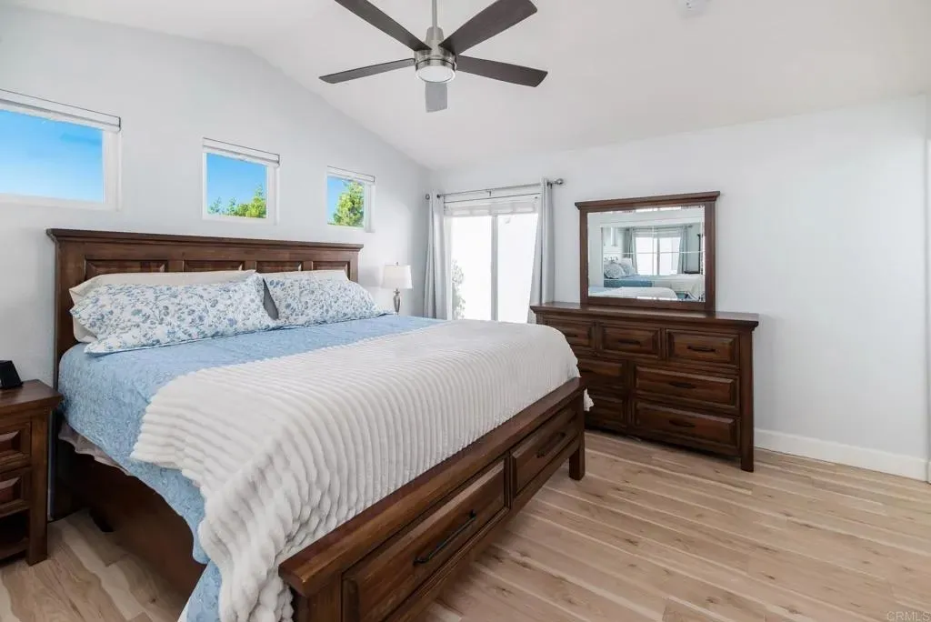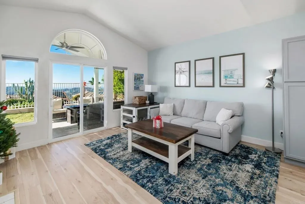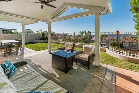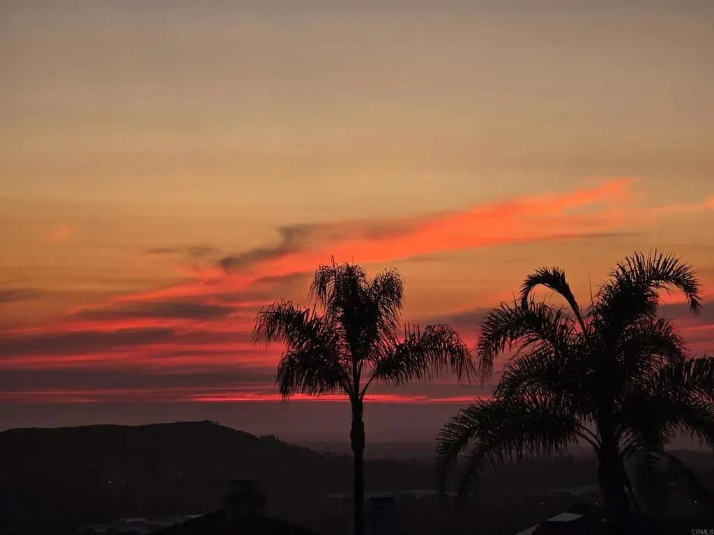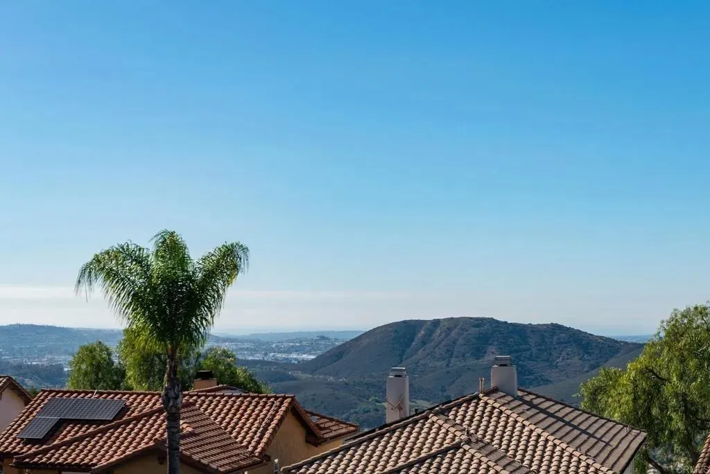 Welcome to The Good Life at the Top of Emerald Heights This beautifully updated 1,620 sf, 3-bedroom, 2.5-bath home sits high on the hill with panoramic ocean, mountain, valley, and city-light viewsincluding Catalina Island on clear days. The sunsets here are absolutely stunning and create an incredible backdrop for everyday living. Step outside to a backyard designed for relaxation and entertainment. A new A-frame patio cover with inset lighting, an outdoor ceiling fan, and a mounted TV creates an inviting year-round gathering space. The yard includes a fresh Bermuda lawn with an edged perimeter, flowering planters, fruit trees, an app-controlled irrigation system, newer vinyl fencing, view fence and a concrete side walkwayperfectly positioned to capture sweeping views from nearly every angle. The home also offers outstanding energy efficiency with an owned 10kW solar system on NEM 2.0. Award winning San Marcos schools. Inside, the home features a fresh, modern remodel that includes quartz countertops, newer stainless steel appliances and microwave. The kitchen also offers added cabinetry for excellent storage. Upgraded luxury vinyl plank flooring throughout, new carpet on stairs. Partial new interior paint. The interior has been enhanced with new solid-core shaker style interior doors and upgraded closet doors in the primary bedroom, along with a built-in closet organization system featuring drawers and shelving.The primary bathroom has been tastefully updated with premium shower doors, a new shower, dual sink vanity, mirrors, toilet, and flooring. Both secondary bathrooms have also been fully renovated with new flooring, vanities, and toilets. Additional upgrades include new child-safe window treatments, TP-Link Kasa smart switches throughout the home, a Wyze video doorbell, and a Nest thermostat for efficient smart-home functionality. The whole-house water filtration system provides high-quality water throughout, and the roof underlayment was replaced in 2022. The laundry area accommodates either gas or electric (220V) dryers. Resort-Style Living in Emerald Heights Emerald Heights is a guard gated community offering resort-level amenities, including a heated pool, toddler pool, and spa; a full gym and fitness center; pickleball, basketball, and tennis courts (all lit for nighttime use); a playground; multiple greenbelt parks; scenic hiking trails with viewpoint benches; a rentable clubhouse/event space; a staffed guardhouse; and frequent community events. Homes with this combination of expansive views, modern upgrades, smart-home enhancements, and premier community amenities are rare. Experience elevated living at its finest in Emerald Heights. Dont miss out on this dialed in, cared for home in one of the best locations in the community.