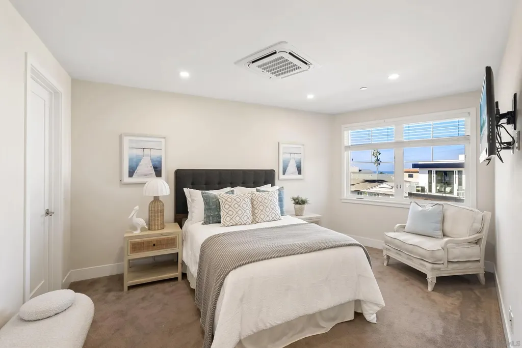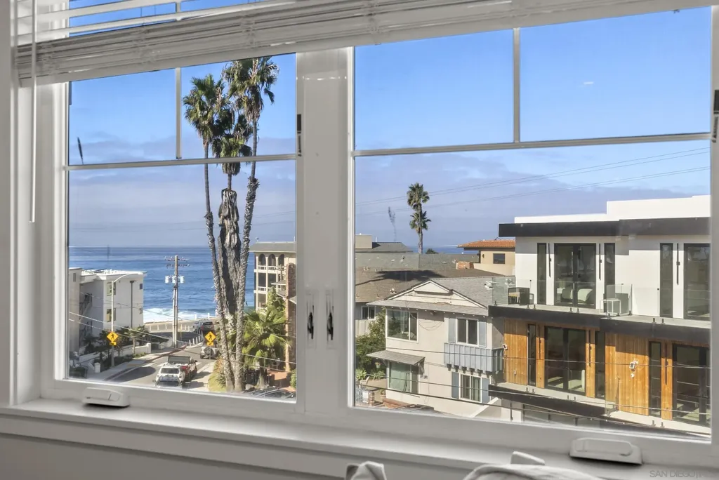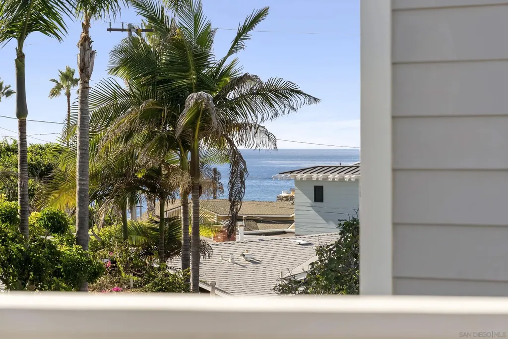 This lock & go detached beach house built in 2020 only 500 feet from La Jolla's beloved Windansea Beach with whitewater ocean views, a GUEST APARTMENT, and exceptional parking is the perfect primary home, pied- -terre, or investment property. HOA does not restrict vacation rentals. A street-to-street lot invites sunlight throughout and takes advantage of ocean views from the front patio, dining room, two decks flanking the great room, primary suite's bed wall, and (of course) the panoramic roof deck. Expansive home boasts approx. 3,369 sqft of total interior space comprised of 2,469 sqft of living space (advertised) plus a bonus finished basement of approx. 900 sqft that includes a bathroom. A creative 3 bed/4.5 bath design allows you to enjoy the entire property as a single home or as two separate legal dwellings; the ground floor ensuite is a self-sufficient legal studio with its own entrance, kitchen, laundry, and 1-car garage, presenting opportunities for hosting, help, rental income, and more! Parking at the beach is no problem with 2 single car garages visible from the rear, and the main home's garage with CAR ELEVATOR that descends to an approx. 900 sqft bonus basement (in addition to advertised sqft) that creates space for 2 more cars and a flex room (movie/office/guest) that has a full bathroom. Windansea is an iconic beach in La Jolla's coveted Beach Barber Tract neighborhood, a premium coastal community with lovely shops, restaurants, and a high quality grocery store just blocks away.