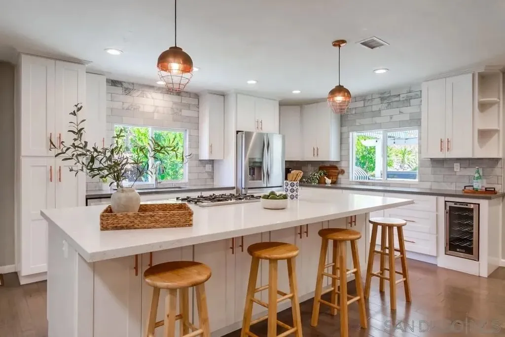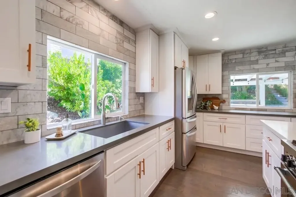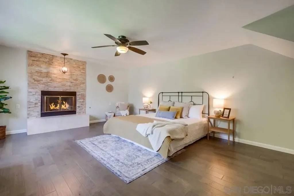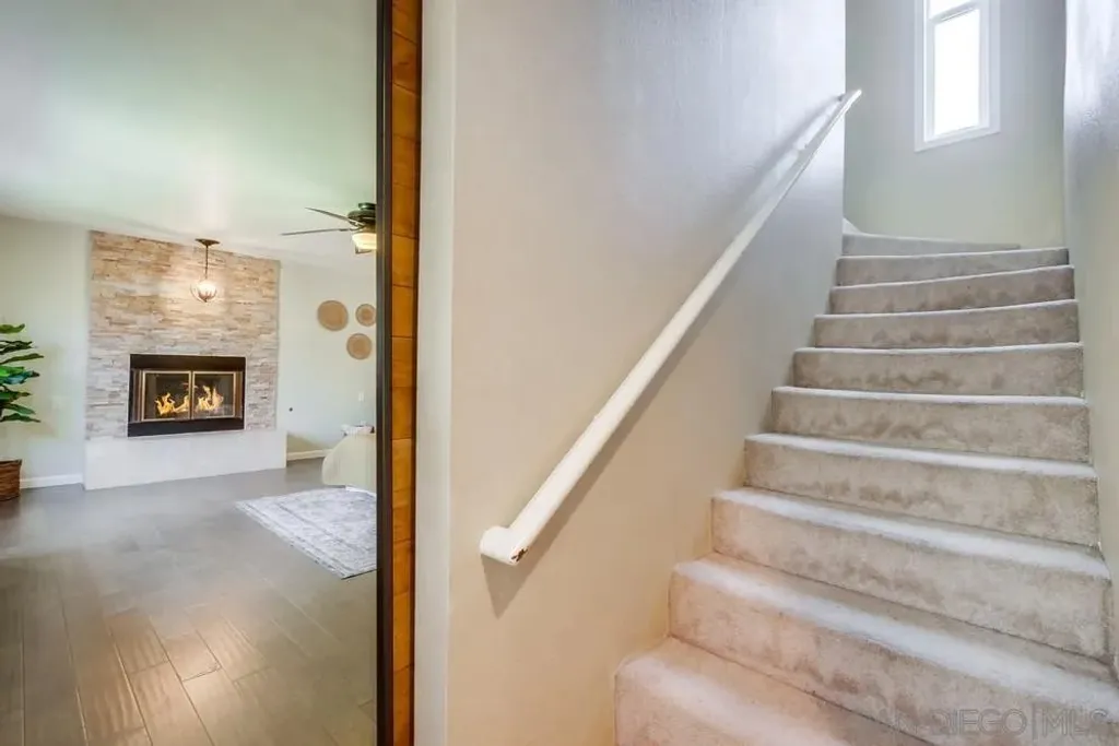 Live the fabulous Fletcher Hills lifestyle! Highly sought-after & coveted home nestled privately on a 9,617 sq.ft lot! Breathtaking from the moment you arrive! Large front yard with brand new sod & gorgeous landscaping greets you! Open the stunning beveled glass doors to a bright open concept living room/dining area/gourmet kitchen floorplan! Opulent kitchen features lovely quartz counters, top-of-the-line stainless appliances, custom lighting, large kitchen island with breakfast bar seating, and loads of counter and cabinet space! Sit and cozy next to gas fireplace or relax with a good book in living room! Gorgeous engineered wood floors! Open the barn doors to the large primary suite! Truly a private oasis! Large primary bedroom with incredible natural light and stunning extra large luxurious primary bath with free-standing soaking tub, beautiful walk-in shower, double sink vanity, great sitting area, abundant storage, and huge walk-in custom closet. Walk up stairs from the primary suite to the office area (can be additional bedroom too)! Nice sized additional bedrooms! Incredible backyard with large covered patio with full outdoor kitchen, stone pavers, built-in BBQ, lush landscaping with grass lawn and citrus trees, hardwood view deck to enjoy sunset views, climbing wall and basketball court for the kids and plenty of room to entertain! 3 car garage, newer HVAC, tankless water heater+! Near top-rated schools, freeways, shopping+! Brand new roof! Make this YOUR home before someone else does! Welcome Home!