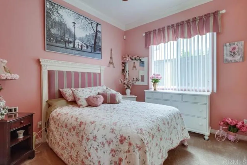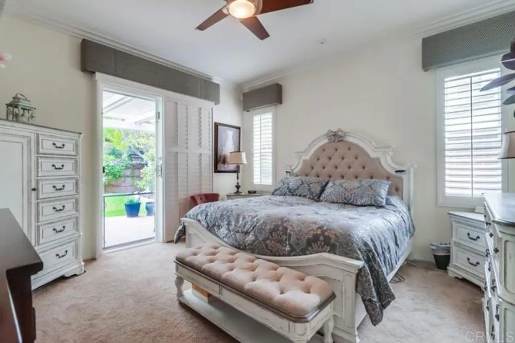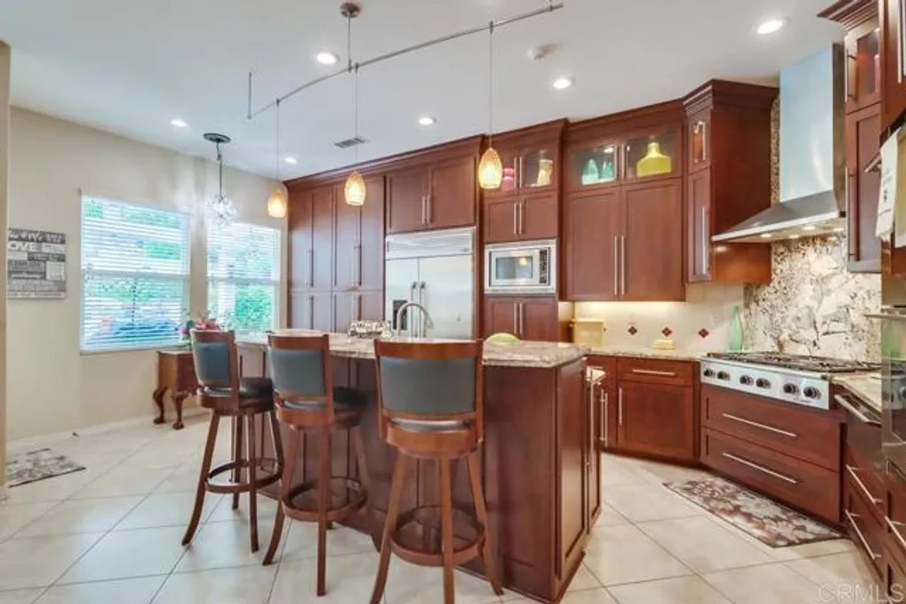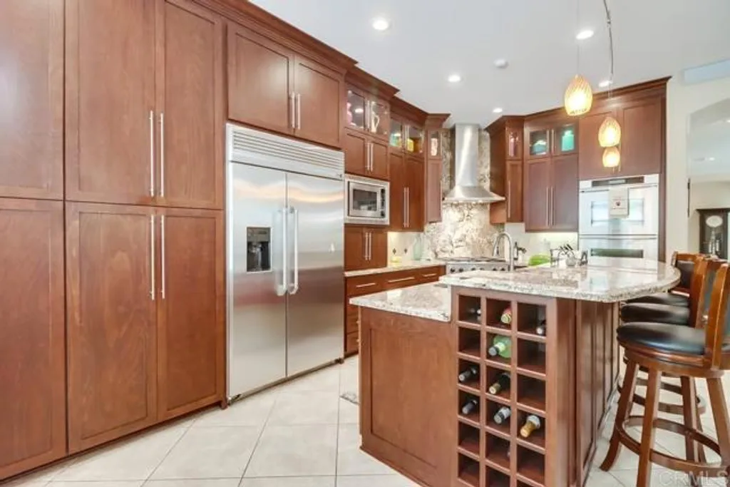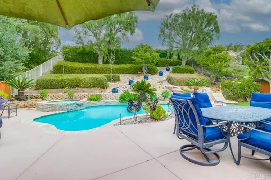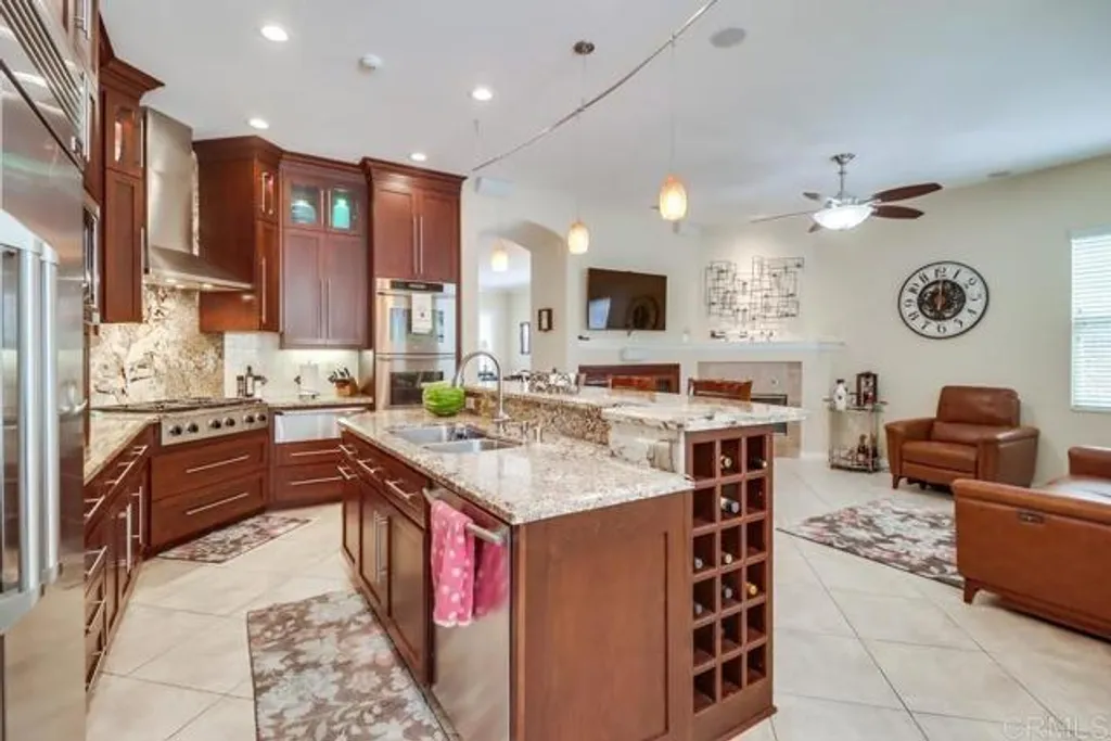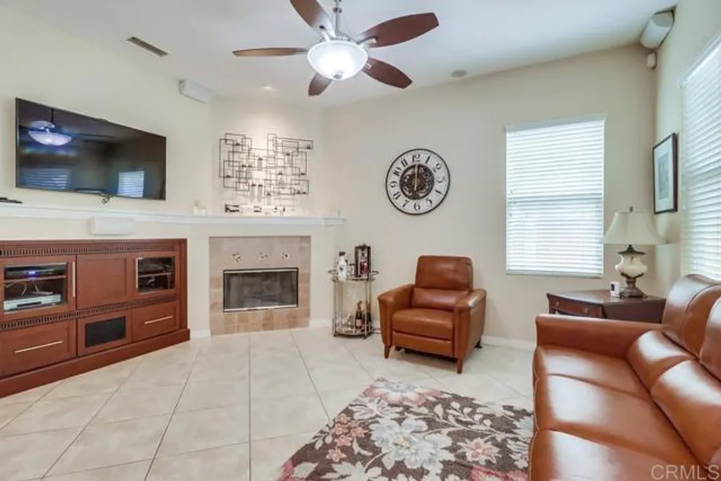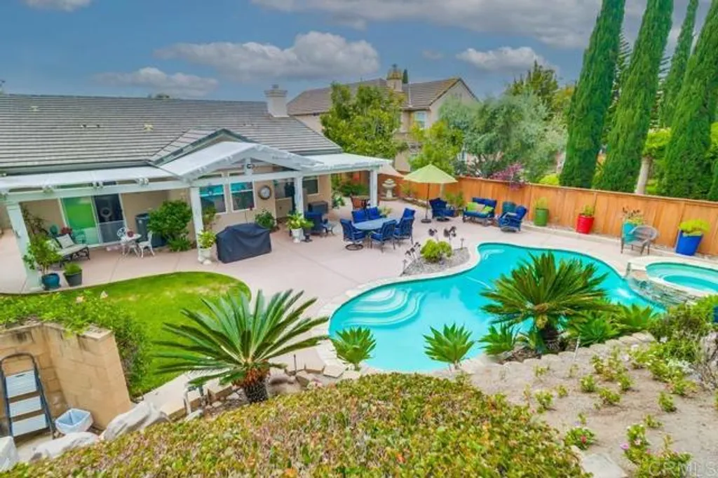 This beautifully upgraded 3-bedroom, 2-bathroom home is nestled on a quiet cul-de-sac and offers a thoughtfully designed layout that seamlessly blends comfort, functionality, and elegancewith no Mello-Roos fees. The spacious open-concept living area features a welcoming family room with a cozy fireplace, plantation shutters, and custom built-in cabinetry, flowing effortlessly into a chefs dream kitchen. Outfitted with top-of-the-line Dacor appliancesincluding a range, double ovens, and a built-in food warmer drawerthe kitchen also boasts a large built-in refrigerator, extensive cabinetry with pullout drawers, and an expansive granite-topped island, perfect for cooking, entertaining, or casual dining. The private master suite serves as a serene retreat, complete with plantation shutters and a sliding door that opens to the beautifully landscaped backyard oasis. The spa-inspired en-suite bathroom features dual shower heads, a sleek towel warmer drawer, elegant granite finishes, and a bidet for added luxury. Both secondary bedrooms include built-in cabinetry and large closets with custom organizers for optimal storage. The large, well-organized laundry room enhances daily living with ample cabinetry and a flexible layout that accommodates either side-by-side or stacked washer and dryer setups. The attached garage includes an overhead storage rack, adding valuable space and organization and a new Chamberlain Smart garage door opener. Outdoor living is just as impressive. A sparkling pool and spa are surrounded by mature landscaping for exceptional privacy, ideal for relaxing or