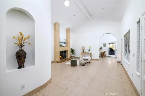 Remodeled Single-Story home offering 3 bedrooms and 2 full baths located in desirable Yorba Linda. A charming courtyard greets you with a large slate front patio, lush landscape and hilltop views of the majestic mountains. Double entry doors open to 12-foot vaulted ceilings, a skylight and a floor to ceiling marble fireplace. The open-concept space flows to the dining and kitchen areas with modern updates and sophisticated style featuring; Quartz countertops, stainless steel farmhouse sink and a Quartz counter bar with seating. Step outside and experience a private outdoor oasis with multiple spaces to dine, entertain or unwind featuring; a custom barbecue island with a refrigerator and seating. A wrap around patio overhang complimented by ledger stone planters, custom lighting, peaceful fountains and multiple double doors creating a true indoor/outdoor environment. The newly remodeled primary suite is a showstopper offering vaulted ceilings, a skylight and sliding doors opening to the private backyard. Dual custom closets; A walk-in closet with custom organizers and an additional mirrored closet across the hall. The en-suite bathroom has dual sinks with Quartz countertops and a spa inspired walk-in shower with Quartz and Mosaic tiles. Down the hall you will find 2 secondary bedrooms with new carpet and fresh paint. The full guest bath has been newly remodeled with dual sinks, Quartz countertops and a bath/shower combo with stunning Quartz and tile. Turnkey and move in ready. Additional notable upgrades include; HVAC systems. Water heater, Patio overhang, Wood fencing, Garage door, Paint & Carpet. Top rated Bryant Ranch Elementary, Travis Ranch Middle School and Yorba Linda High School. Easily accessible to: Brush Canyon Park and Box Canyon Park - with sports courts and play areas, walking and exercise trails.