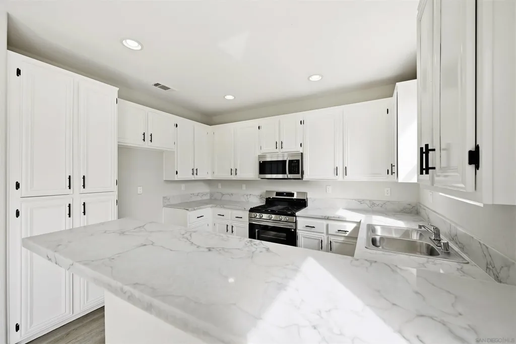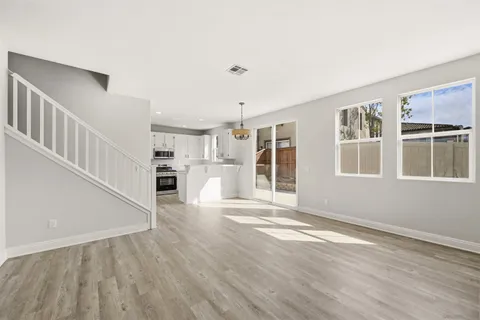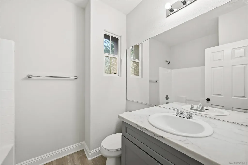Desirable fully remodeled corner 4-bedroom, 3-bath two-story home featuring a full bedroom and bathroom on the main level, ideal for guests or multi-generational living. As a bright corner unit with no residence directly behind, the home enjoys exceptional privacy and an open, airy feel. The thoughtfully designed layout includes an attached two-car garage with direct access and washer/dryer, additional unassigned parking in both the front and rear, and three separate storage areas for added convenience. The living room is anchored by a gas fireplace, creating a warm and inviting atmosphere, while the fenced yard enhances indoor-outdoor living. Upstairs, the expansive primary suite offers a true retreat with a walk-in closet, dual sinks, an oversized 8' vanity with abundant drawer storage, and a separate soaking tub and walk-in shower. Located in the highly sought-after Eastlake Vistas - Summer Hill planned community, this VA-approved complex offers resort-style amenities including a fenced pool and spa, multiple additional pools and spas, lawn and play areas, courtyards with fireplaces, an all-purpose recreation room with kitchen, upstairs gym, and second-floor balconies. The surrounding Eastlake neighborhood provides outstanding outdoor amenities such as a county park, reservoir lake, city parks, gazebos, and close proximity to the Olympic Training Center. Enjoy convenient access to shopping, dining, grocery stores, and major freeways including the 125, 905, 805, 5, 54, 94, 15, and 8, making commuting throughout San Diego effortless.