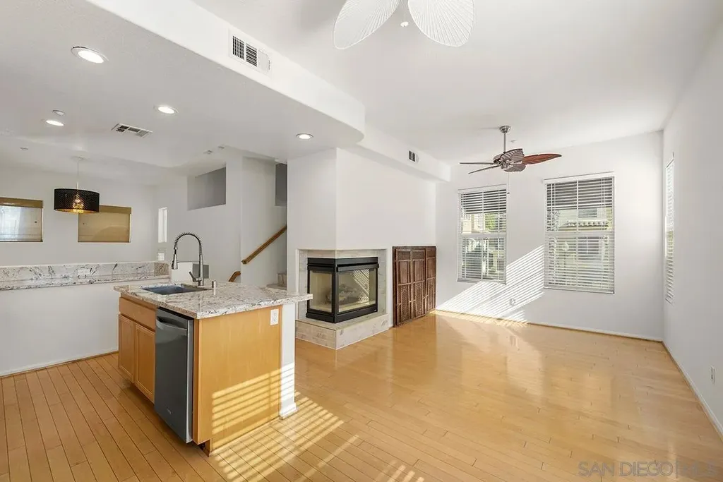 Highly upgraded DETACHED townhome in Mission Valley within the Villas at Escala gated community! This 2-bedroom with a flex space ideal for an office/den, 2.5-bath residence offers 1,443 sq ft of thoughtfully designed living space. Step inside to tall ceilings, chic lighting, large contemporary tile and wood flooring, completely remodeled spa-like bathrooms with floating vanities, and stylish shutters in both bedrooms. The remodeled kitchen impresses with stone countertops, stainless appliances, a spacious island with a farmhouse sink, and bar seating - perfect for casual meals or hosting friends. Don't miss the expansive private patio (not just a balcony), great for al fresco dining, pets, and entertaining. Additional highlights include a cozy gas fireplace, ceiling fans and attached 2-car garage with convenient in-unit laundry. Escala Club amenities: two pools, spa, tennis, pickleball, basketball, fully-equipped fitness center, party room with full kitchen, dog park, playground, barbecue/picnic areas, and walking trails - all with the LOWEST HOA dues in Escala. Warm and contemporary, this residence is located on the edge of a quiet cul-de-sac and offers a thoughtful combination of upgrades and sophistication not found in most Escala residences. The open-concept layout is light and bright with soaring ceilings and includes fully remodeled bathrooms, versatile bonus spaces, and a must-have patio/yard perfect for outdoor living and entertaining. The 2-car garage has more space than most in the community for added storage. Why settle for an attached condo when you can have your own home with ZERO shared walls offering maximum privacy! Escala is ideally situated across the street from and within walking distance to Costco, Lowes, IKEA, a City library, Fenton Parkway trolley stop, and numerous shops and restaurants. Residents are also just minutes from Snapdragon Stadium, Mission Valley Mall, Fashion Valley Mall, and only a 10-minute drive to the beach, providing the perfect blend of convenience and lifestyle. The revered Escala Club features a state-of-the-art fitness center, two swimming pools, spa, and two multi-use courts for tennis, pickleball, and basketball, along with changing rooms with lockers and showers, a private club room, and professional on-site management. Residents also enjoy barbecue and picnic areas, a dog park, a children's playground, media room, and nearby walking trails. Prime location near Friars Road offers world-class shopping, dining, and services, plus easy access to the I-15, I-8, I-805, and 163 freeways.