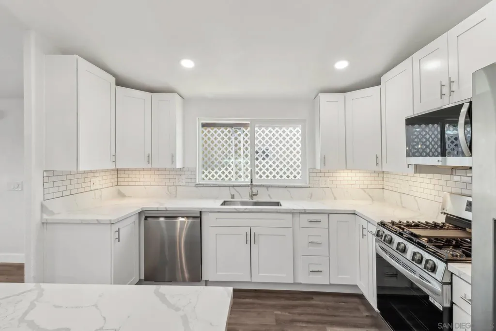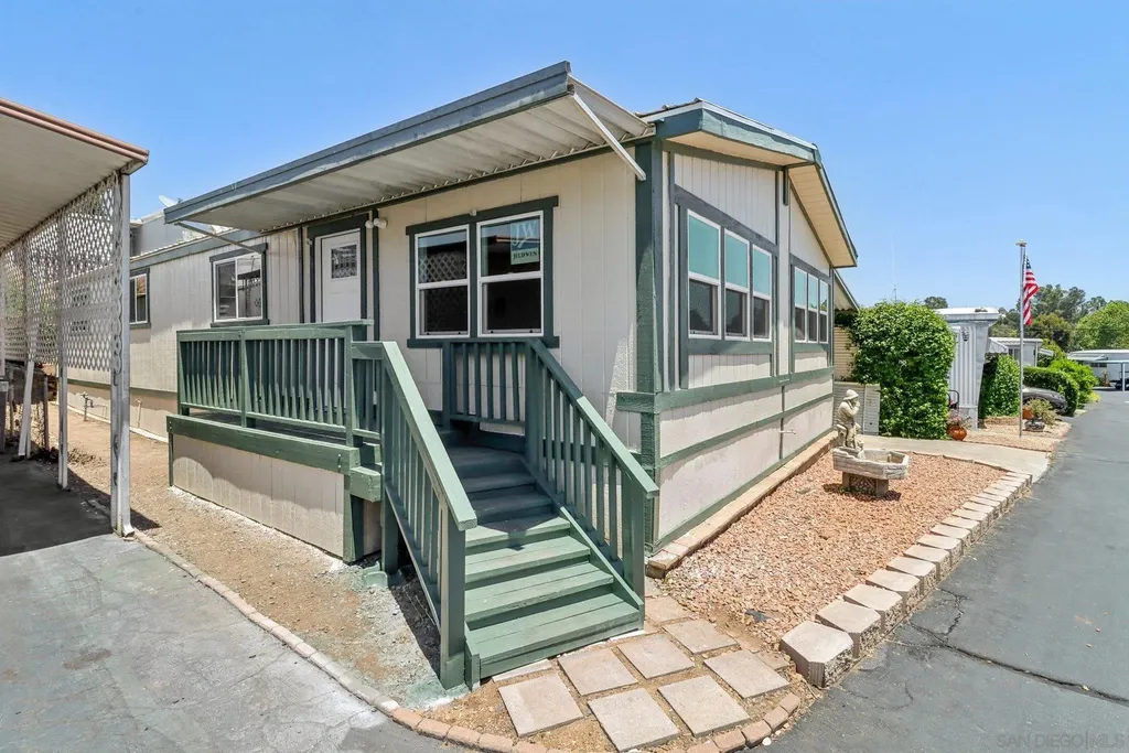 Prepare to be amazed, this property is absolutely gorgeous! A bright and airy like new remodeled manufactured home, taken down to the sticks in desirable Valley Center. This stunner resides in the quaint Hide Away Lake Mobile Estates 55+ Community. 2 bedrooms, 2 full baths, 1344 sqft has been exquisitely and completely renovated, with the lowest space rent in the area. Improvements include, but are not limited to: New 50 year roof, new water lines, new drywall, new flooring throughout, completely renovated bathrooms, en-suite features his/hers sinks, wheelchair accessible doorways in every room and dual shower heads along with a spacious walk in closet.The kitchen is a chef's delight with brand new LG appliances, tons of storage, plentiful counter space and gleaming center island with pendant lights just begging for the family to come visit and circle around. Closets and additional storage paired with the in-unit laundry and craft room/office ensures that all of your belongings will have a happy home for themselves and let the open floor plan shine. It is the pinnacle of energy efficiency with new windows, updated AC and a whole house fan to send the evening mountain breeze front to back. The park is well maintained, gated and has the sweetest sense of community. A few of the park's features include a lake, community pool, clubhouse with billiards and a library, gym, community laundry room, hiking trails, dog park and RV parking. The current space rent is only $827.00 a month to enjoy the serene wooded beauty that is Valley Center. Seller may carry 2nd.