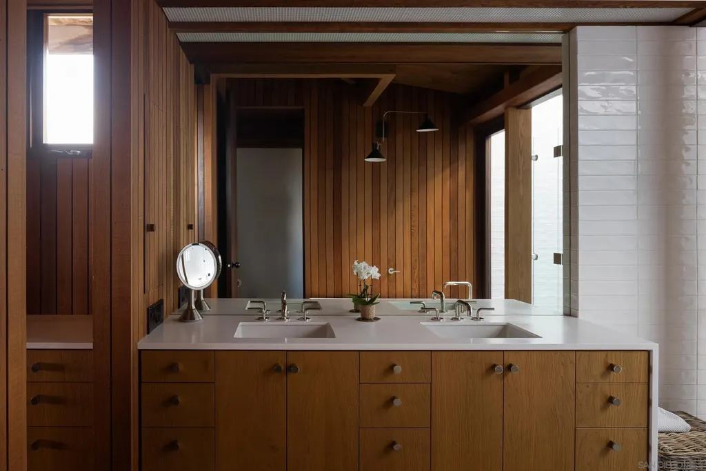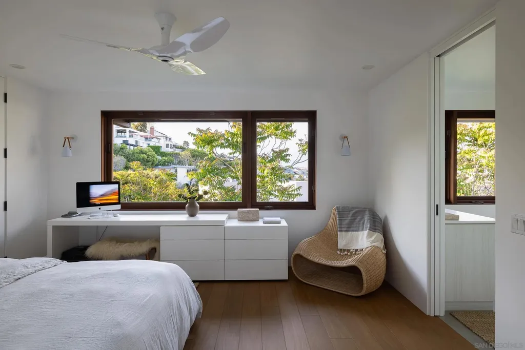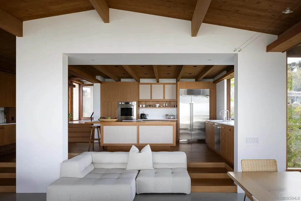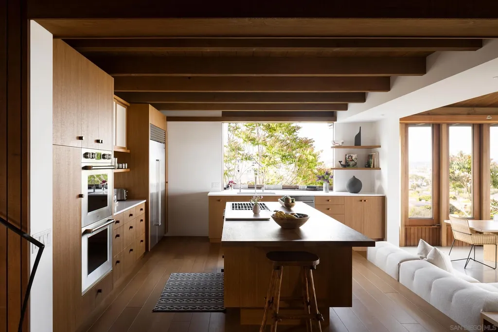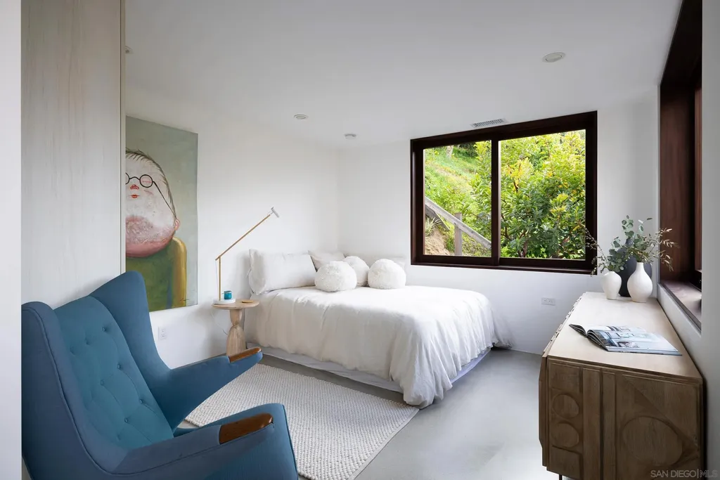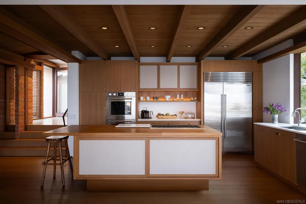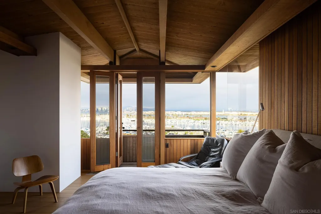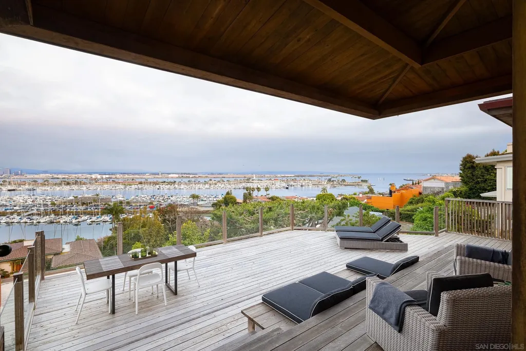 Imagine yourself residing in this completely remodeled masterwork by architect Kendrick Bangs Kellogg. Enjoy expansive, and very unique views of Shelter Island, San Diego Harbor, Downtown and Mexico (not to mention snow-capped mountains in the winter) within close proximity to the boating community. Newly installed old-growth mahogany flooring and Honduran mahogany windows and white oak cabinetry meets the original structure's redwood and Douglas fir detailing. Hand-crafted vintage touches by Kellogg and artist James Hubbell meld gracefully with new finishes and systems offering a myriad of jaw-dropping moments throughout the home and landscape. From its highly unique, safe location in Point Loma's highly sought-after La Playa neighborhood, this impossible to replicate home is a short walk to San Diego Yacht Club, Kellogg Beach, Bessemer Path, and all that Shelter Island has to offer.