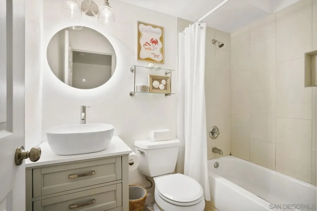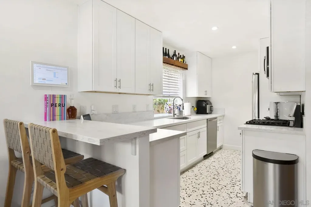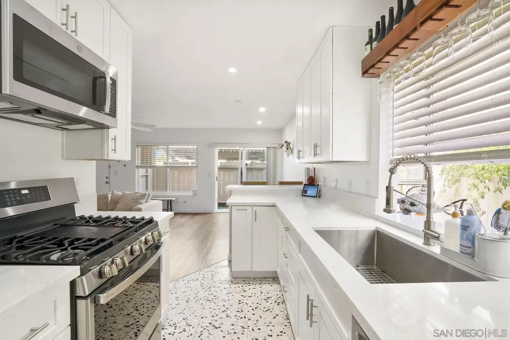 Welcome to this rarely available single story 3 bedroom, 2 bath home in the highly desirable Baycrest community - perfectly situated near the beaches and all that the San Diego lifestyle has to offer. Inside, you'll find three generously sized bedrooms along with a thoughtfully updated interior featuring a recently redone chef's kitchen, modernized bathrooms, new flooring, and nearly all new windows that fill the home with natural light. The open layout flows effortlessly, capturing refreshing coastal breezes throughout the space. Ample storage is found throughout the unit, making it as functional as it is stylish. Outdoor living is equally impressive with an oversized private backyard and a separate patio ideal for entertaining, relaxing, or storing bikes, surfboards, and all your outdoor lifestyle essentials. The community itself offers two private pools and is just a short walk to the local grocery store. With easy access to freeways, the airport, and San Diego's best beaches, this home combines convenience with a true coastal lifestyle. Don't miss your chance to own this beautifully upgraded home in Baycrest!
