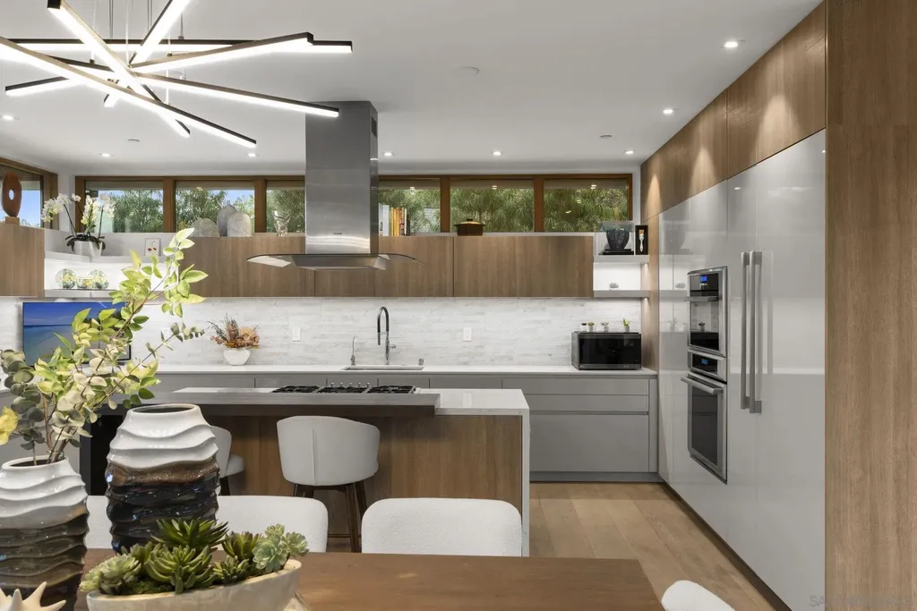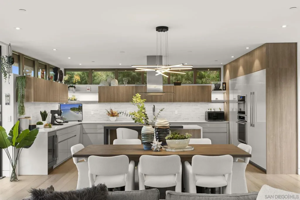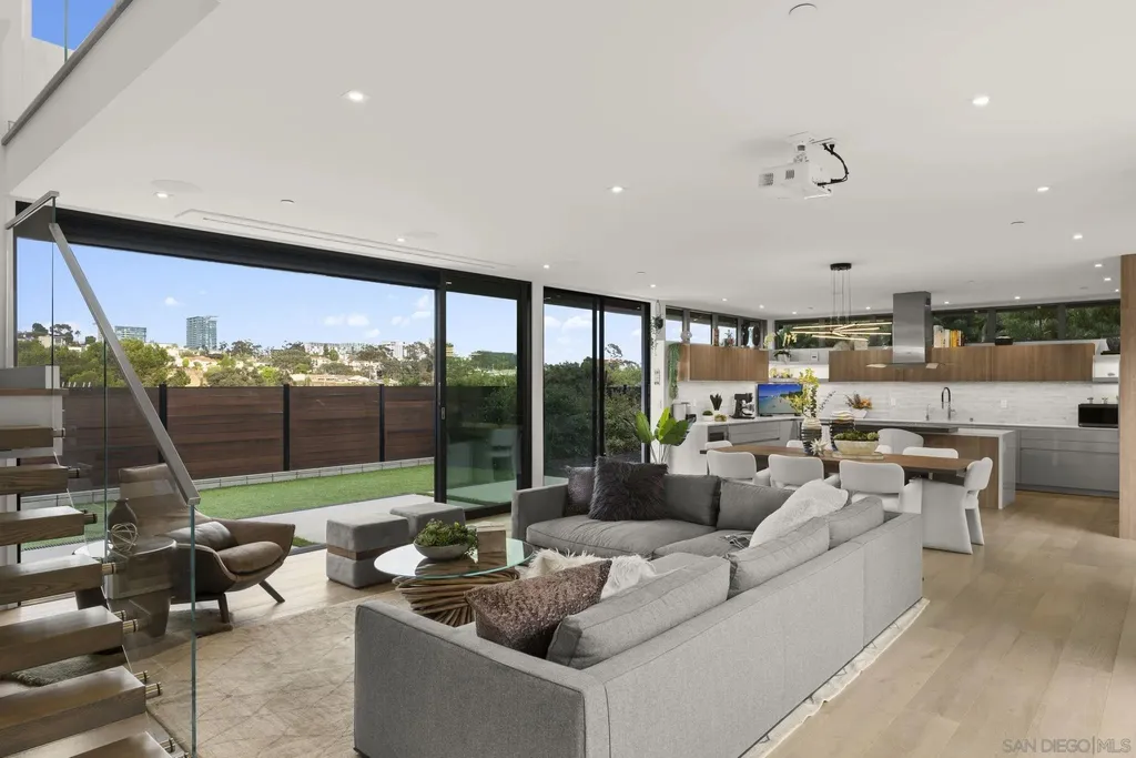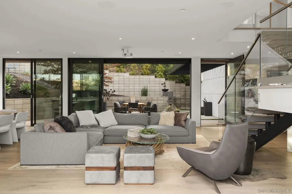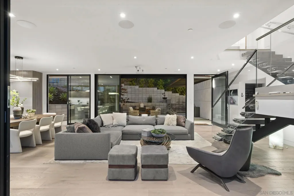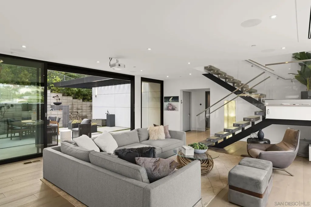Tucked into the heart of Mission Hills, this sculptural residence redefines modern luxury with seamless indoor-outdoor flow, gallery-like design, and sun-drenched sophistication. You don't just live here - you experience light, space, and movement like never before. Framed by expansive walls of glass, the open-plan layout blurs the lines between inside and out. A bold floating staircase anchors the living space like a modern art installation, while soft tones, organic textures, and architectural lines create a quiet elegance throughout. Whether you're entertaining guests in the sleek designer kitchen or soaking in panoramic views from the living room, every corner of this home tells a story of curated luxury and California ease. A space like this doesn't just appear - it's crafted. And it's ready for someone who appreciates the intersection of intentional design and laid-back refinement.