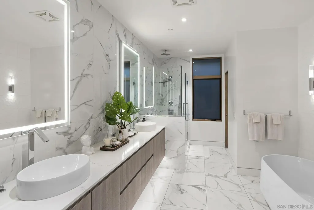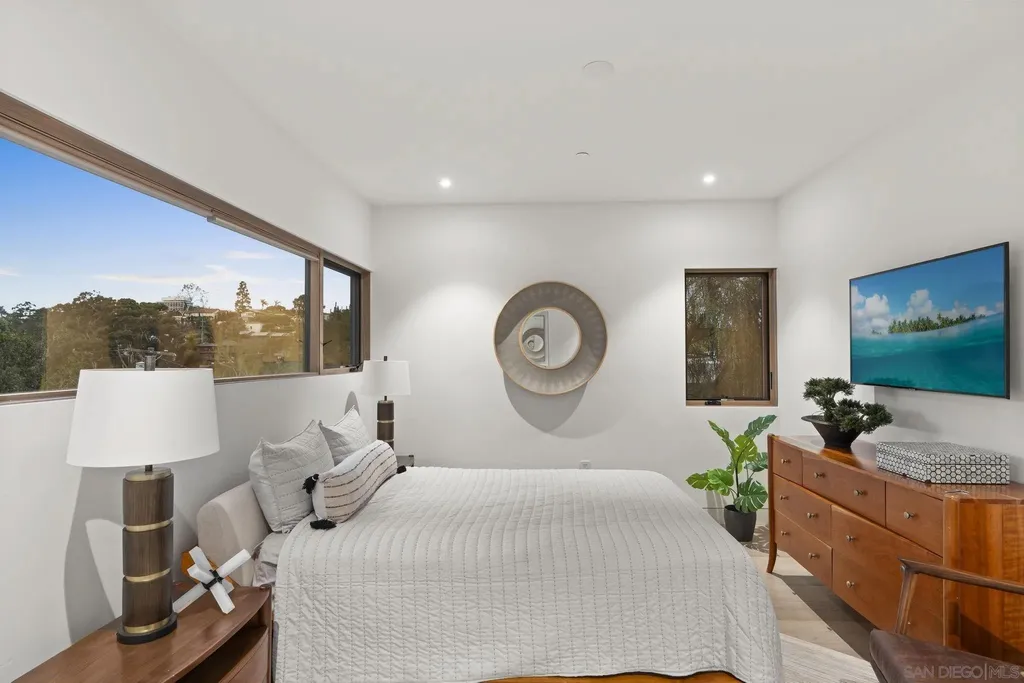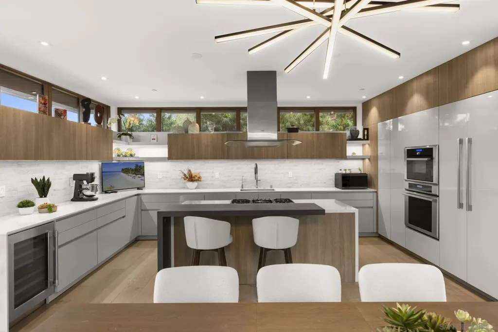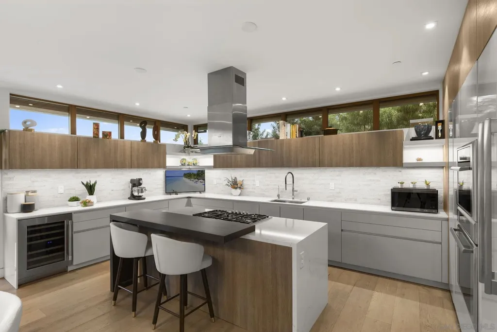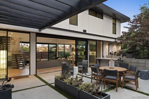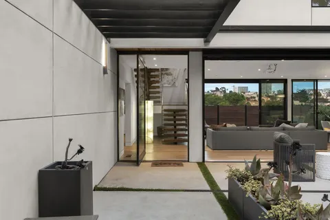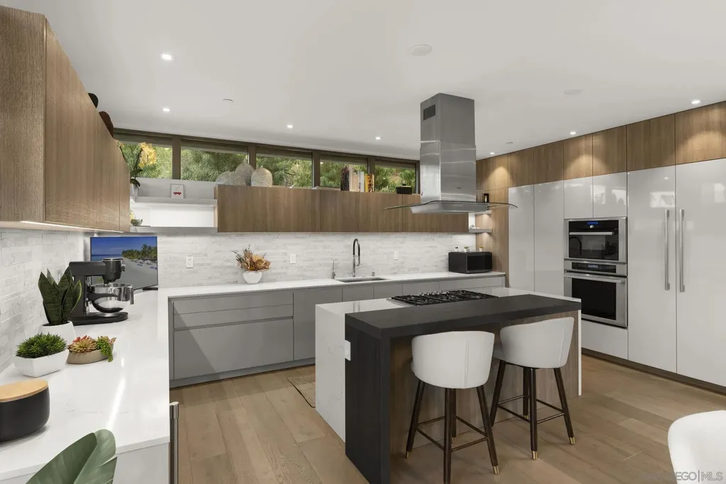Tucked into the heart of Mission Hills, this sculptural residence redefines modern luxury with seamless indoor-outdoor flow, gallery-like design, and sun-drenched sophistication. You don't just live here - you experience light, space, and movement like never before. Framed by expansive walls of glass, the open-plan layout blurs the lines between inside and out. A bold floating staircase anchors the living space like a modern art installation, while soft tones, organic textures, and architectural lines create a quiet elegance throughout. Whether you're entertaining guests in the sleek designer kitchen or soaking in panoramic views from the living room, every corner of this home tells a story of curated luxury and California ease. A space like this doesn't just appear - it's crafted. And it's ready for someone who appreciates the intersection of intentional design and laid-back refinement.