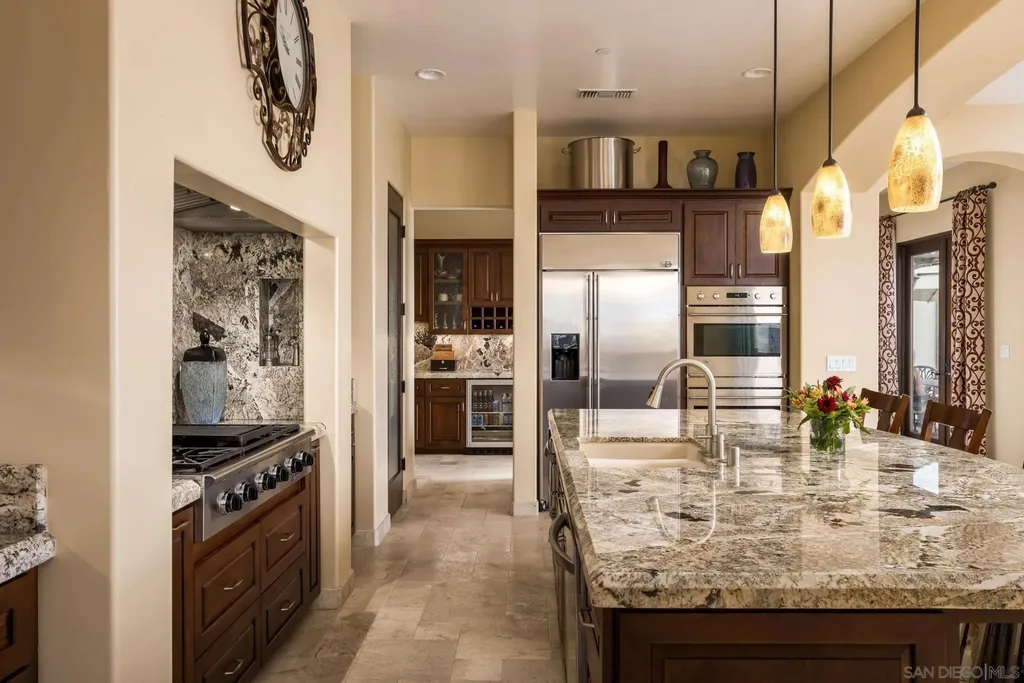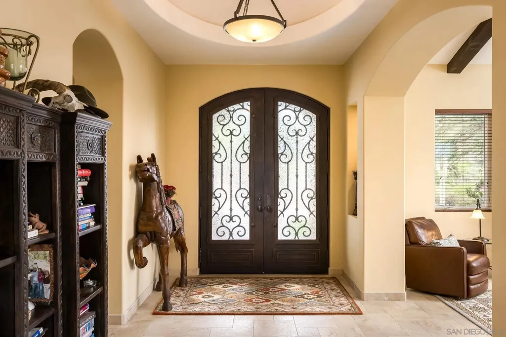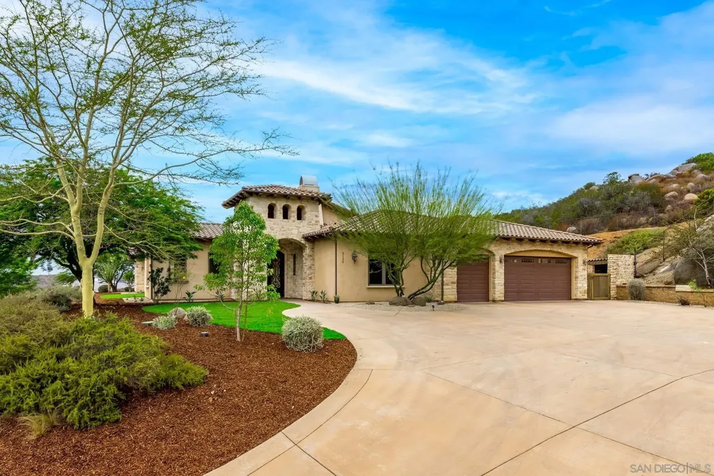 Price Range $1,695,00-$1,785,000 with the option to purchase fully furnished. Fall in love with this one-of-a-kind custom built home in the exclusive gated community of Rancho Palo Verde in Alpine. This architectural masterpiece invites you through the grand formal entry to the great room that serves as the heart of the home with 21 ft high cathedral ceilings and 10x10 exposed solid beams. Spacious and functional floor plan with seamless integration from the indoor to outdoor living areas. Three covered patios, built in BBQ & wood burning oven, two expansive lawns, & beautiful views of Cleveland National Forest. The chef inspired kitchen features Bardon cabinetry, Monogram refrigerator, Dacor 6-burner cooktop, double convection ovens, pot filler, walk-in pantry, and butler's pantry/bar with mini fridge. The primary suite & spa inspired bathroom features a large soaking tub, dual vanities, dual private toilet rooms, bidet, spacious granite walk-in shower, and a custom built walk in closet. Bedroom 2 and 3 feature ensuite bathrooms and walk-in closets. 4th room (office) offers the option to convert to a 4th bedroom. Built in 2010 with 2x6 framing for strong structural integrity and energy efficiency, dual HVAC, quad-zone heating/cooling, dual tankless water heaters. Non-active well on site, and water holding tank on site. Premium finishes and expanded acreage within Rancho Palo Verde, offering excellent potential for a future family compound within the 4.1 acres- plenty of space for an ADU, pool & pool house, barn/garage, and RV parking- all while staying under one HOA fee. Additional features include Anderson windows & doors, marble flooring throughout main living areas, indoor sound system & prewired intercom, alarm, and outdoor speakers, projector for home theatre entertainment, and indoor & outdoor dog kennel. Set amid the mountains at about 1,800 feet in elevation and roughly 33 miles inland from the Pacific Ocean, this private Ranch encompasses 233 home sites ranging from two to eight acres each. Its location delivers comfortable weather throughout the year-warm, sunny summers; crisp winters; and mild, pleasant springs and autumns. Residents have access to two scenic lakes complete with pavilions, as well as a clubhouse, tennis court, and a dedicated horse-riding arena. Miles of riding and hiking trails wind through the property, so horse owners can simply saddle up-no trailering required. The members-only clubhouse, which overlooks the 50-acre Palo Verde Lake with its sandy beach and floating swim platforms, offers plenty of ways to enjoy the water. Residents can swim, fish, kayak, paddle board, sail, or moor their electric boats right on the lake. Next to the lake sits a spacious covered pavilion outfitted with picnic tables, restrooms, and BBQs, plus a sand volleyball court, badminton court, horseshoe pit, and children's playground. The clubhouse itself can be reserved for gatherings large or small and features a fireplace, dance floor, pool table, sauna, fitness room, and a full kitchen and bar.