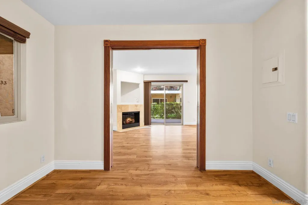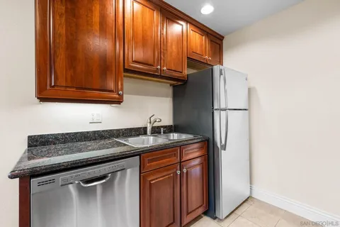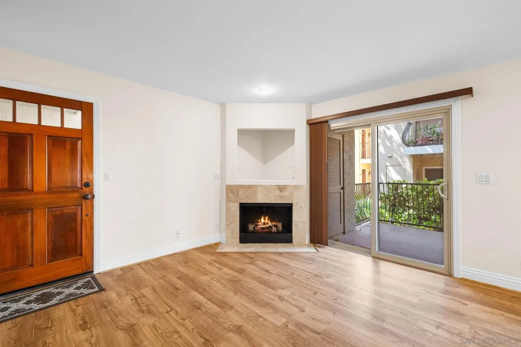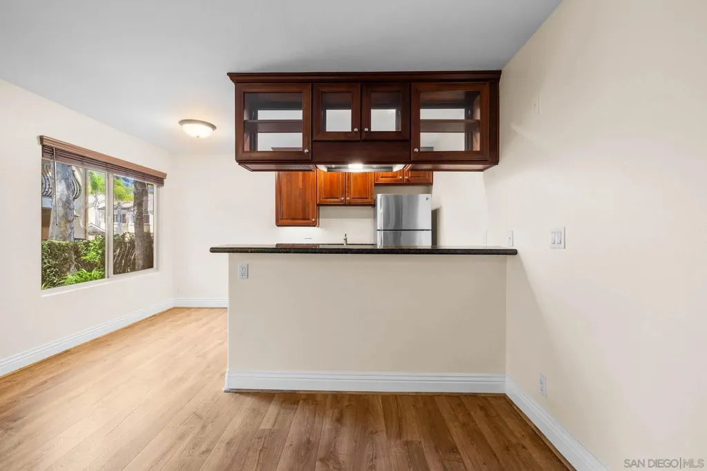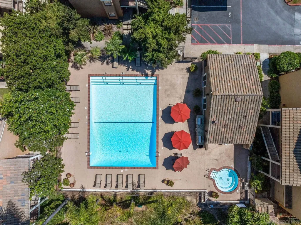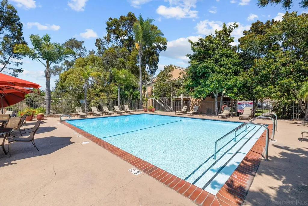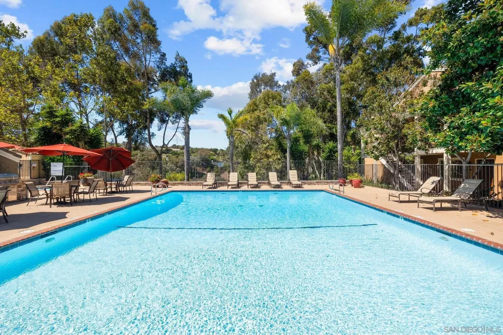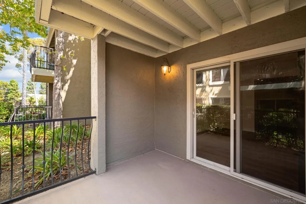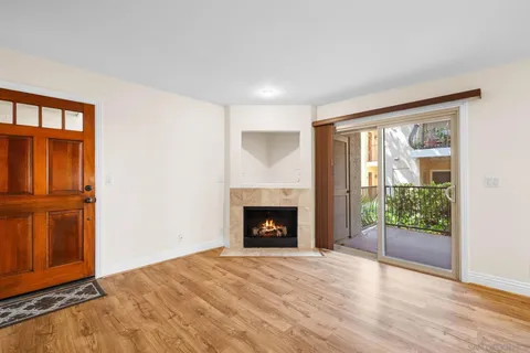 Charming 1 Bedroom 1 Bath home in Villa Tuscana in La Jolla Village! This gorgeous remodeled move in ready condo is located in the quiet interior of the complex on the first floor, no stairs! Step inside to discover a welcoming open layout, highlighted by a dine-in bar perfect for casual gatherings. The interior features a remodeled Kitchen with granite counters and new luxury vinyl plank floors providing a sophisticated yet comfortable living space. Your serene primary suite features pocket doors for added privacy with the convenience of a full size stackable washer and dryer tucked neatly in the outdoor closet on the balcony. 1 assigned parking space. The community enhances your living experience with amenities which include a sparkling pool and clubhouse. Minutes to La Jolla Beaches, Trader Joes Shopping center, restaurants, UCSD and access to the MTS trolley for downtown events